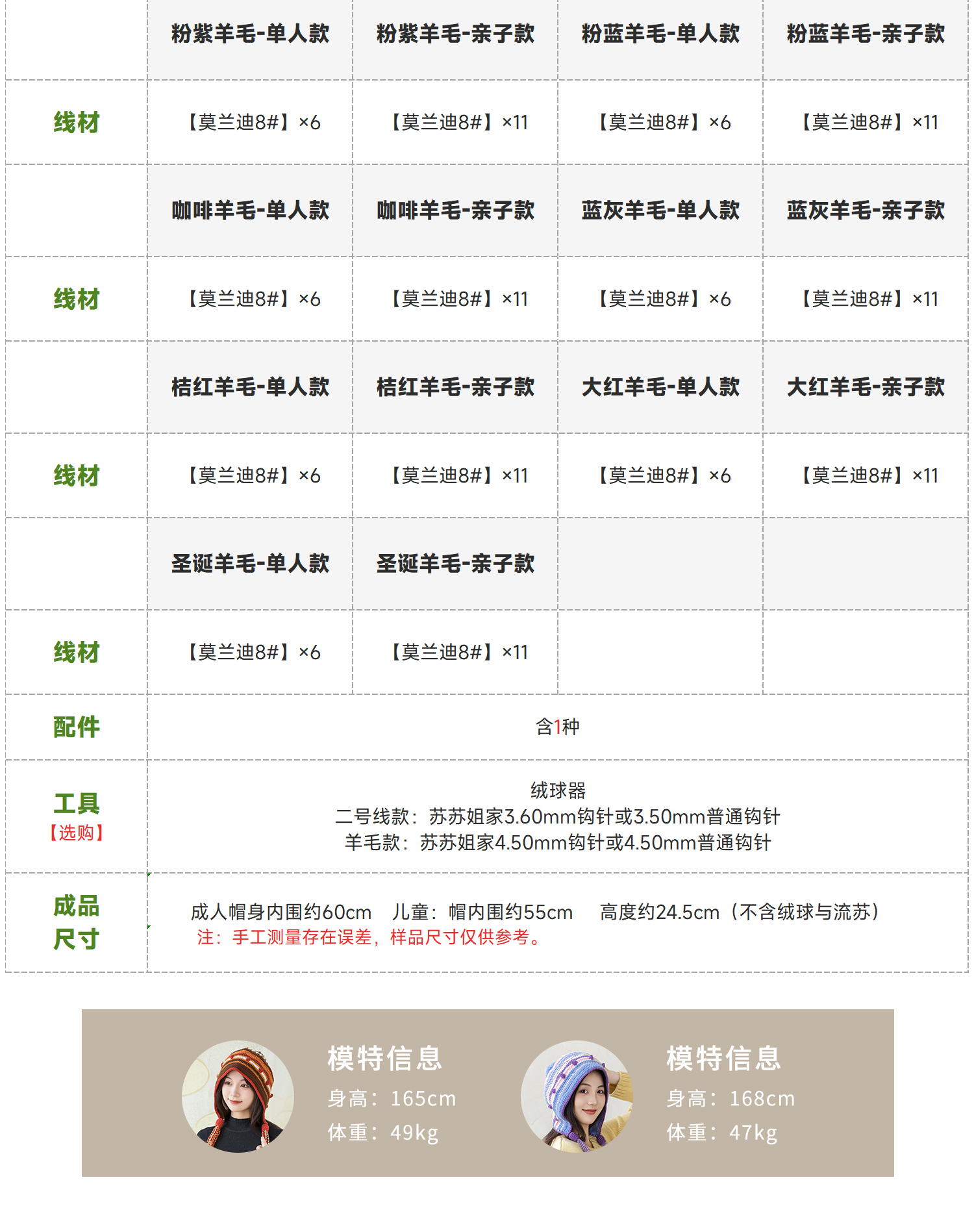 苏苏姐家布洛克护耳帽亲子款手工编织自制diy钩针材料包毛线团