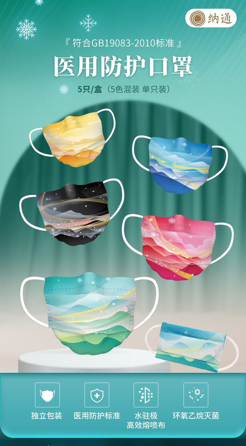纳通医用防护口罩【韵律山丘·珍藏版】个性印花 独立包装 5只混色/盒