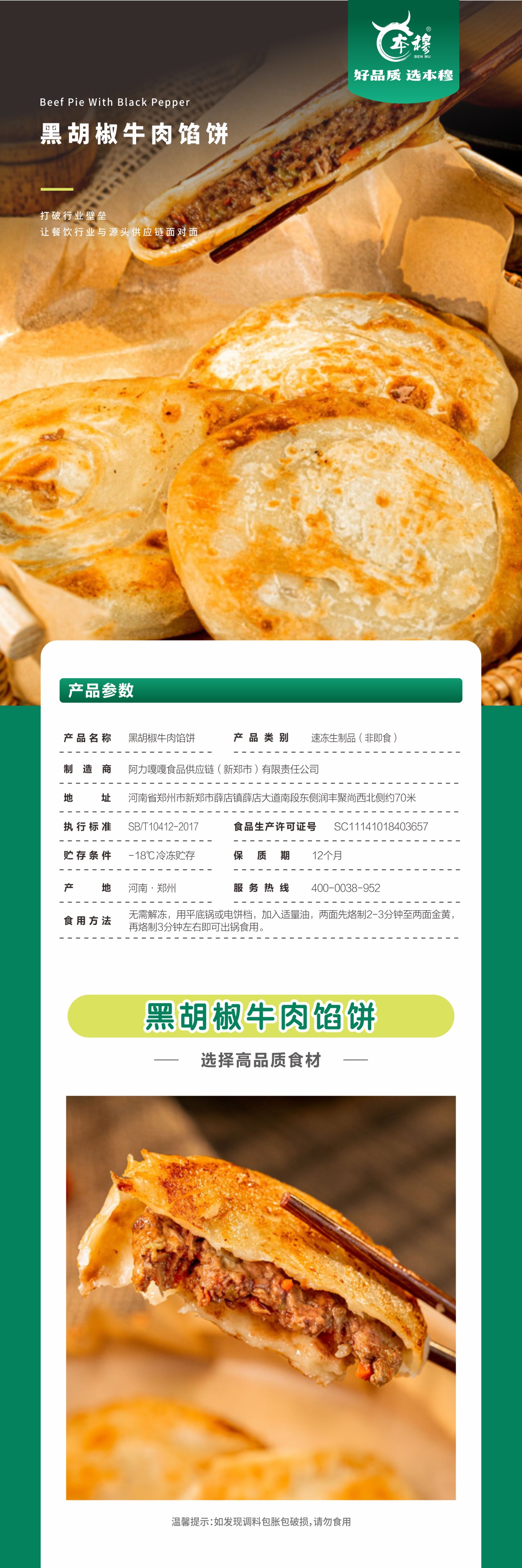 本穆清真黑胡椒牛肉馅饼 肉香十足外酥里嫩 冷冻装(冷链商品不支持退换货) 20个饼/袋 120个饼/件 顺丰冷链包邮