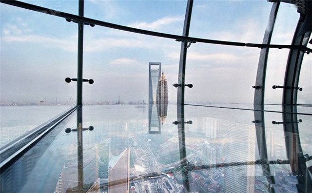 观光走廊宽度最宽处为3.6米,最窄处为3.2米,其中透明玻璃部分最宽处为2.15米,最窄处为1.75米。整层透明观光环廊的面积约为415平方米。