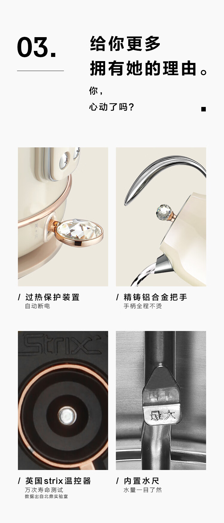 北鼎 Buydeem K208炫彩全304不锈钢电水壶 香槟黄