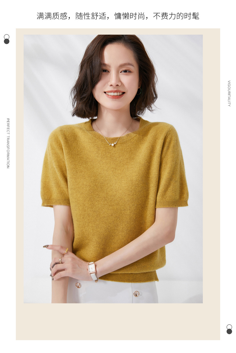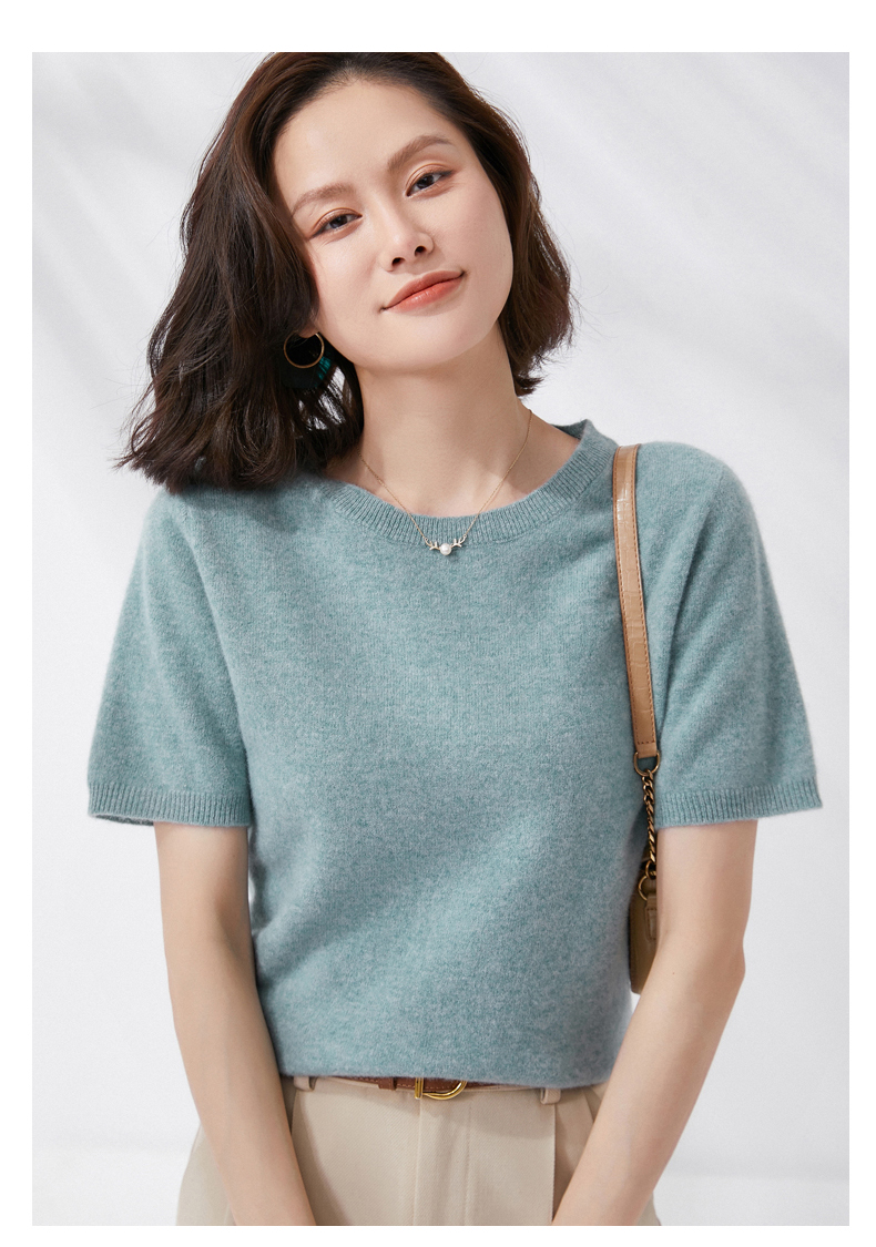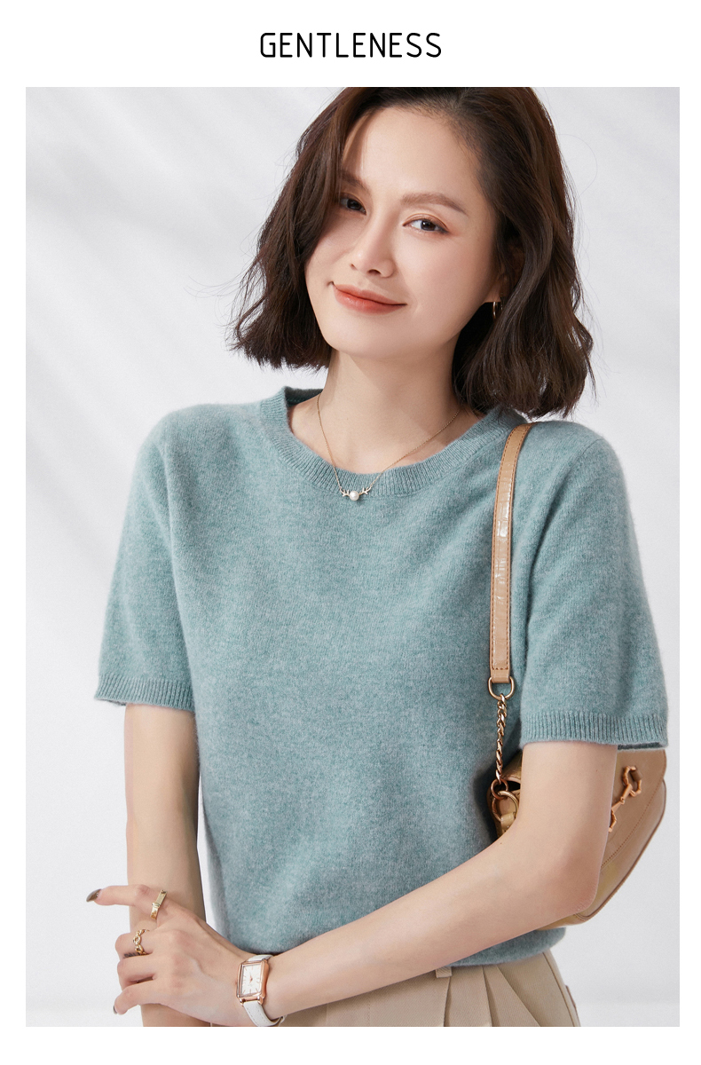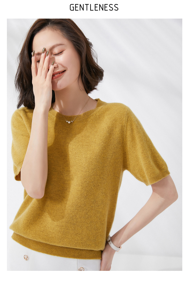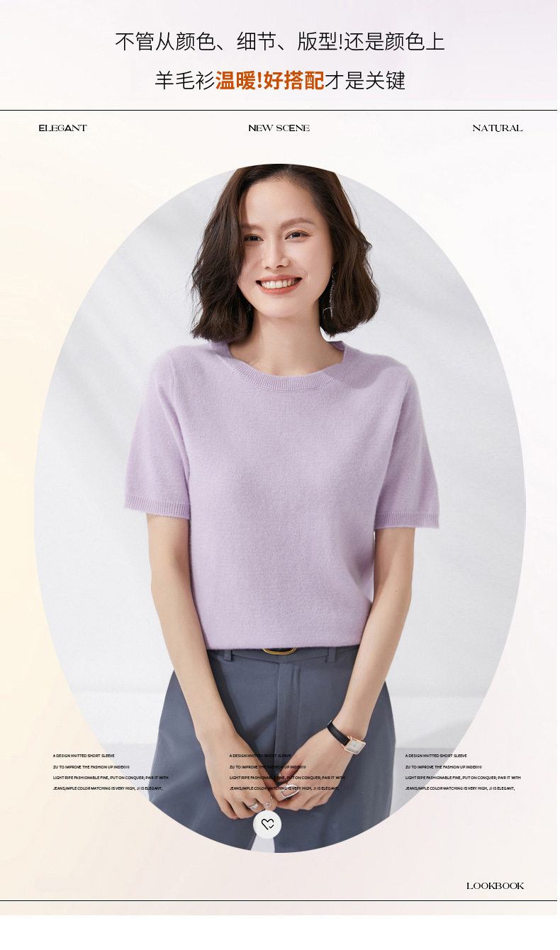 【100%羊毛】 SIIJJEYY枝辑 女士圆领短袖羊毛衫(多色可选)