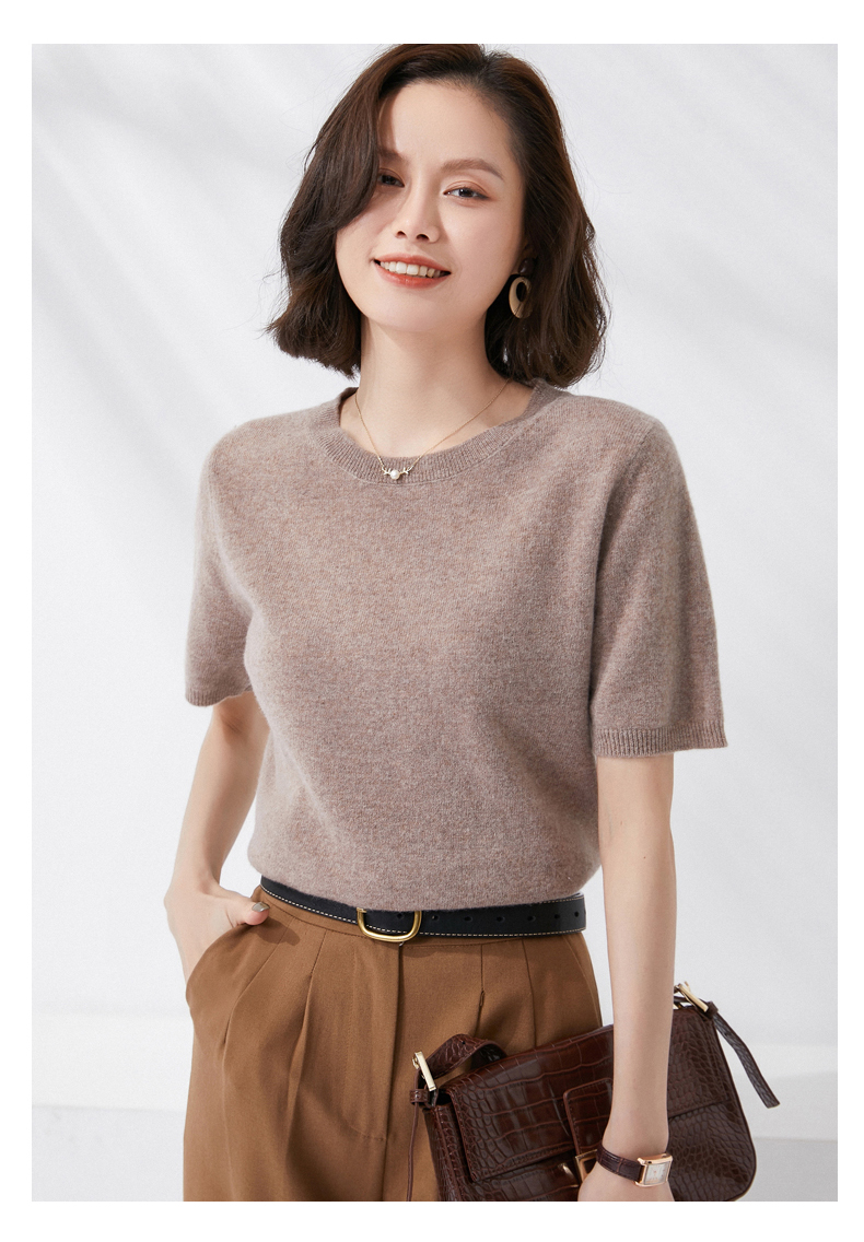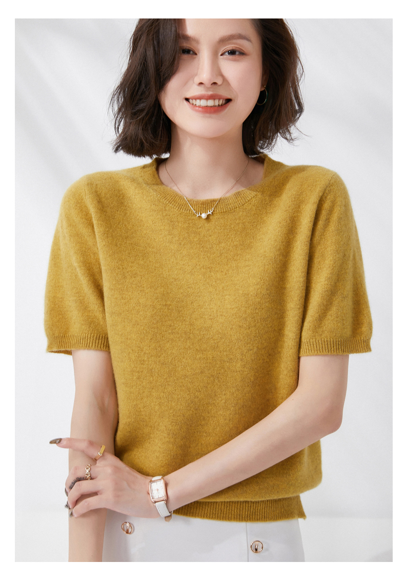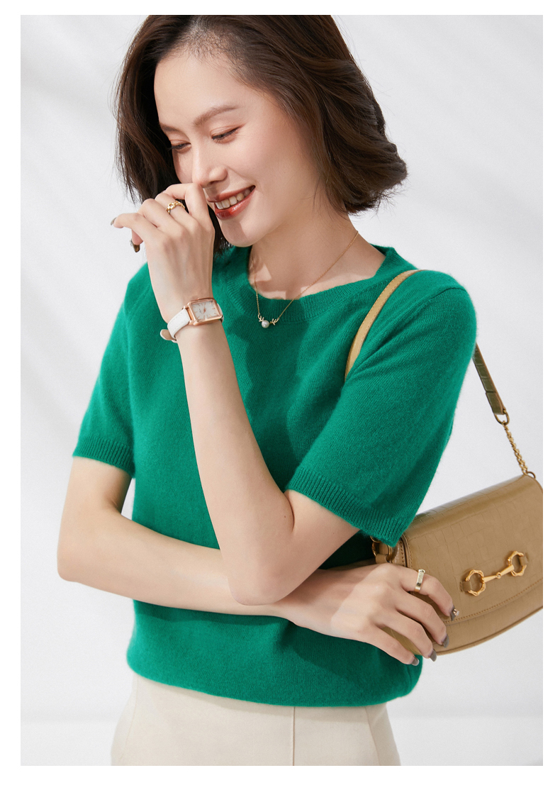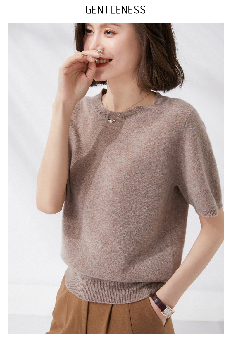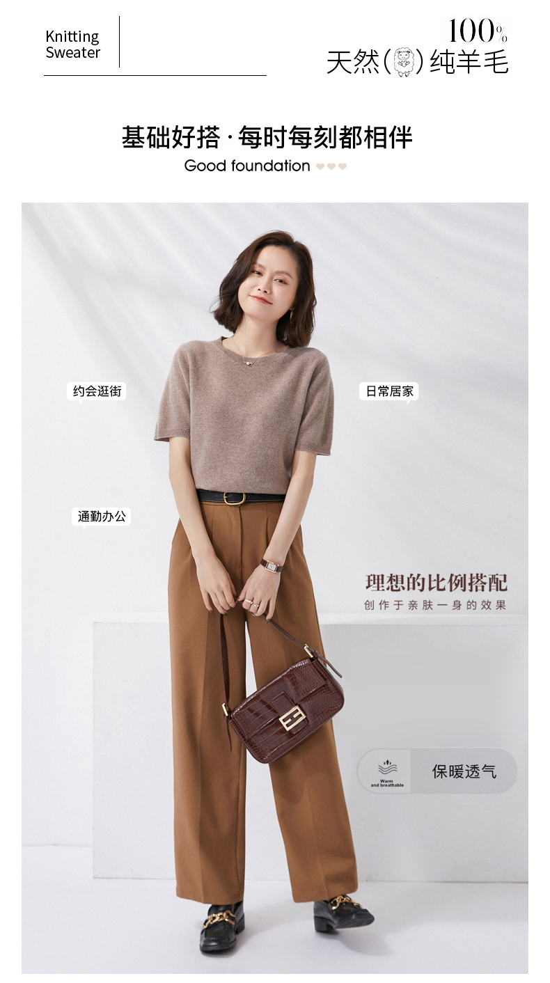 【100%羊毛】 SIIJJEYY枝辑 女士圆领短袖羊毛衫(多色可选)