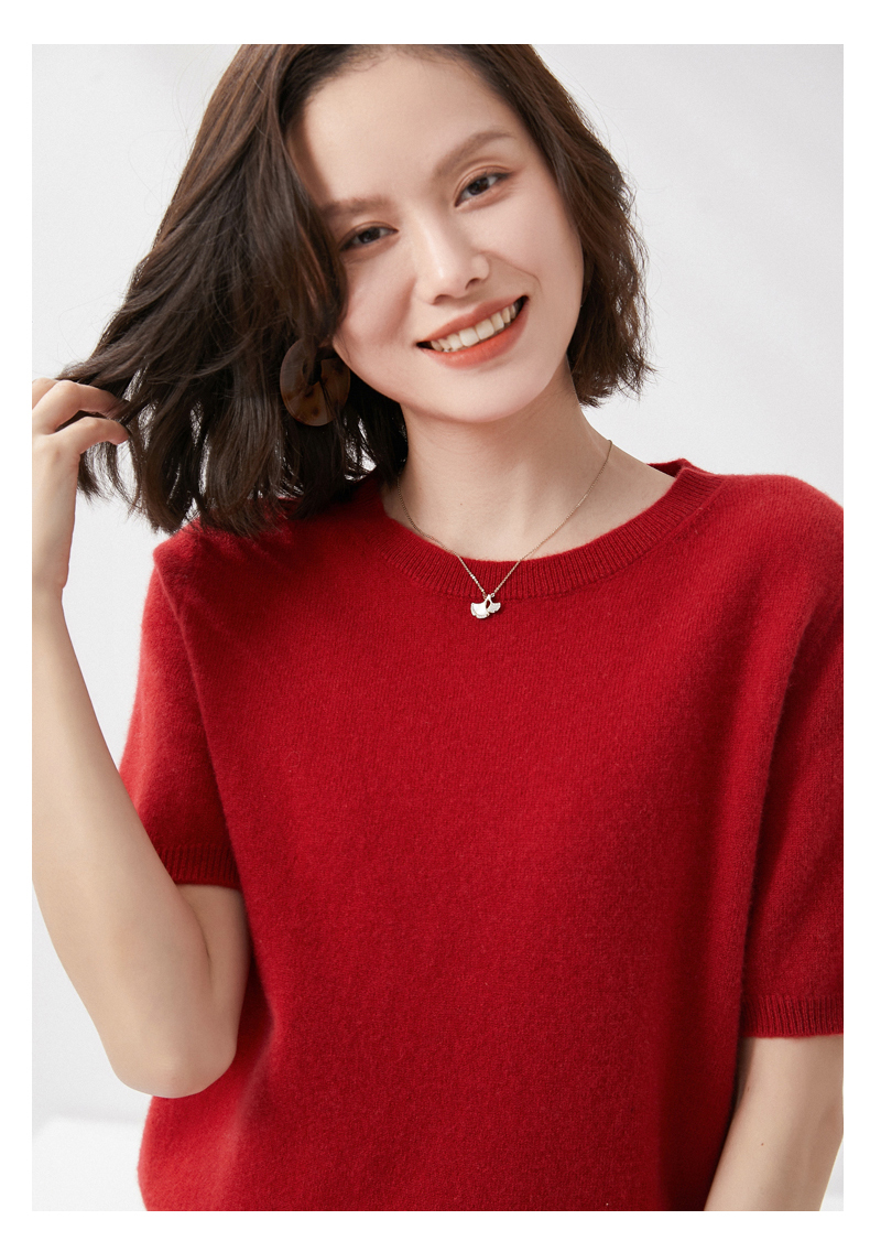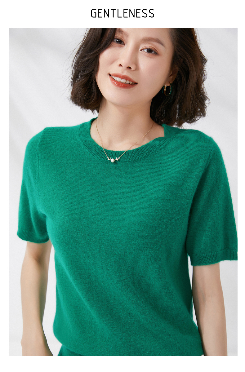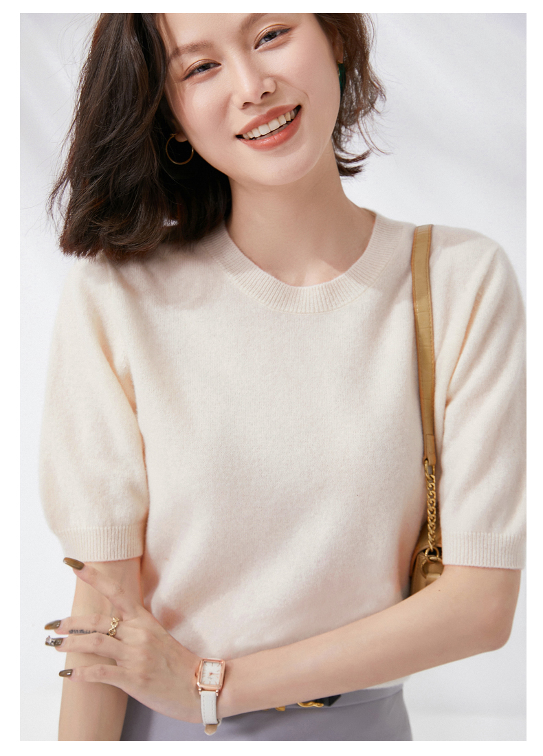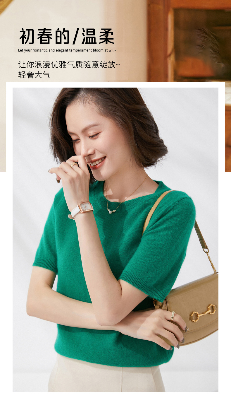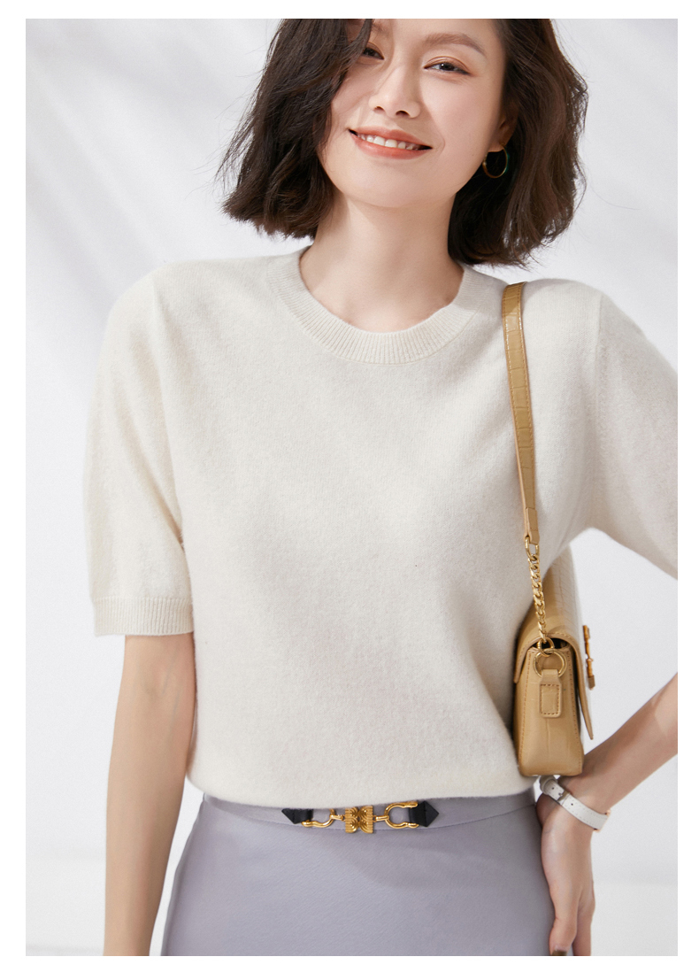 【100%羊毛】 SIIJJEYY枝辑 女士圆领短袖羊毛衫(多色可选)