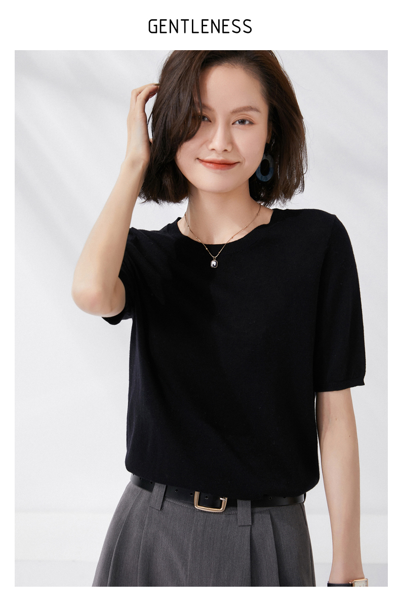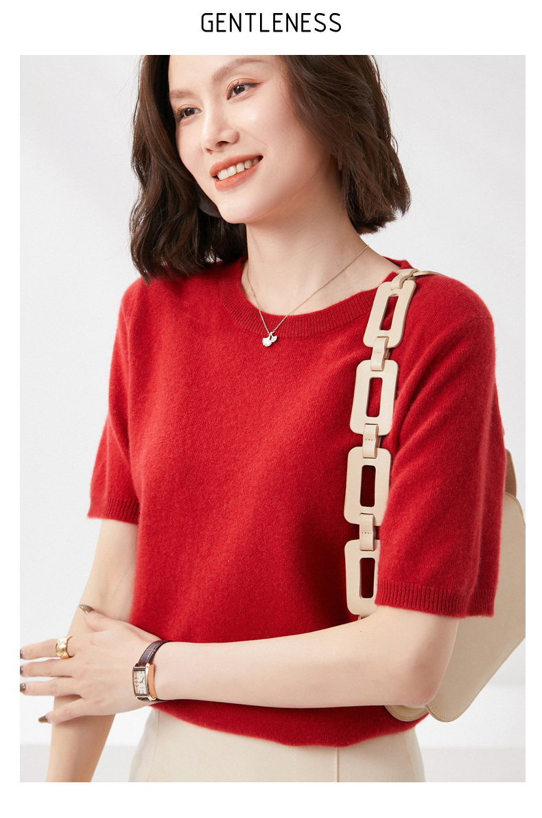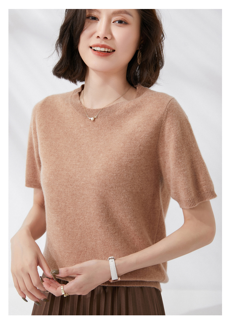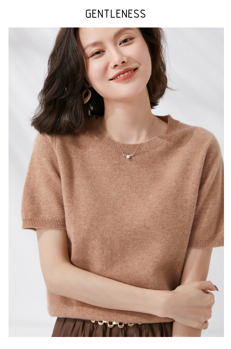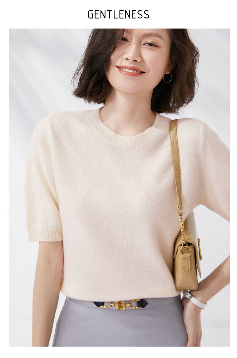 【100%羊毛】 SIIJJEYY枝辑 女士圆领短袖羊毛衫(多色可选)