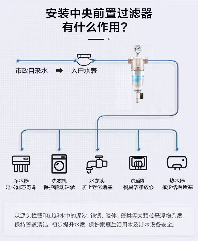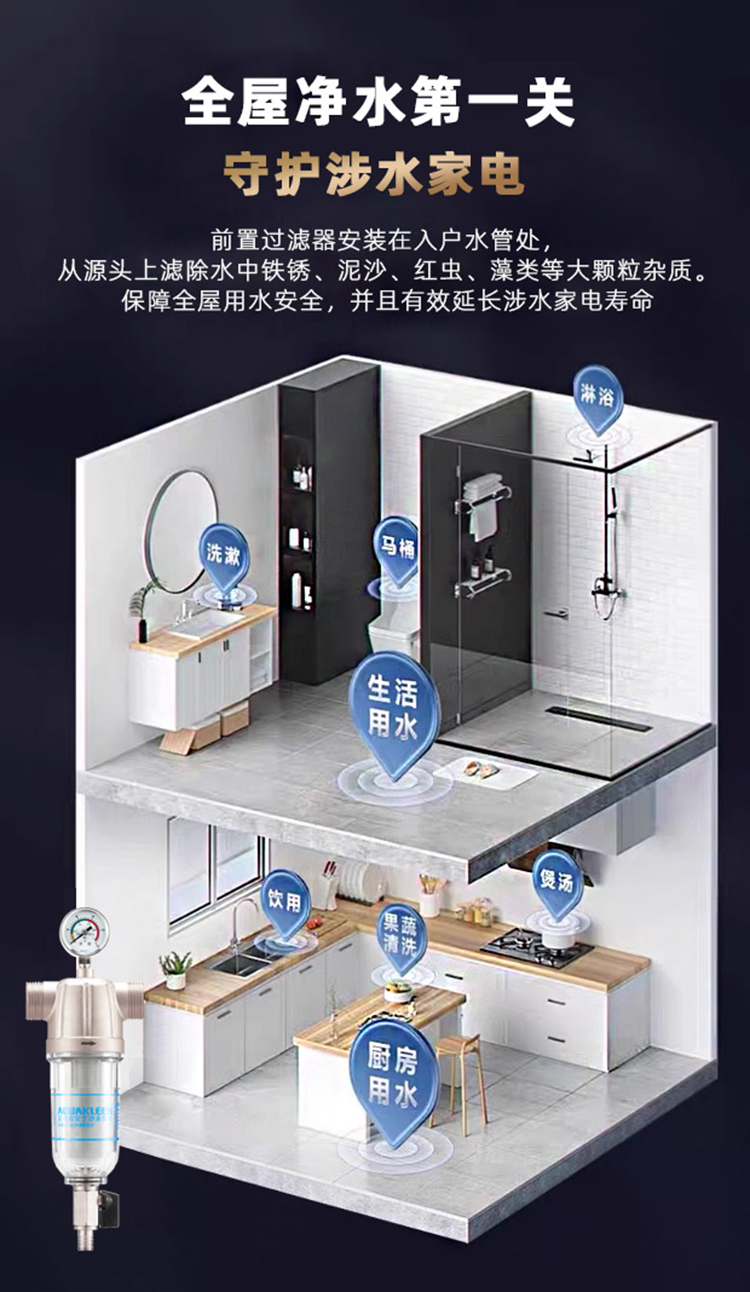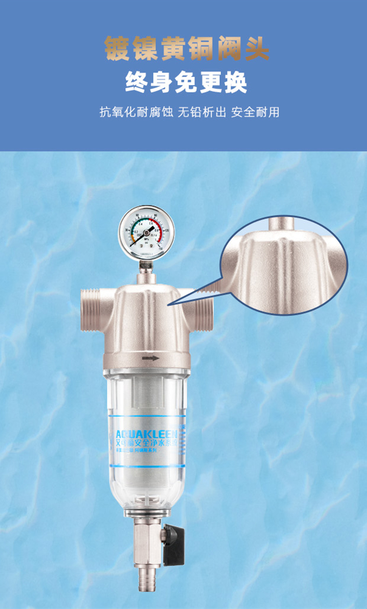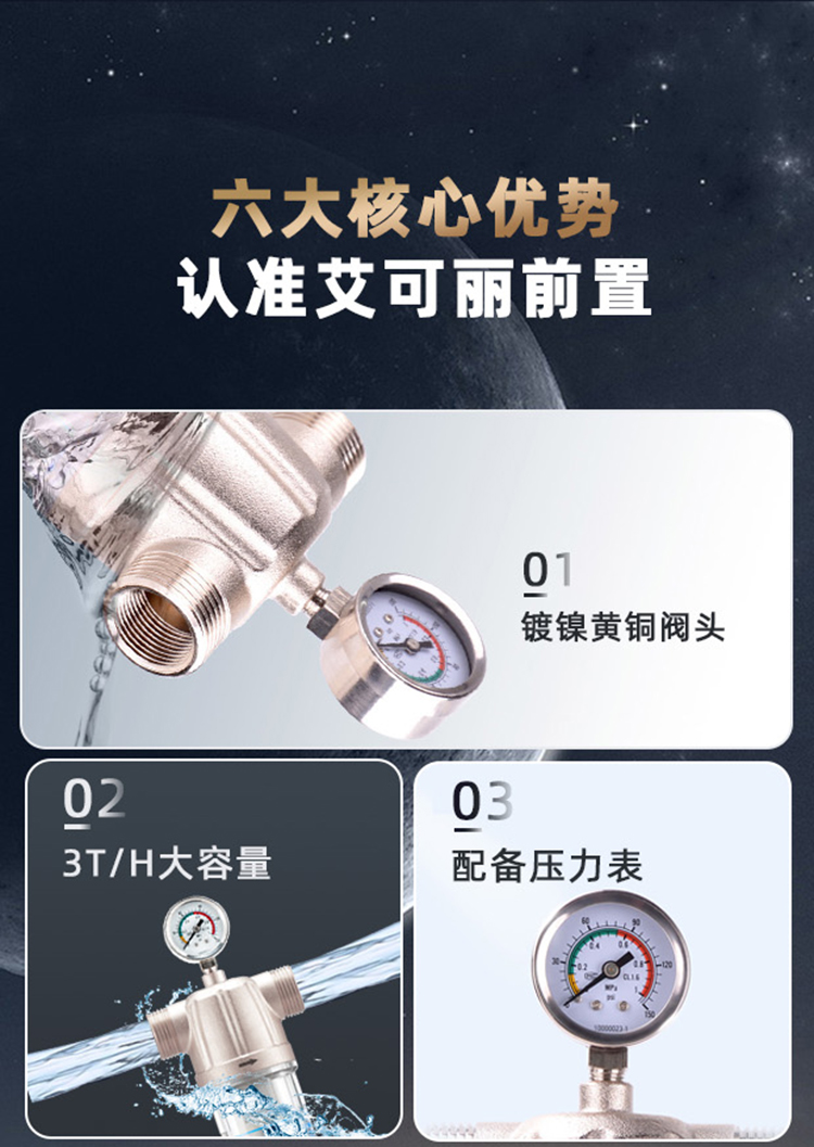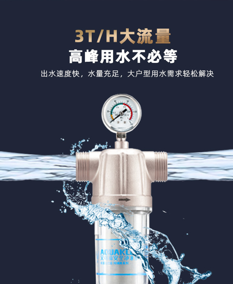 艾可丽阿瑞斯T2全屋自来水前置净水器家用黄铜中央稳压管道滤水器
