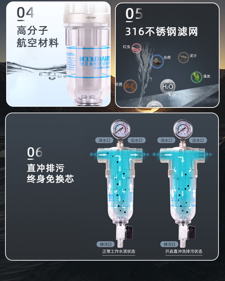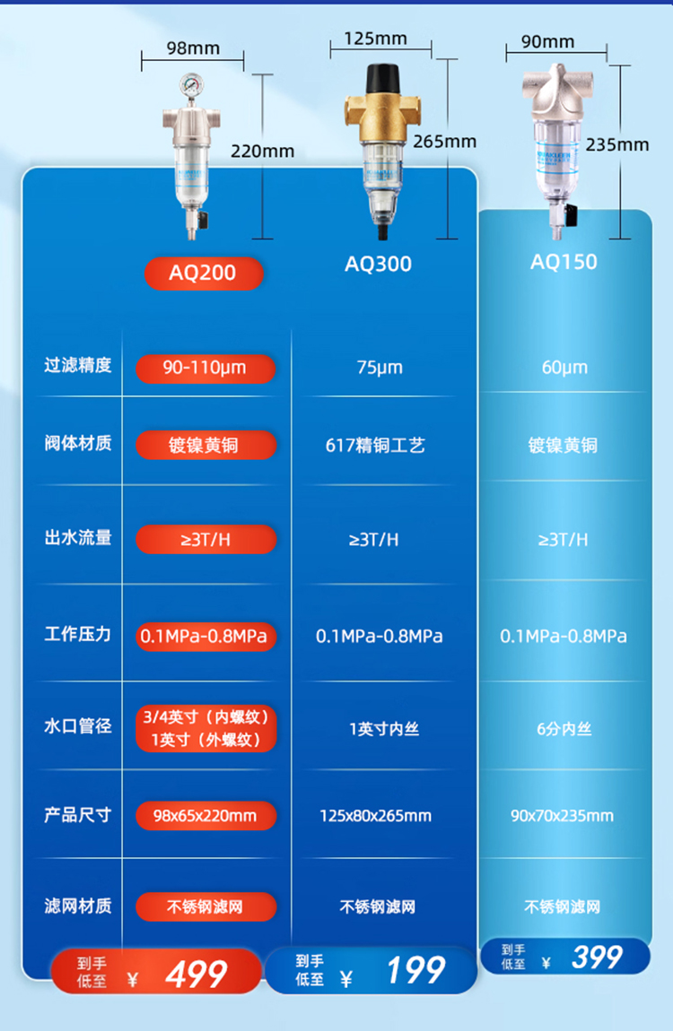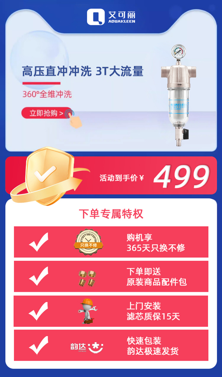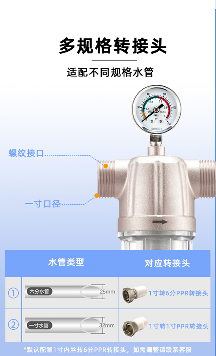 艾可丽阿瑞斯T2全屋自来水前置净水器家用黄铜中央稳压管道滤水器