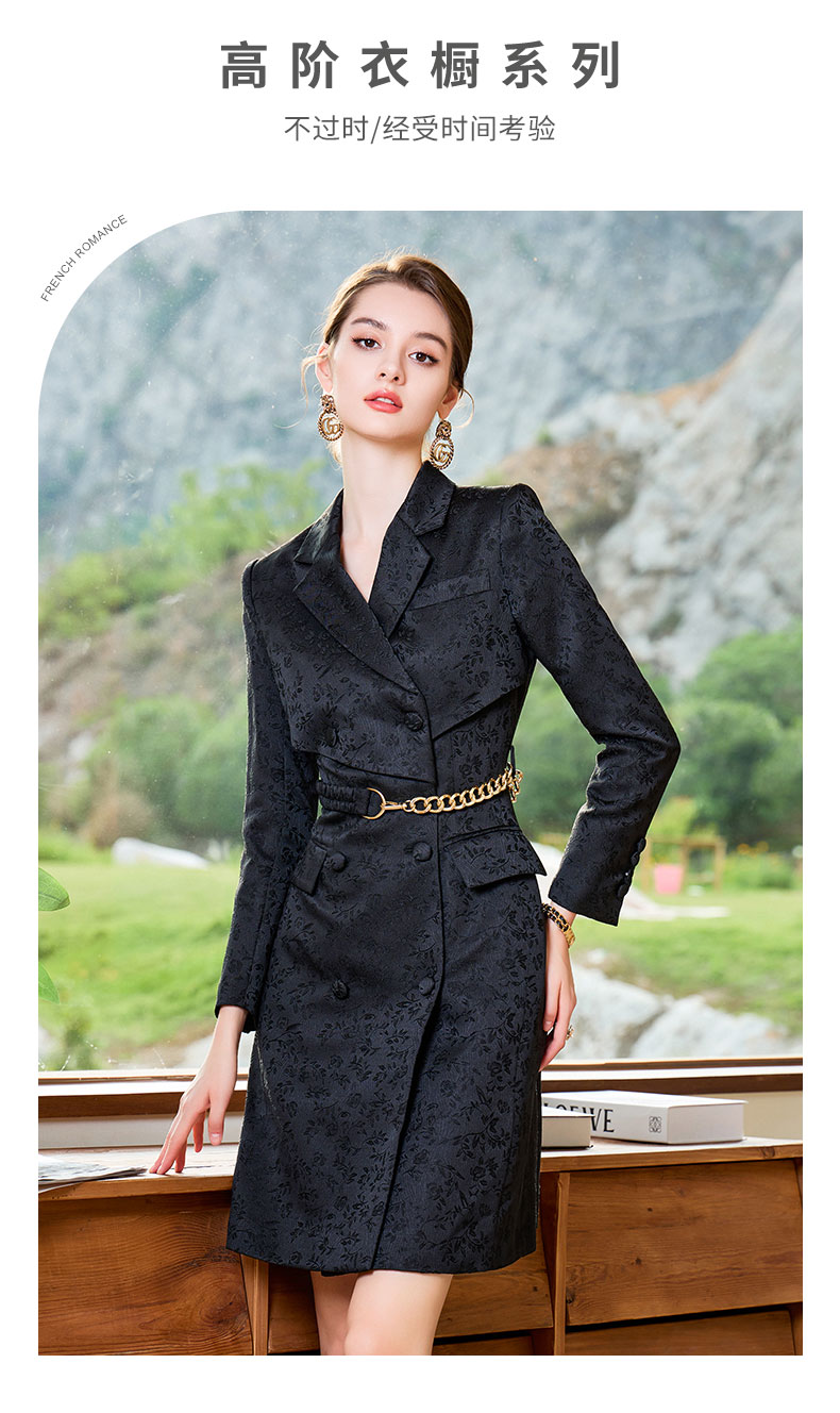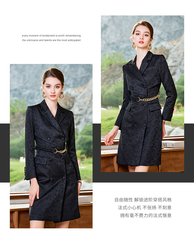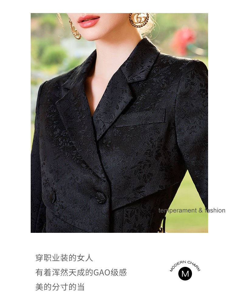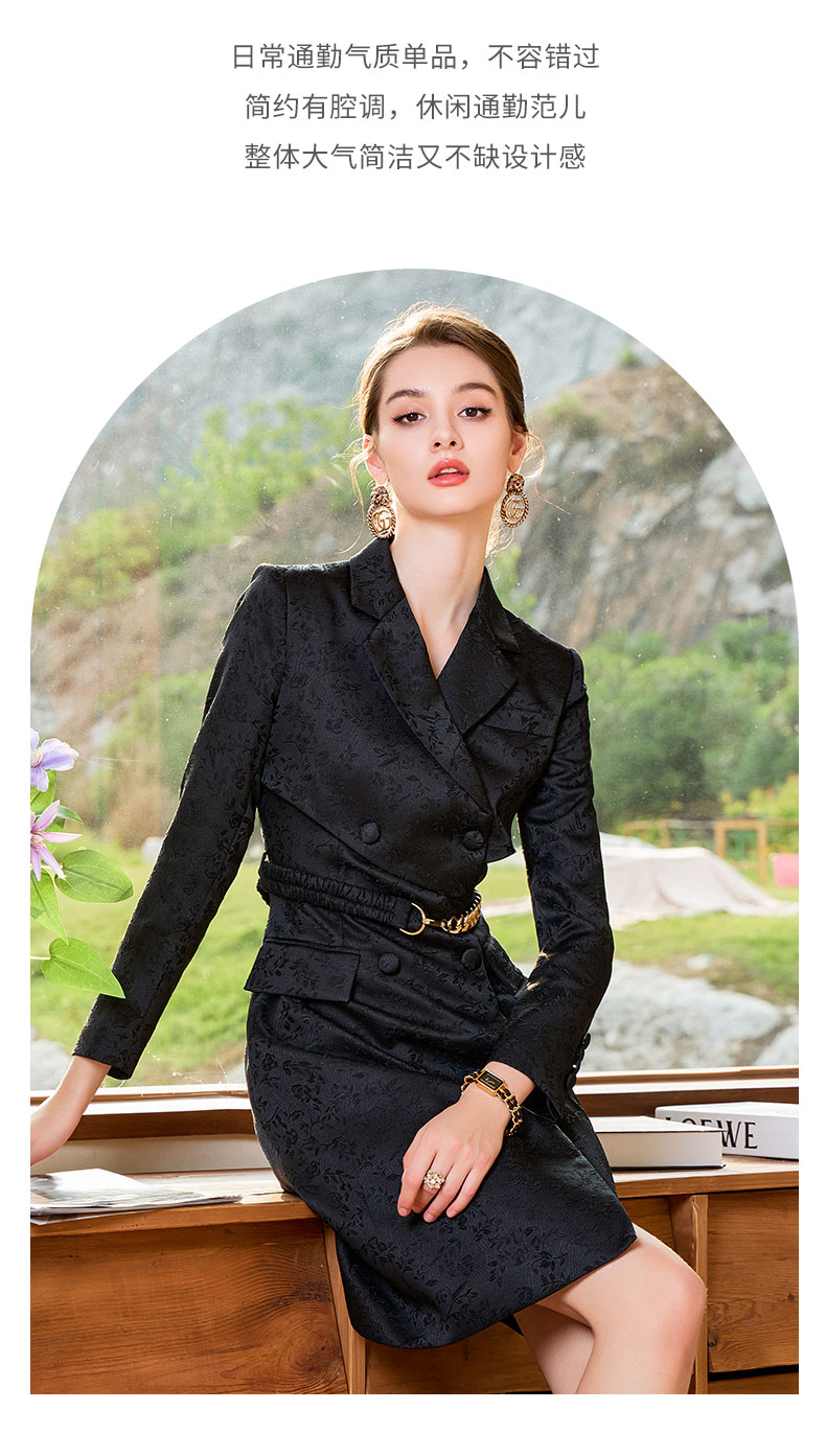 AD大牌高端连衣裙秋款职业装女黑色提花纹理西装裙御姐范小黑裙子