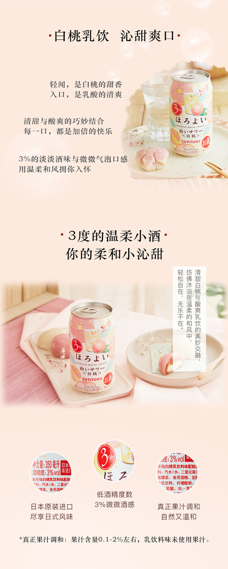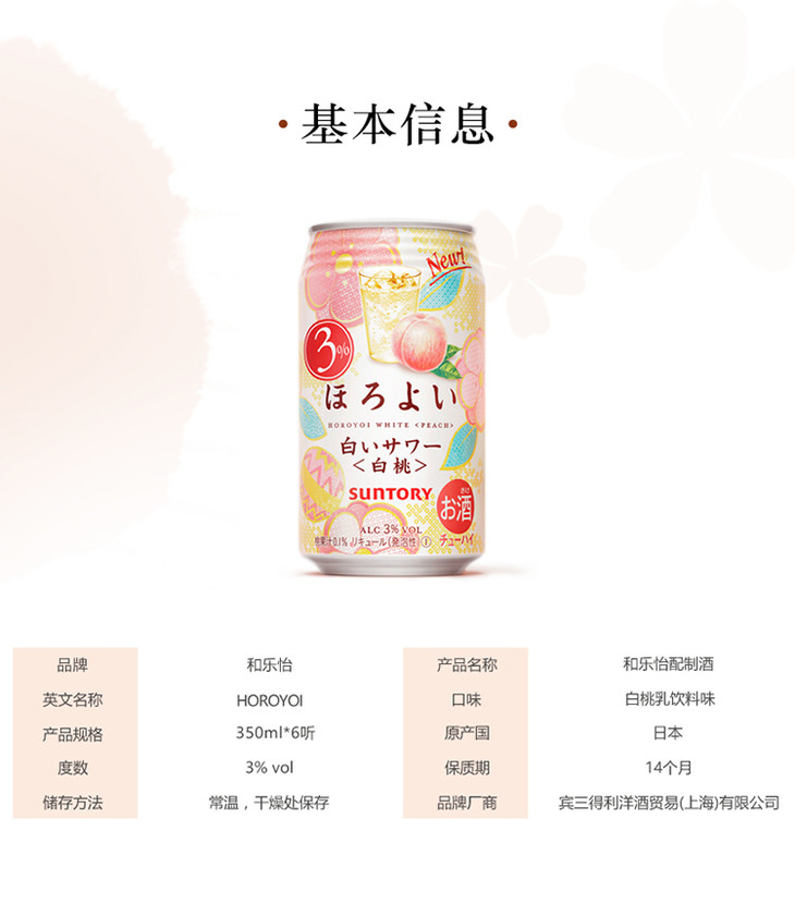 三得利和乐怡鸡尾酒白桃酸乐乳味微醺350ml冰镇清凉