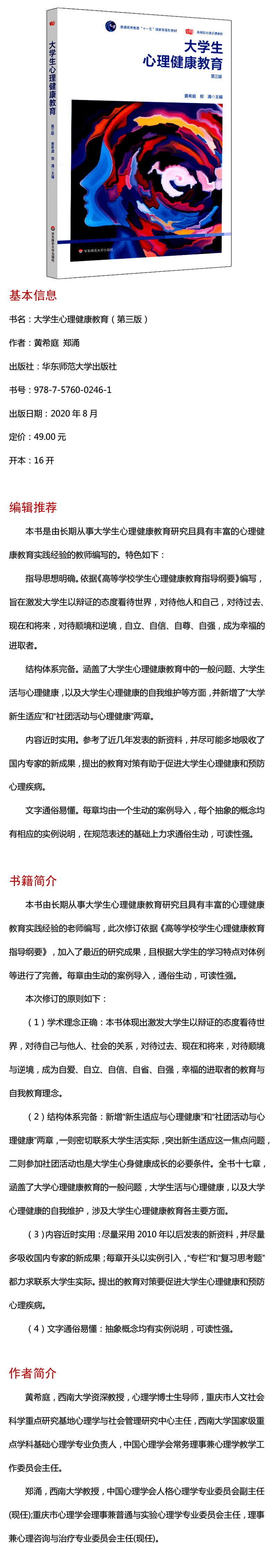 大学生心理健康教育 第三版 心理健康 普通高等教育十一五国家级规划教材 高等院校通识课教材 正版 华东师范大学出版社