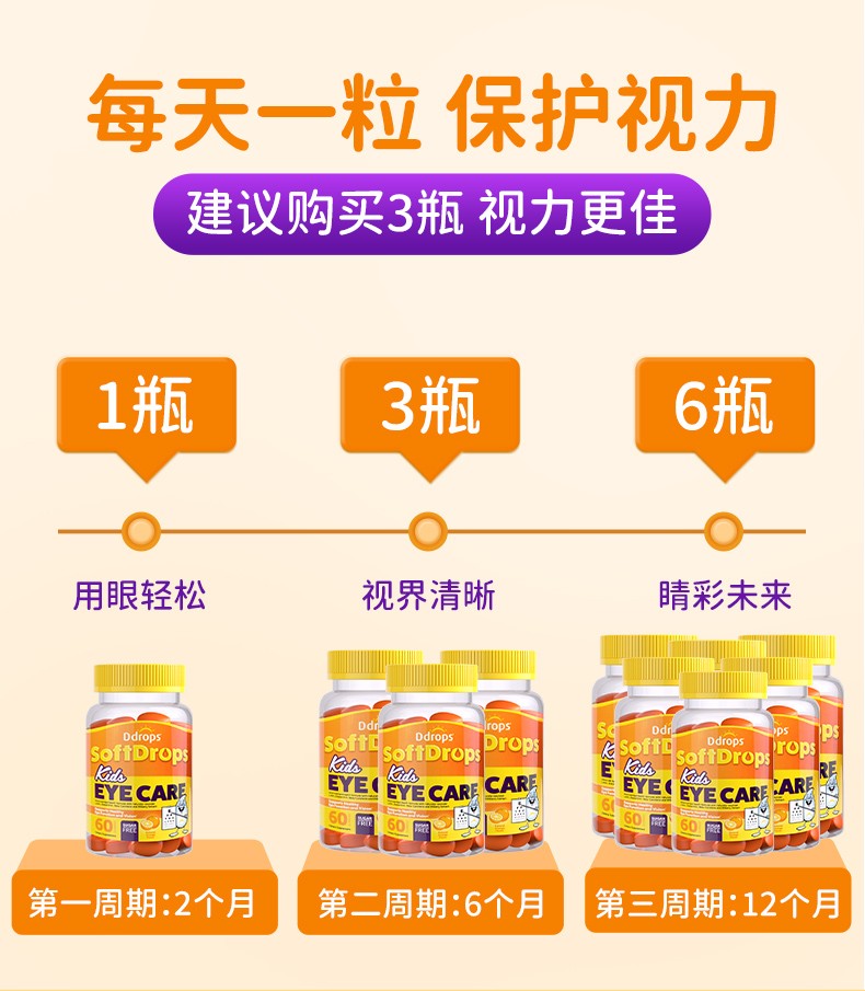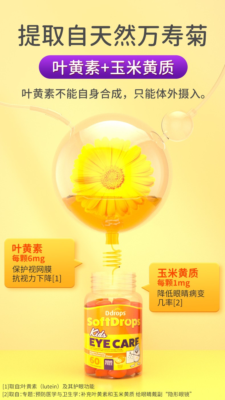 加拿大 Ddrops 无糖型儿童蓝莓越橘叶黄素软糖护眼60粒(防伪标)