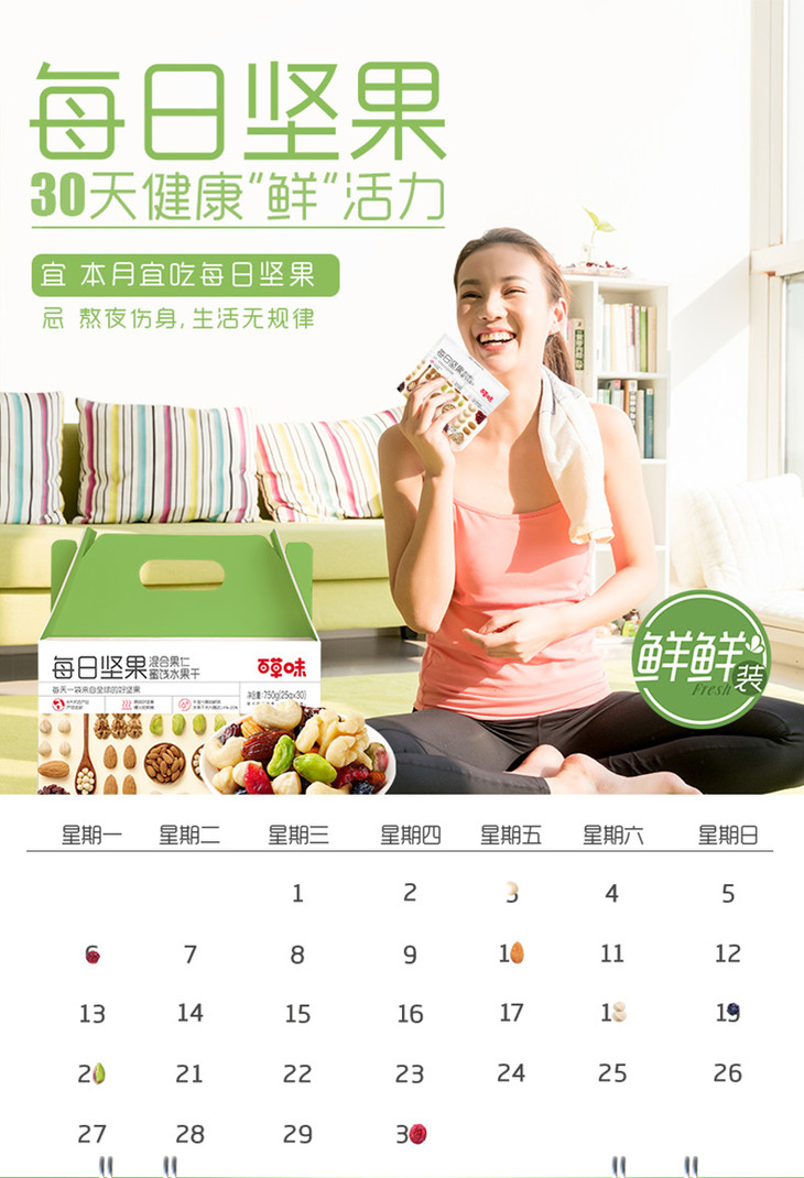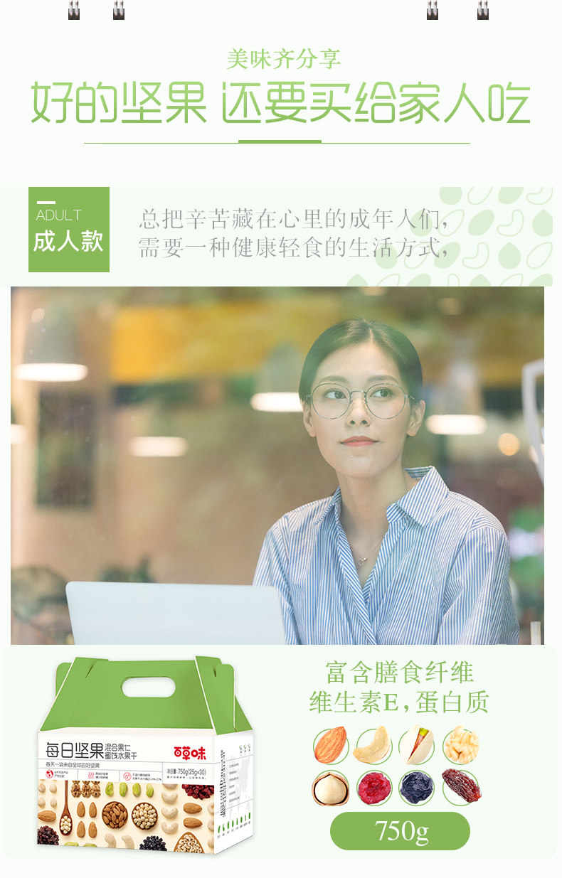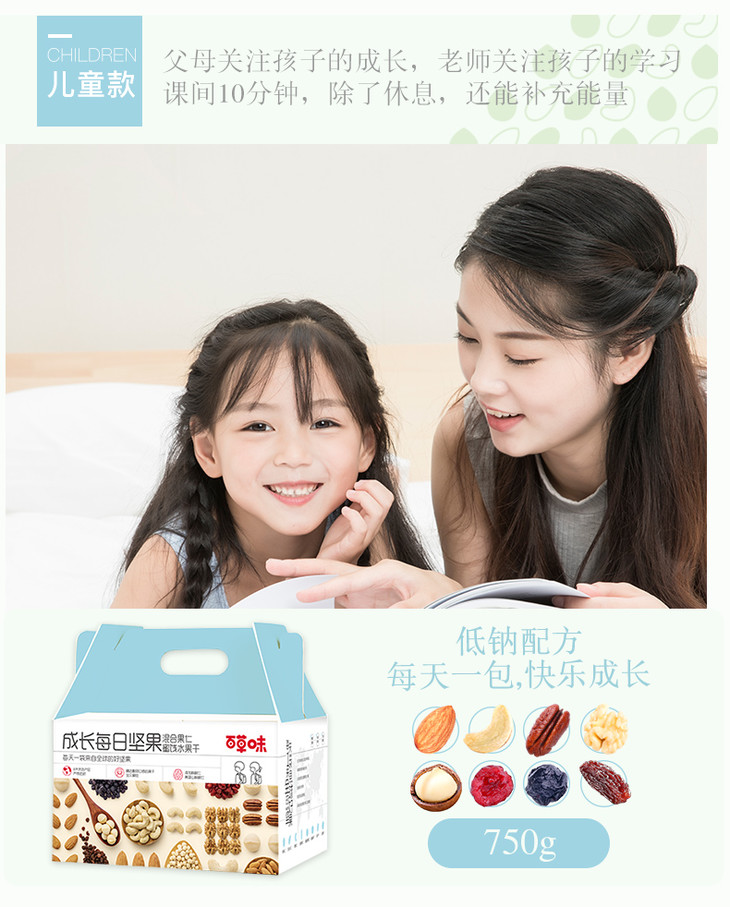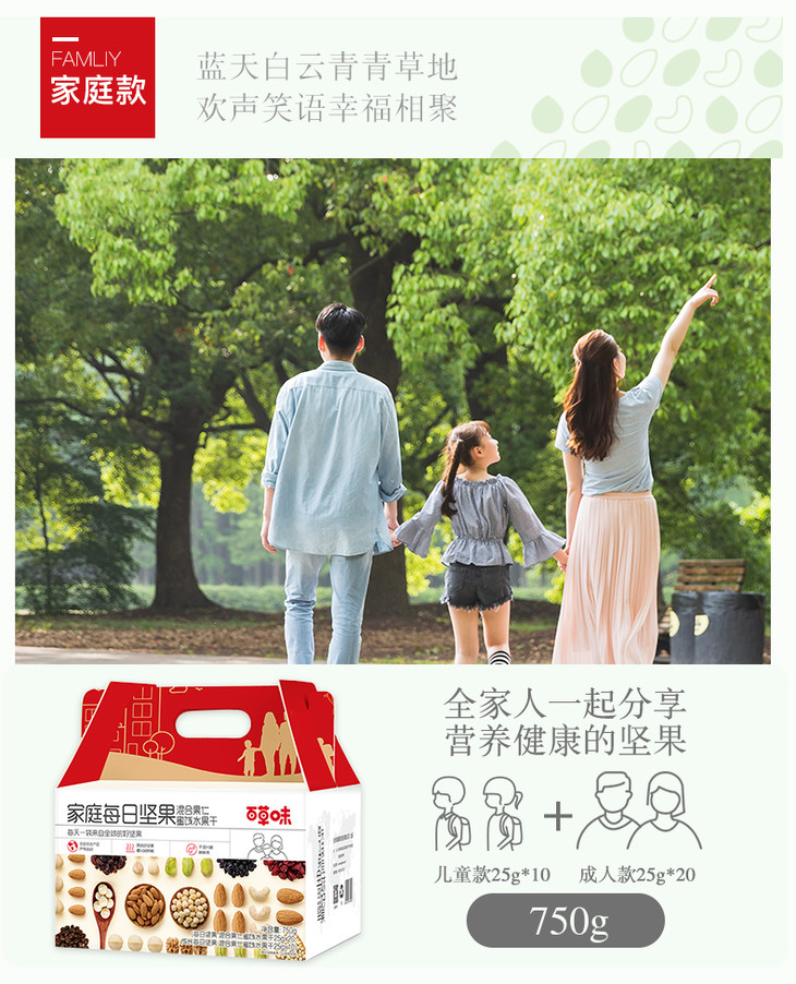 【砍价29.9元购】百草味每日坚果礼盒1箱750g (25g*30袋)