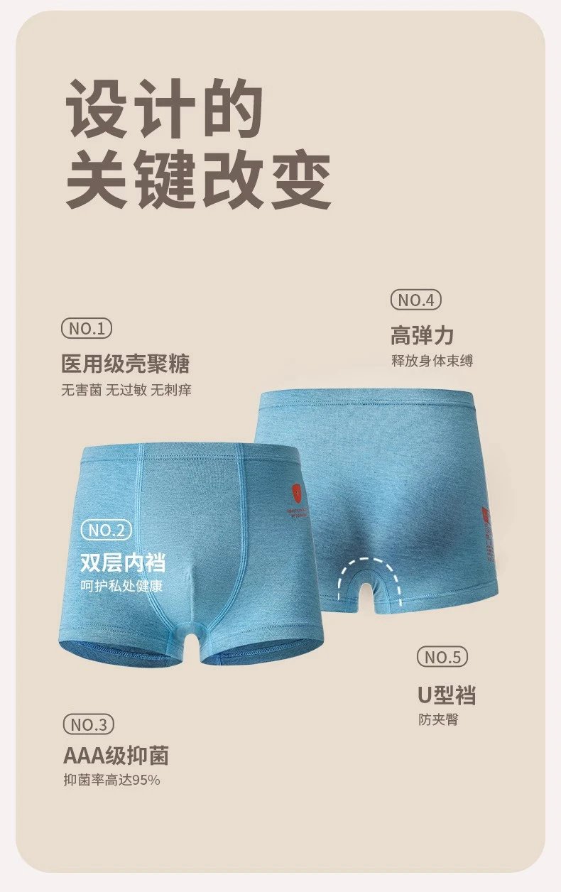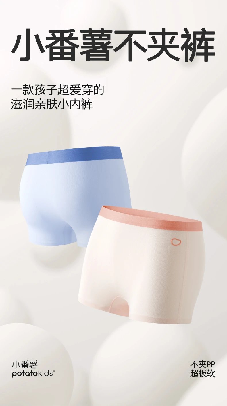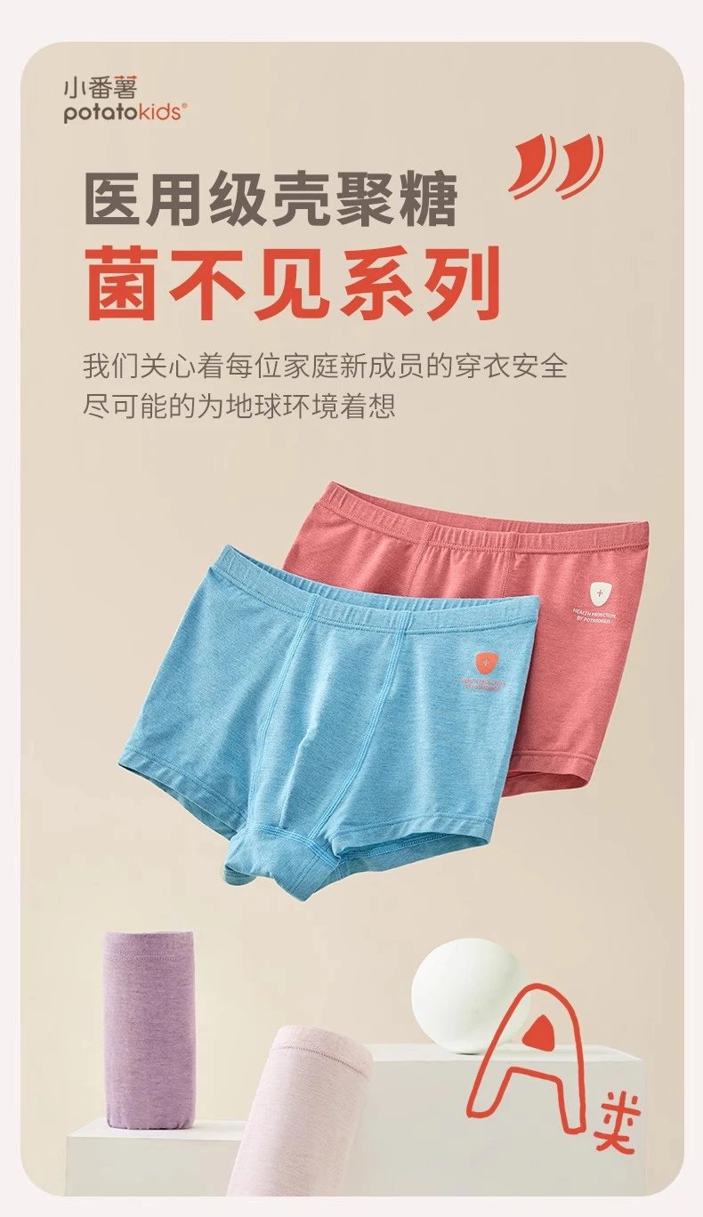 【特价爆款】小番薯PotatoKids儿童壳聚糖内裤排汗透气舒适平角内裤