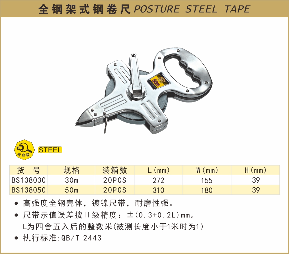 波斯架式钢卷尺BS-A8030 30m50m BS138030/BS138050