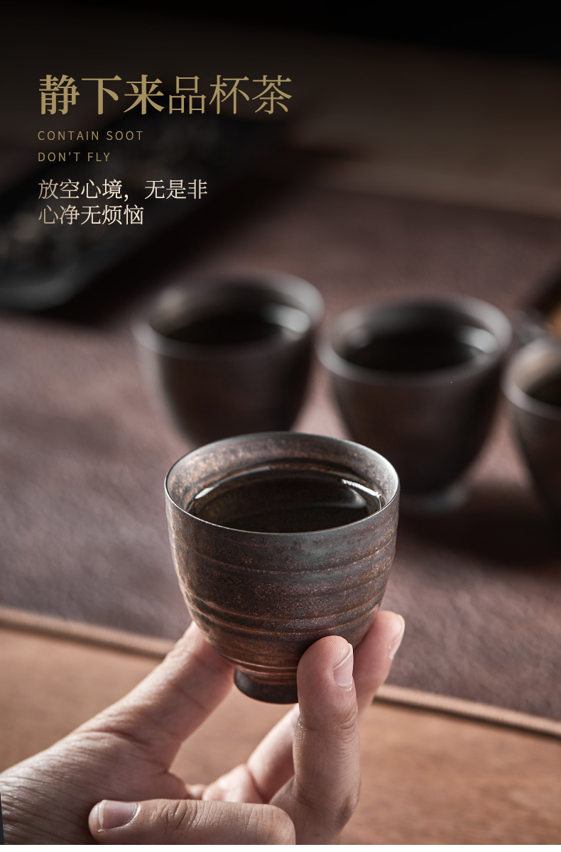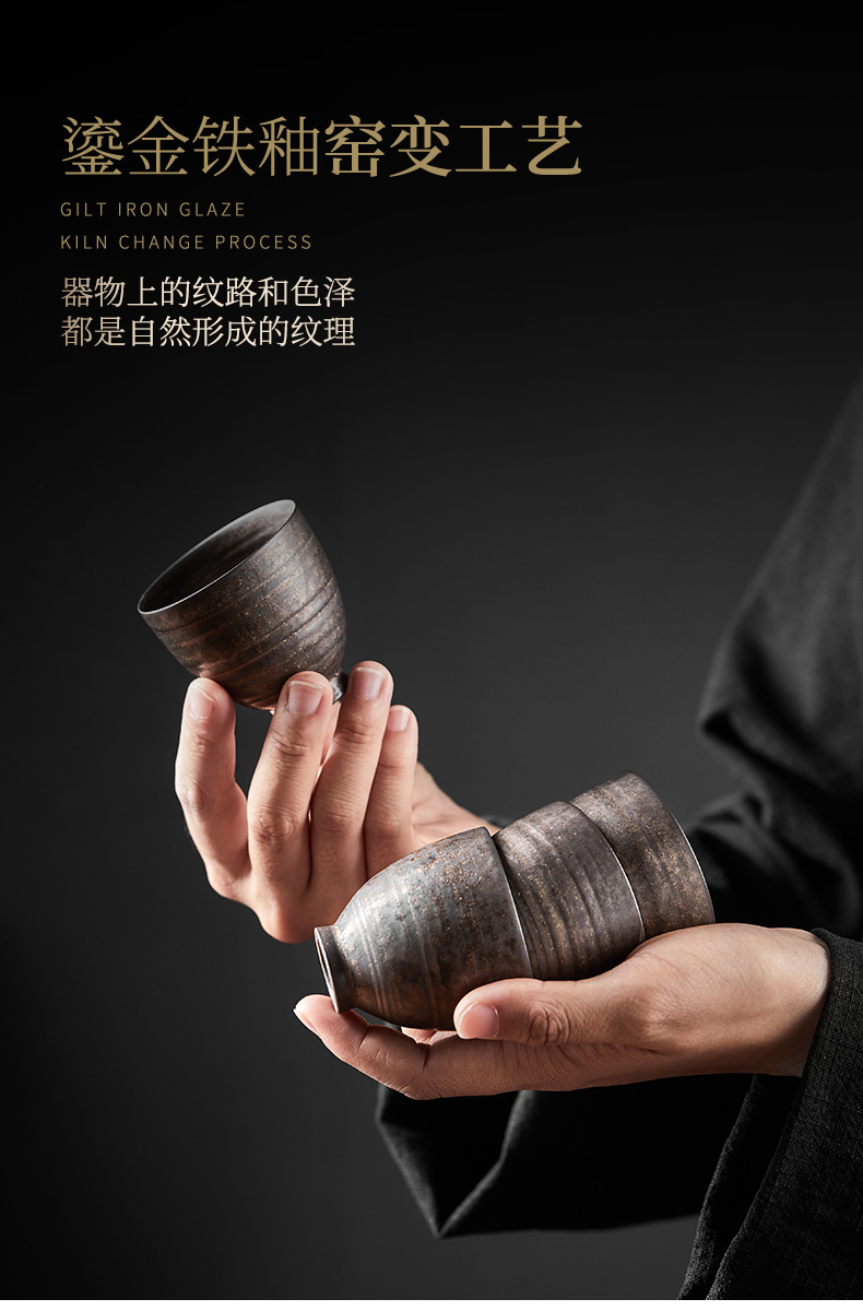 永利汇手工鎏金釉品茗杯日式单杯陶瓷功夫茶具茶杯家用主人杯复古小杯子