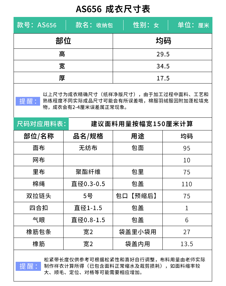 裁缝学苑AS656多功能毛线收纳包纸样收纳包多功能收纳整理袋样板