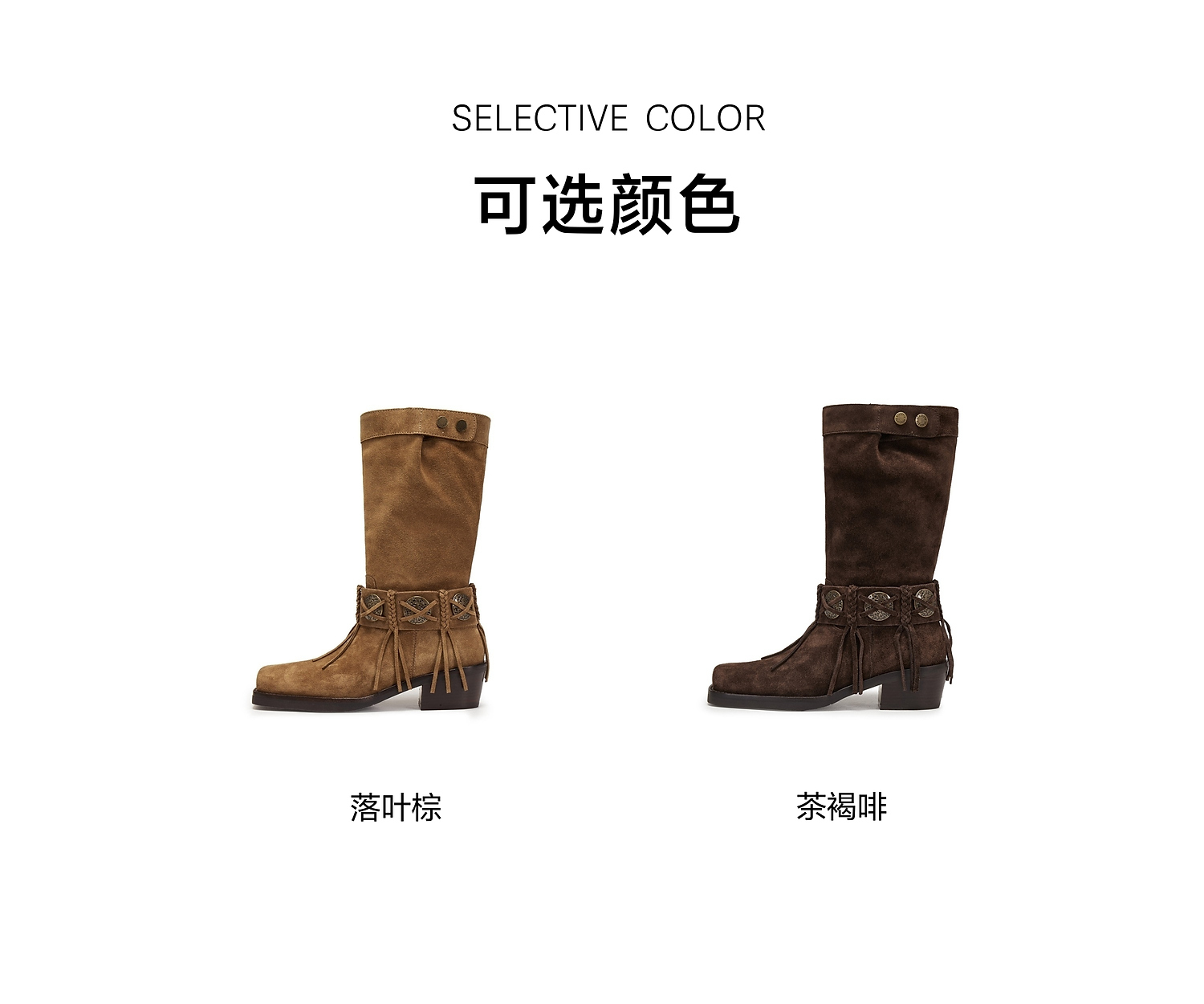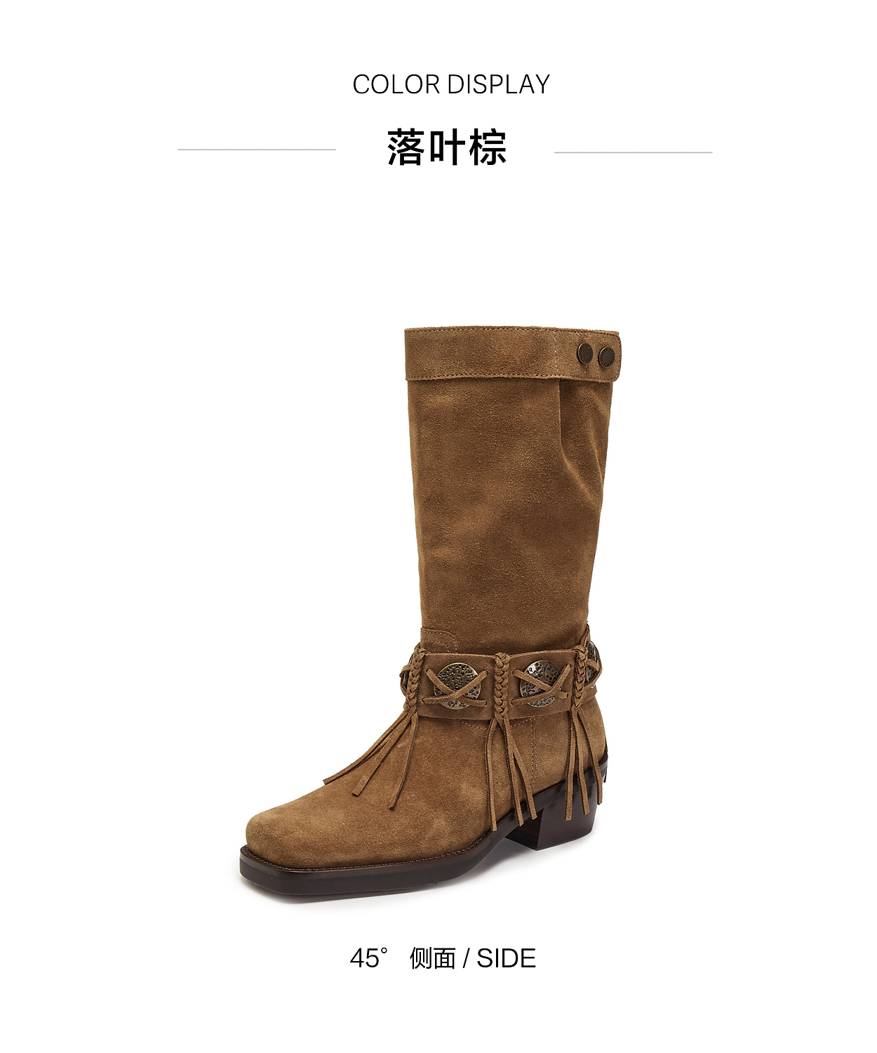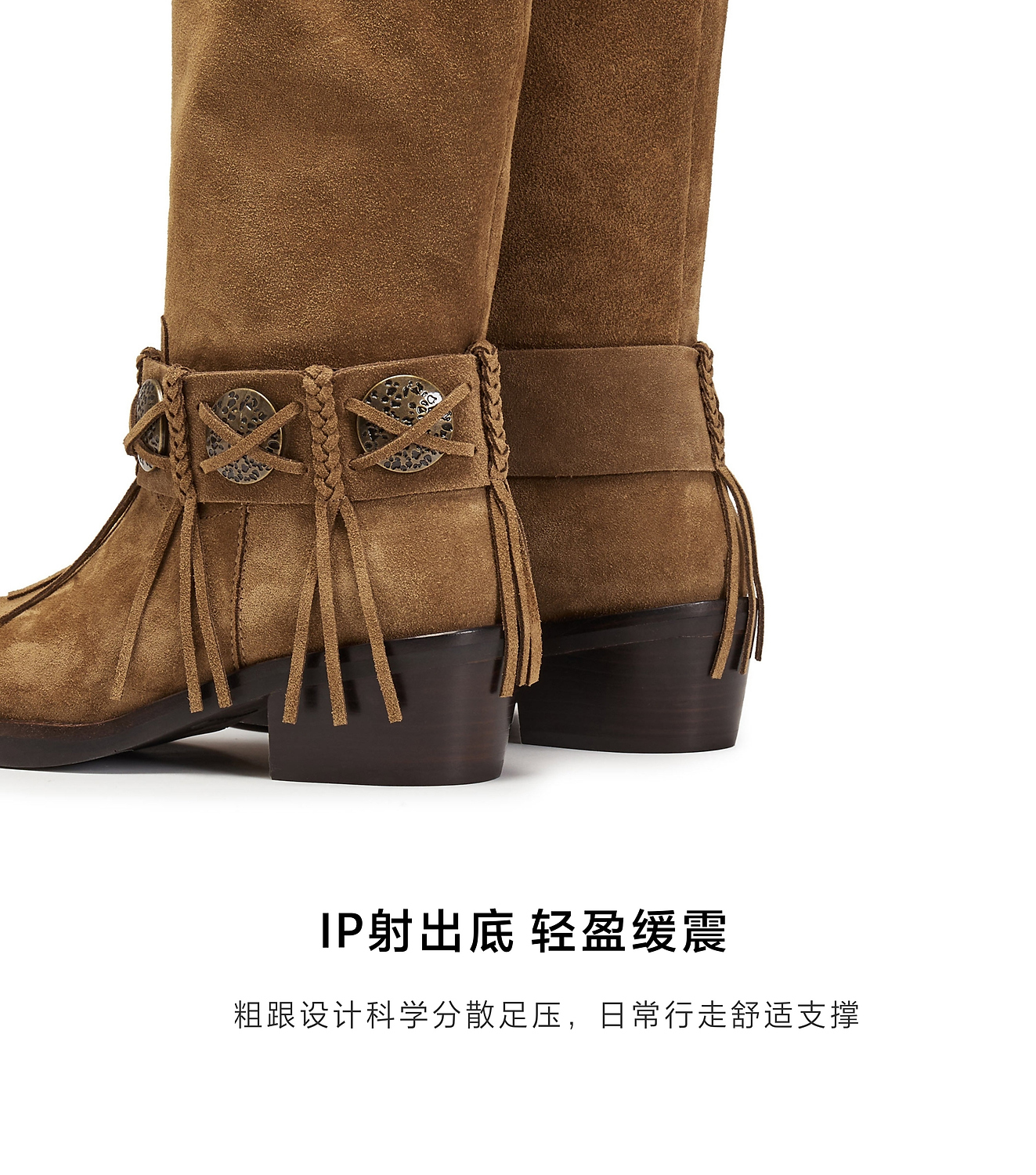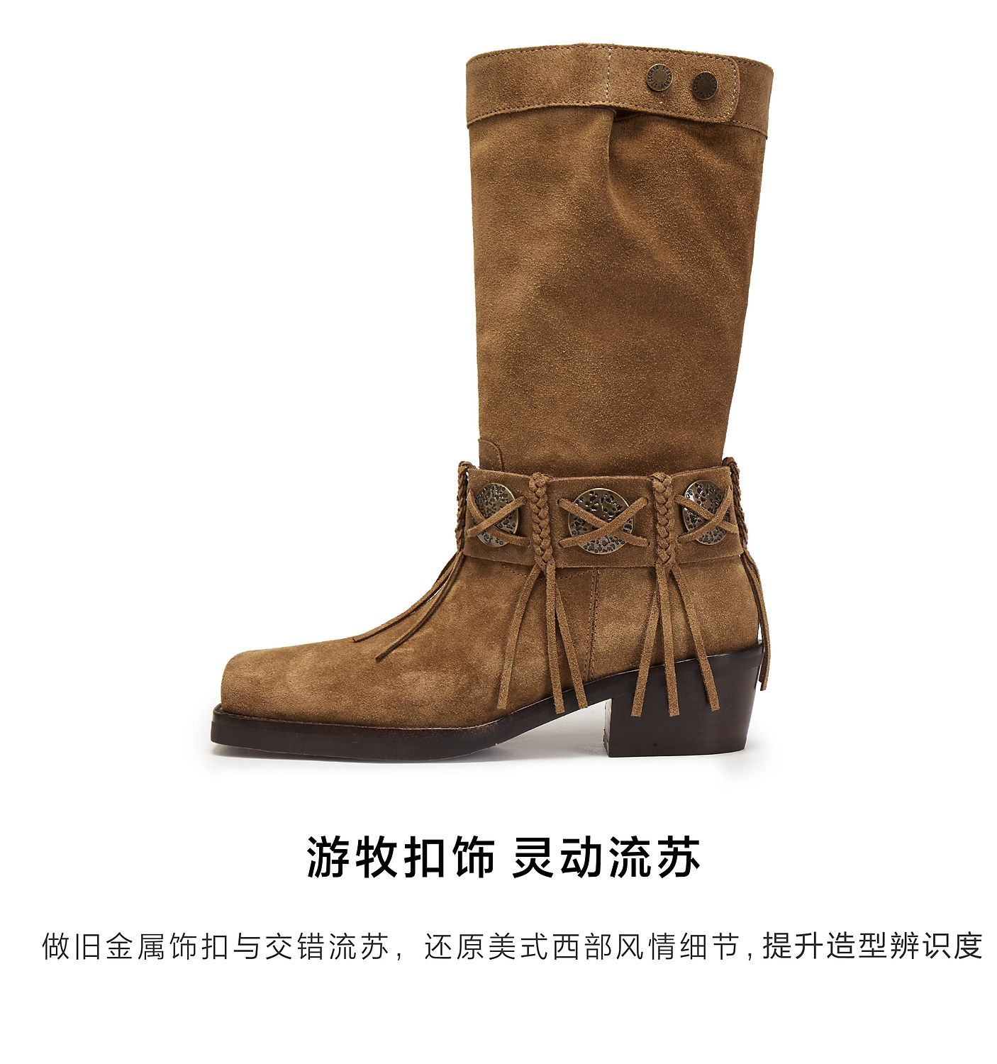 【云粉节】【思加图】BF楼思加图2025新款塞尔玛西部靴牛仔靴棕色复古长靴高筒女靴EI701, 吊牌价2990,活动价2198