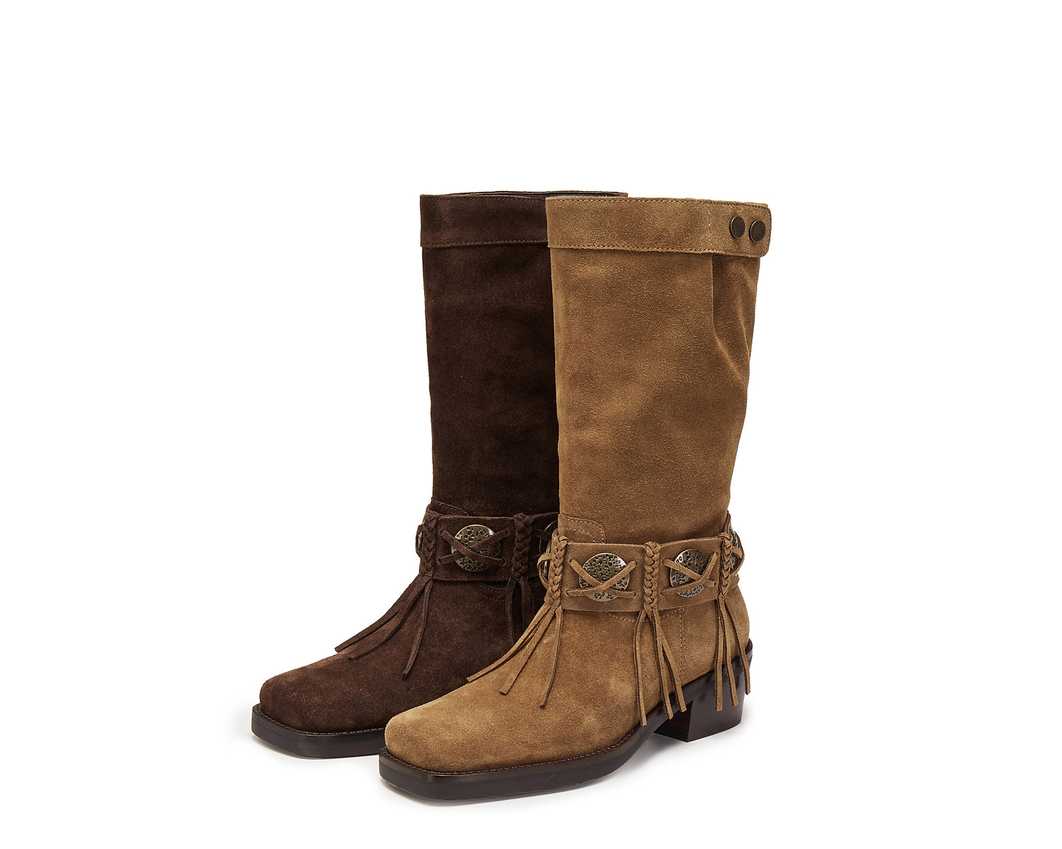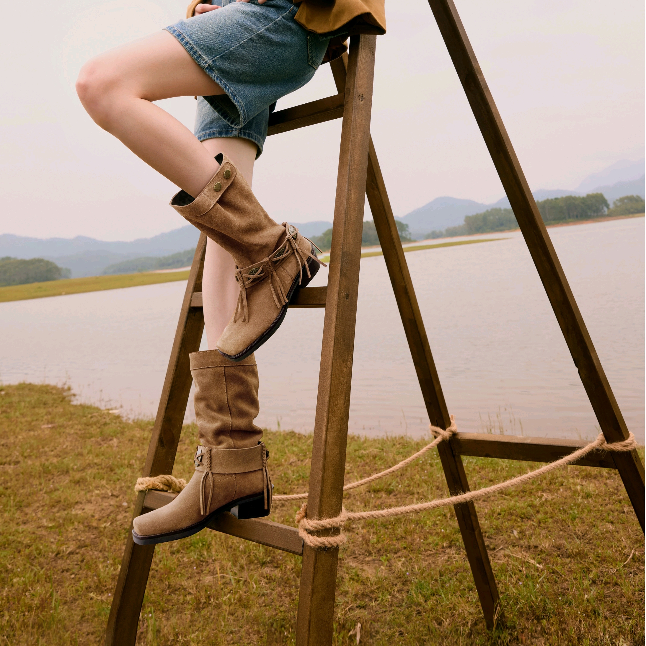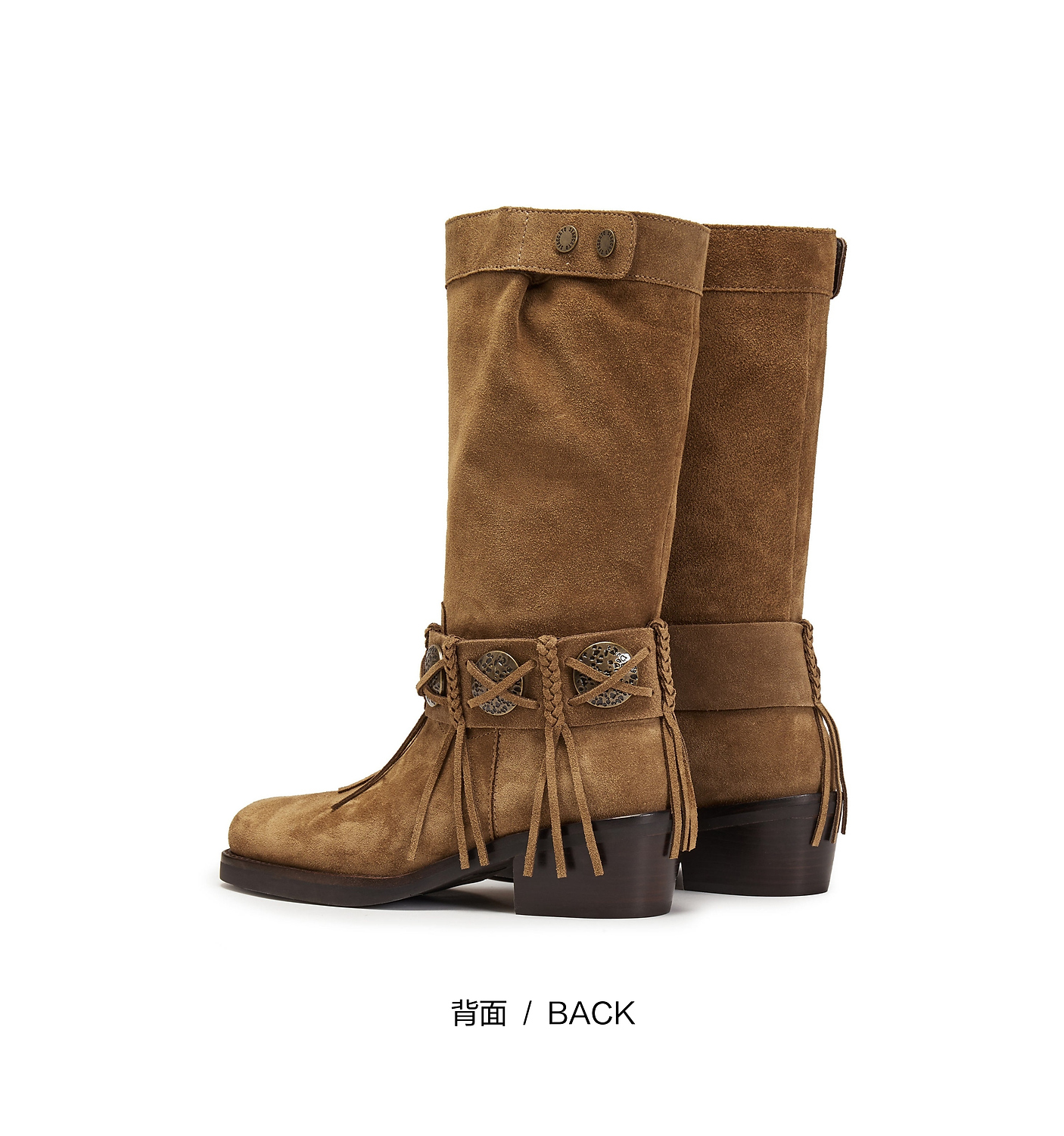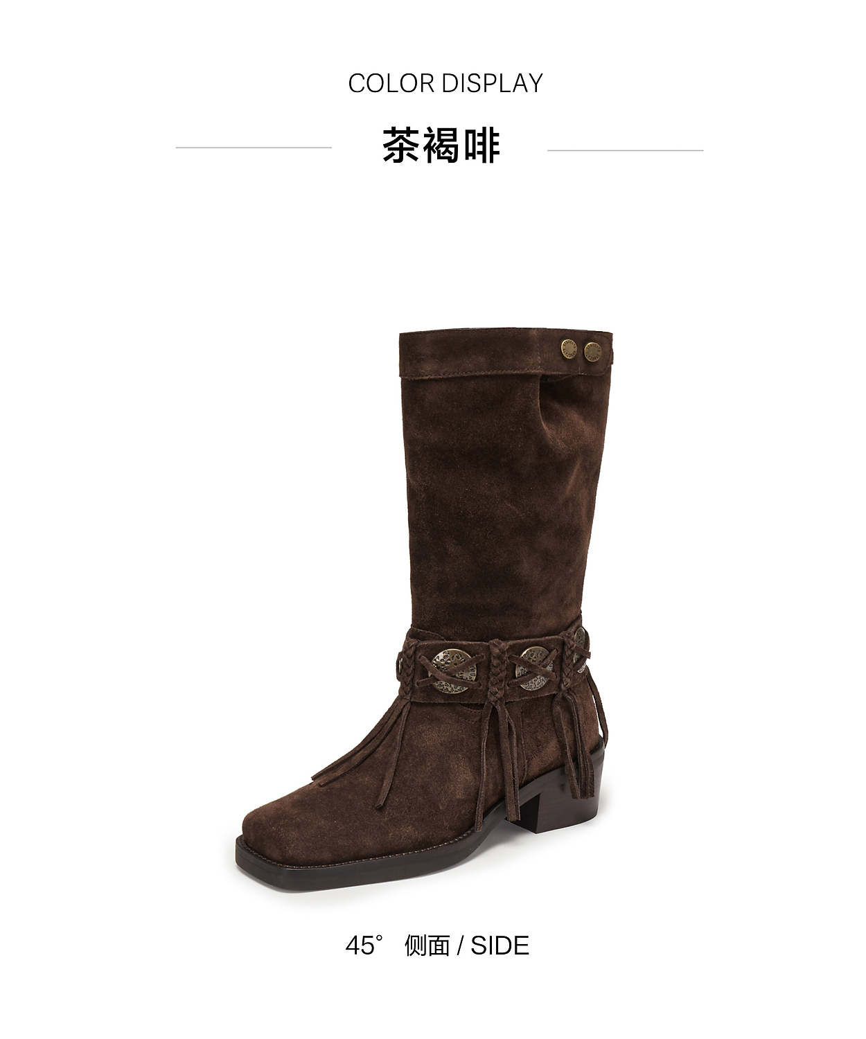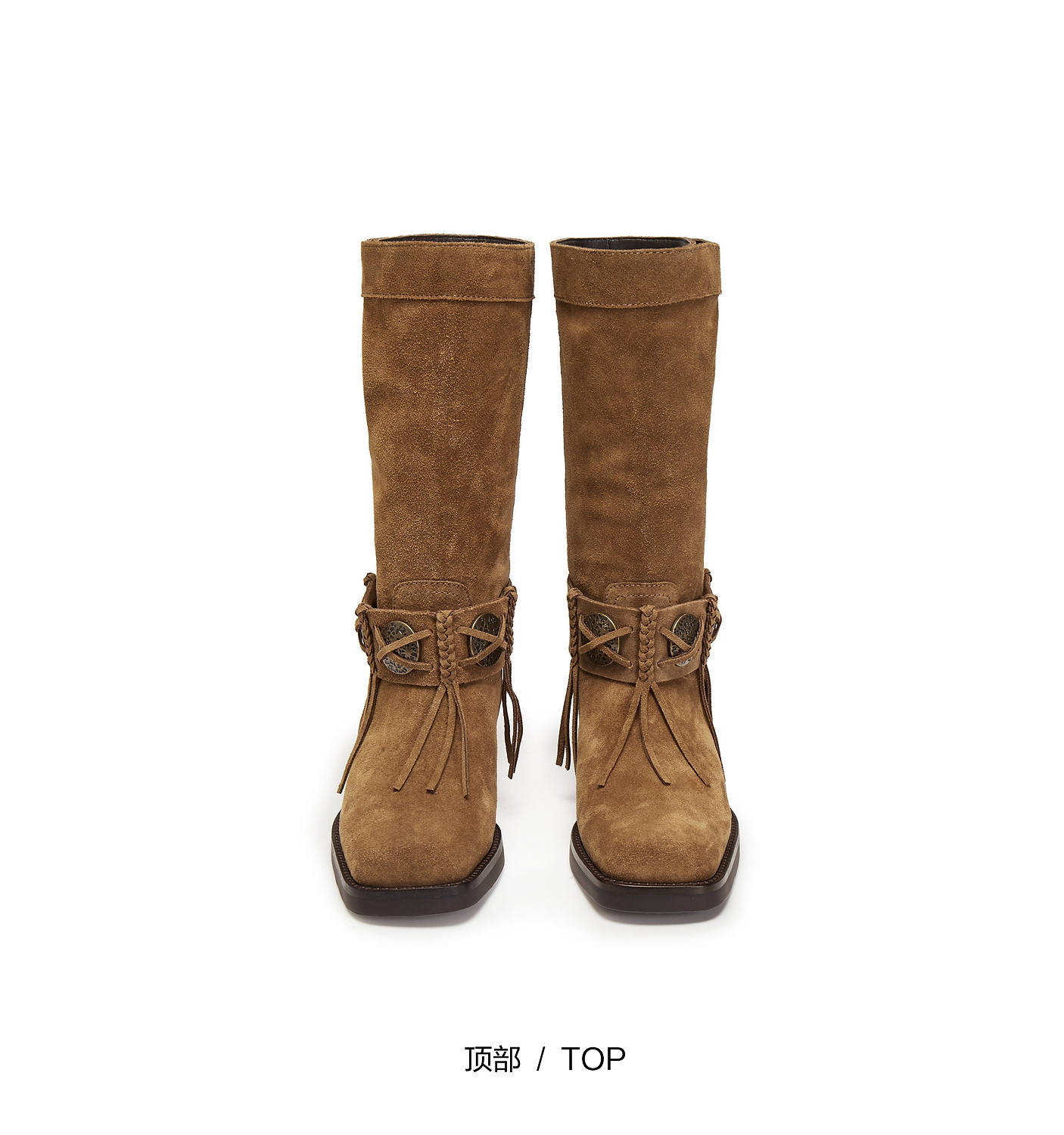 【云粉节】【思加图】BF楼思加图2025新款塞尔玛西部靴牛仔靴棕色复古长靴高筒女靴EI701, 吊牌价2990,活动价2198