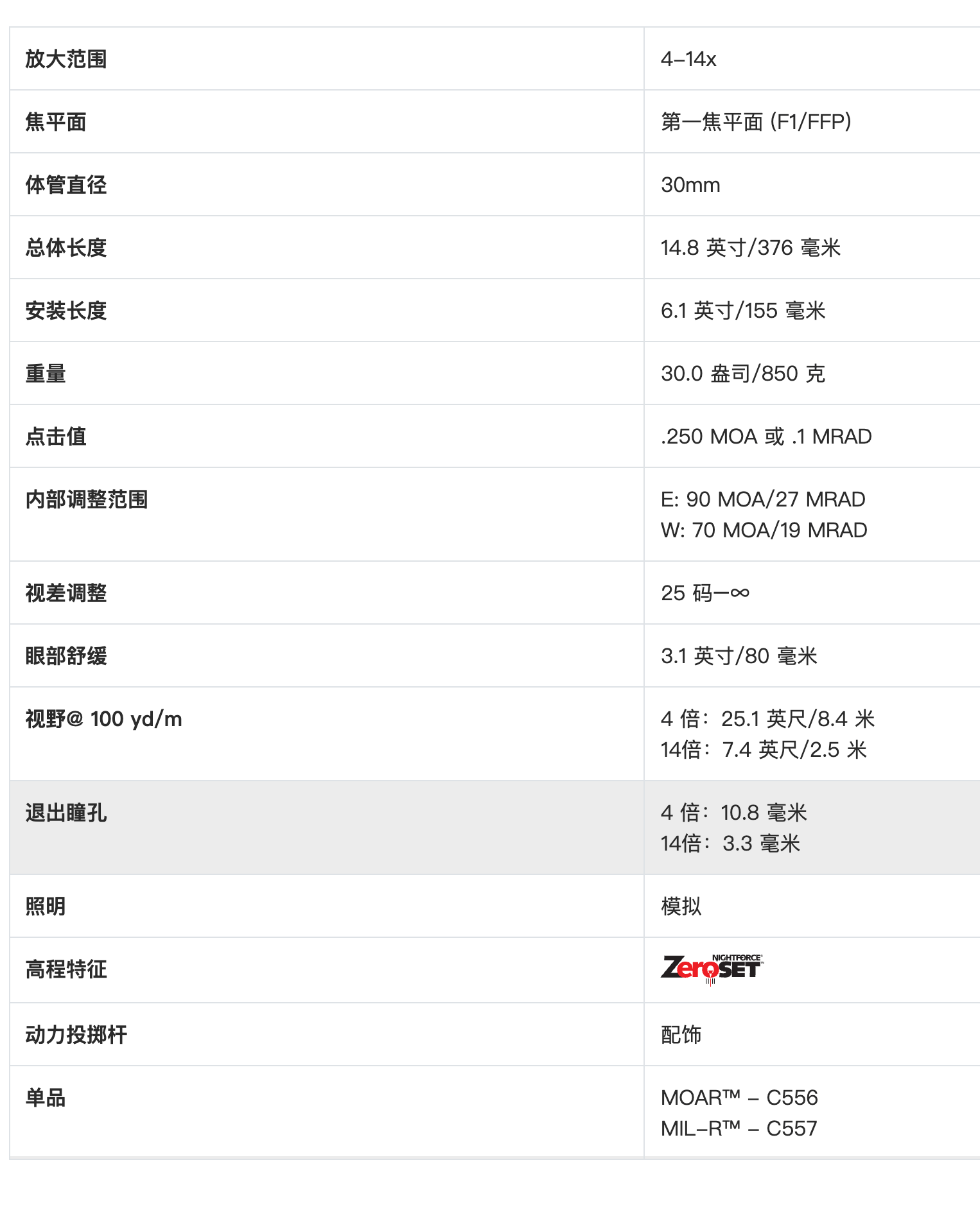 Nightforce/黑夜能量 SHV 4-14x50 F1 .1 MIL -C557