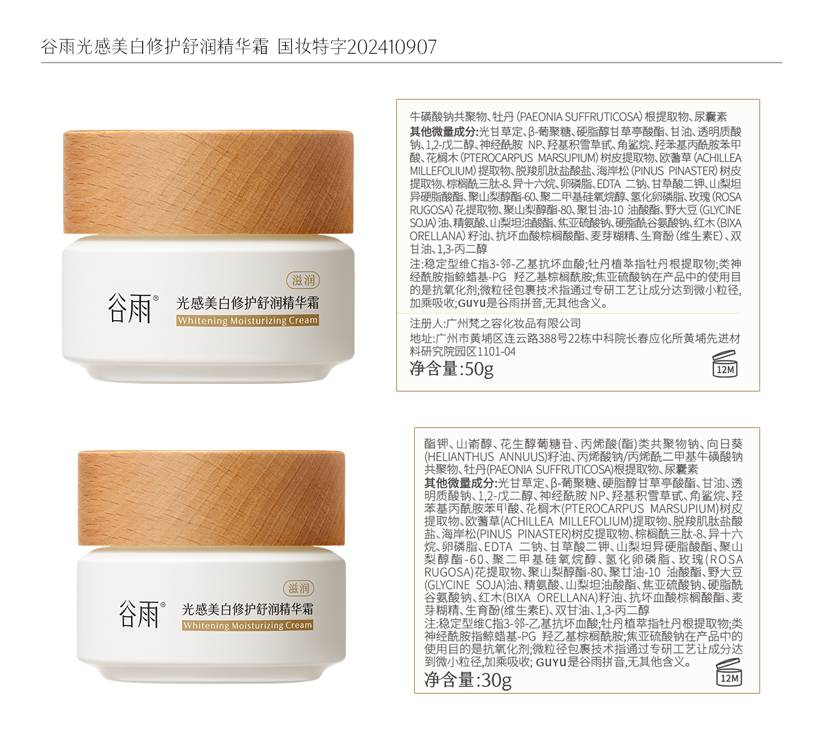 【门店直发】谷雨第二代/三代美白奶罐修护面霜保湿补水精华霜祛斑霜50g