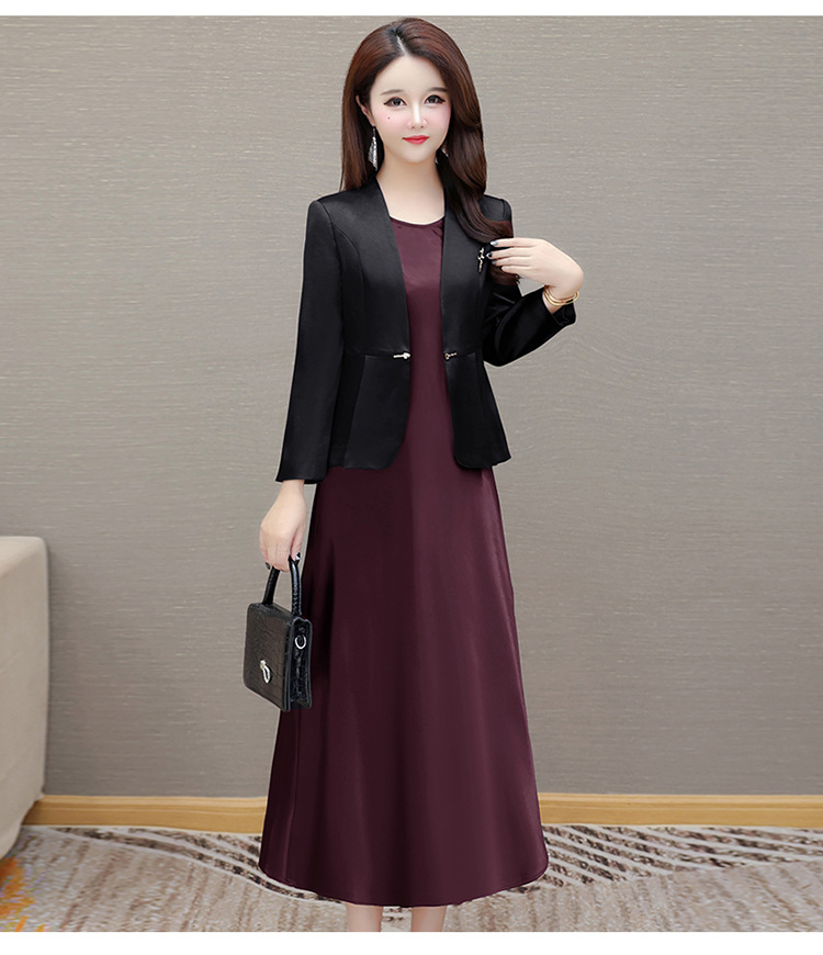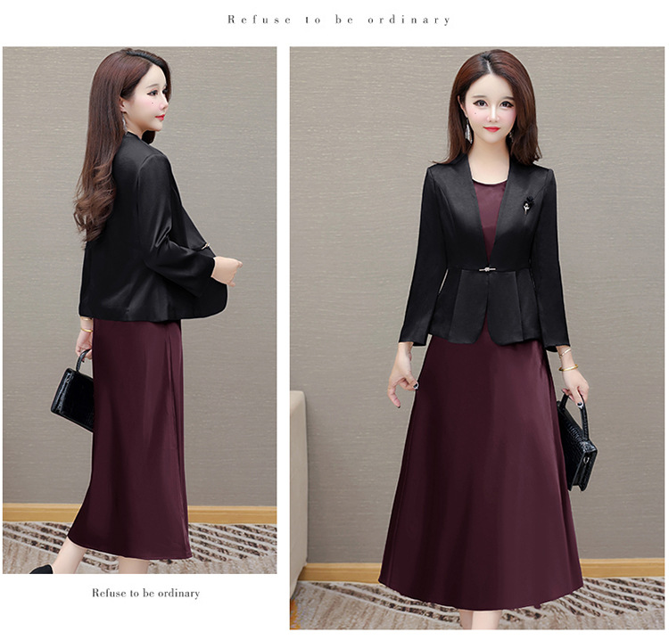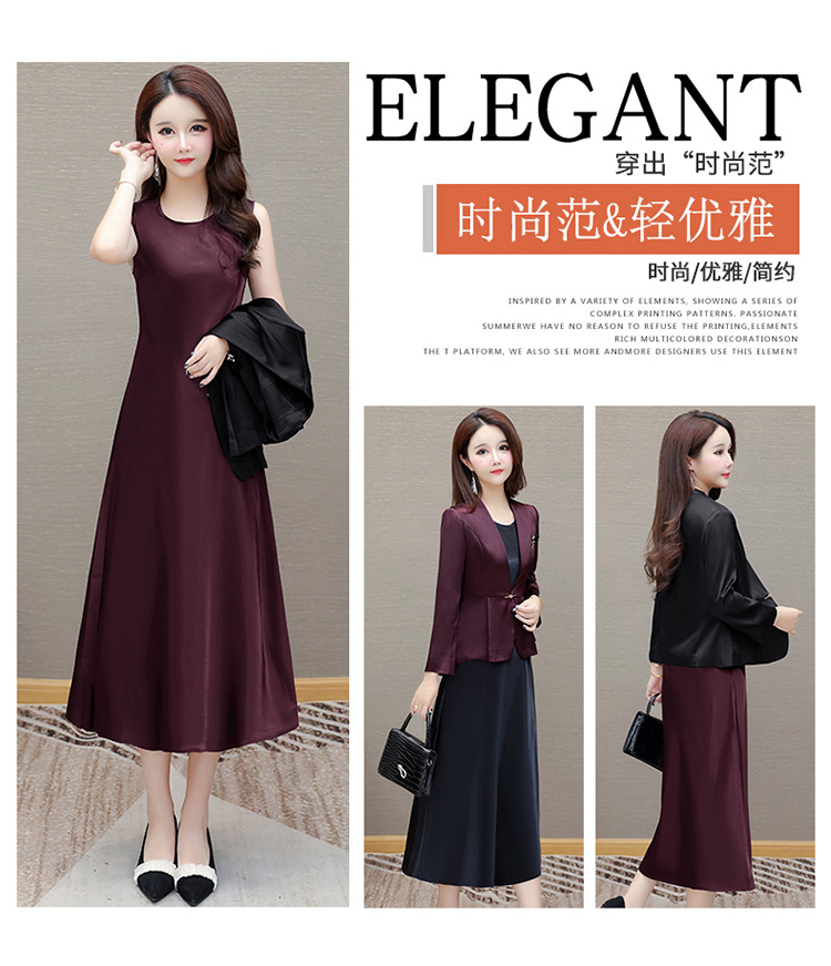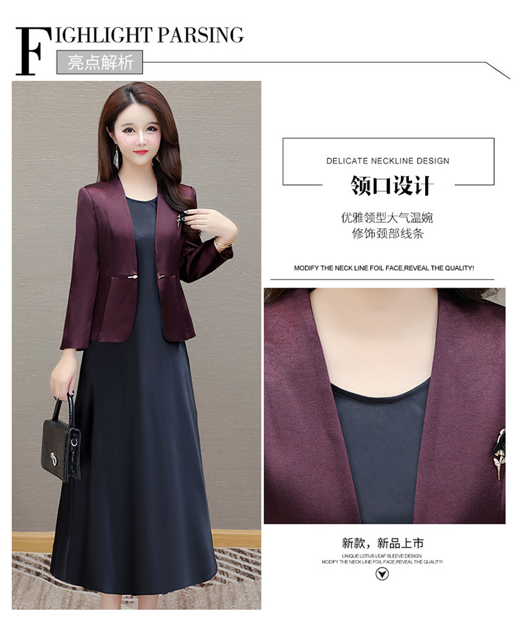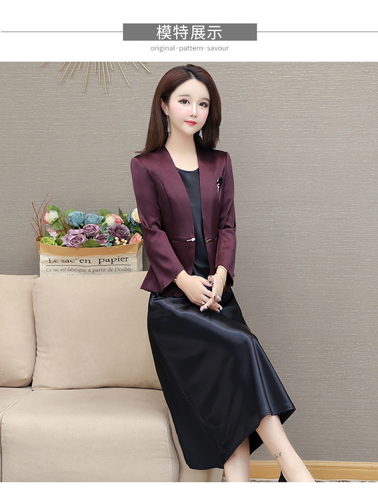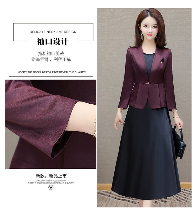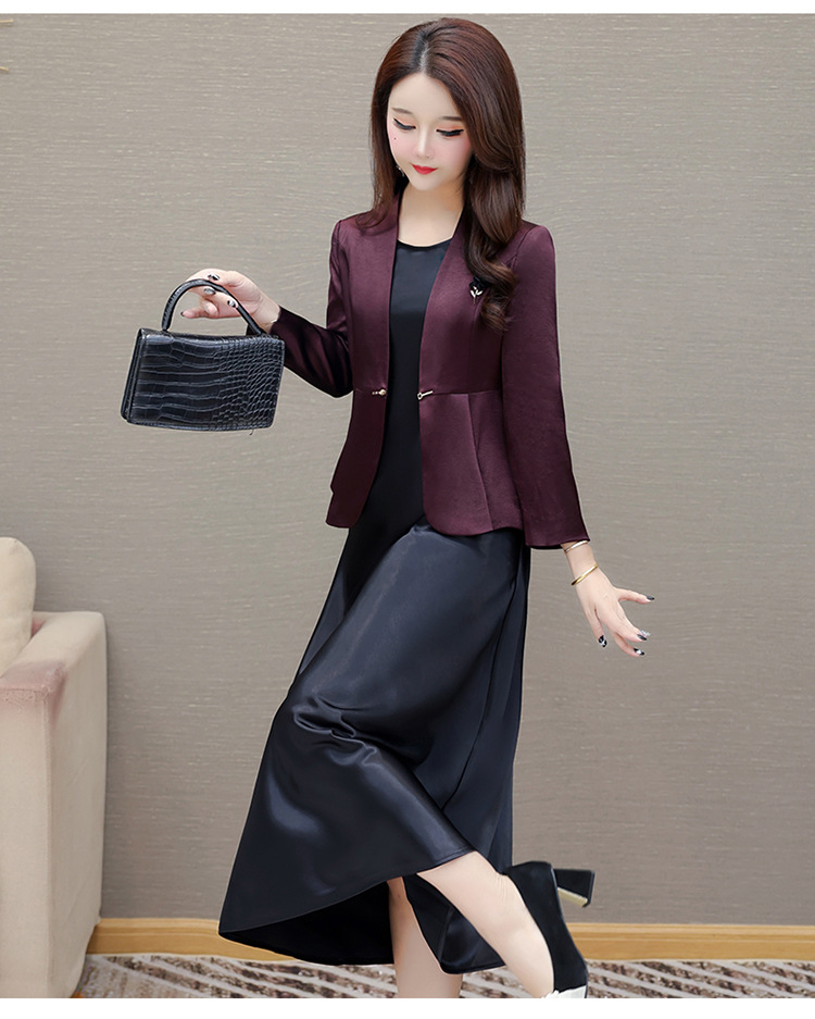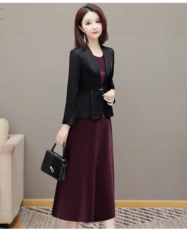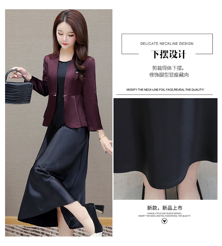 QYM SD58823-Y时尚短款西装外套+背心连衣裙套裙