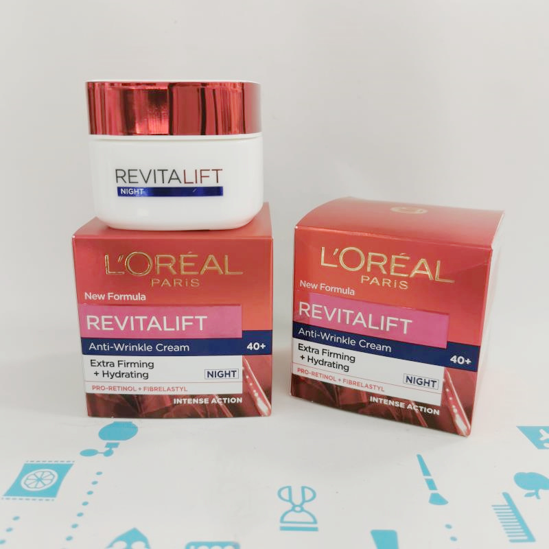 欧莱雅复颜抗皱晚霜50ml 👍修护白天🌞损伤 深层滋养肌肤🥛 。内含95%高纯度积雪草🌿凝萃、视黄醇PRO🧬、基层提拉素。水润嫩滑肌肤🥛, 轻薄☁️不易闷痘,充盈表皮层➿,平滑淡化细纹〰️,提拉紧致,注入修护精华✨,恢复肌肤弹力👌🏻。