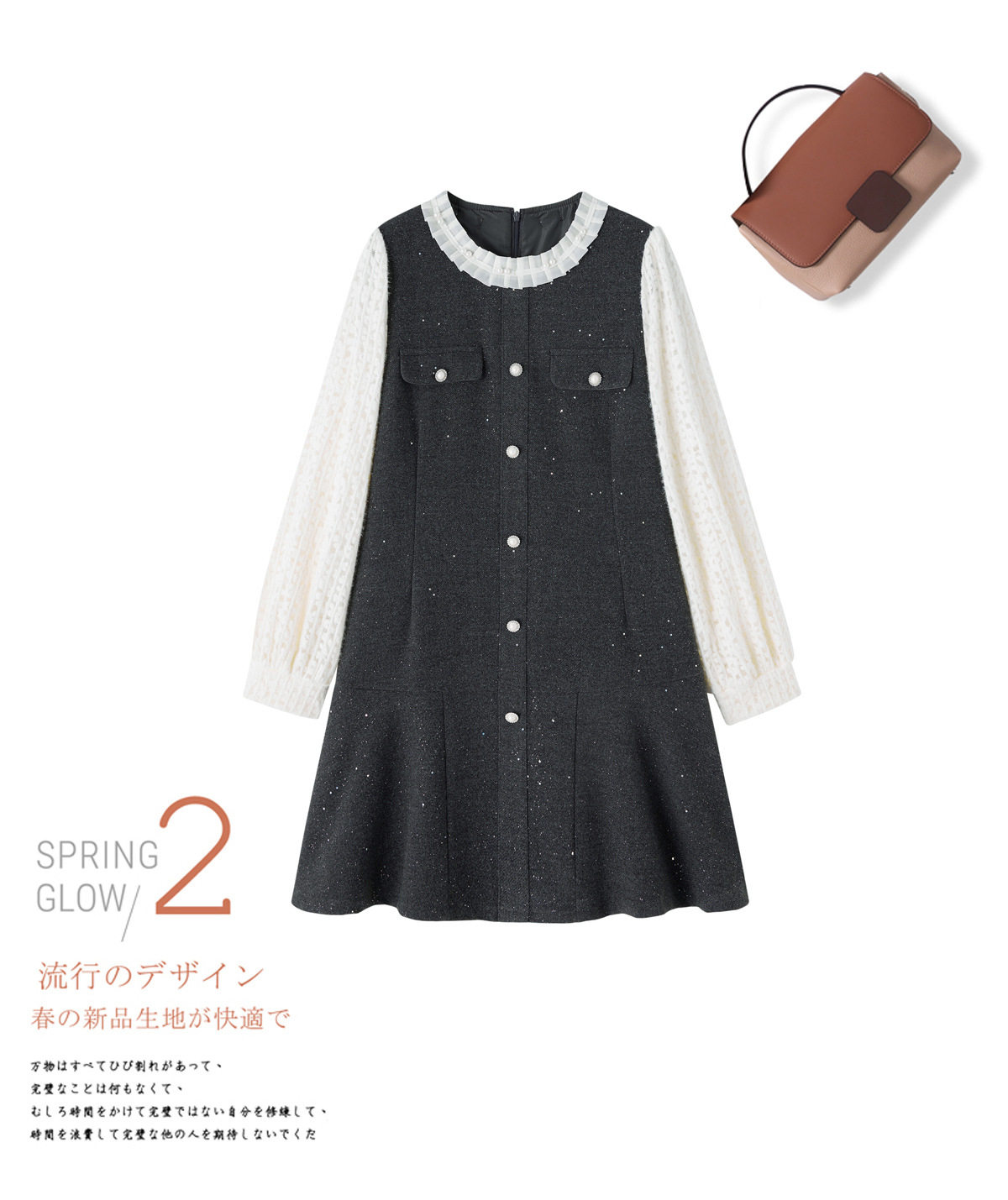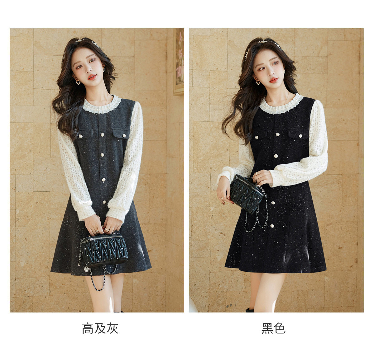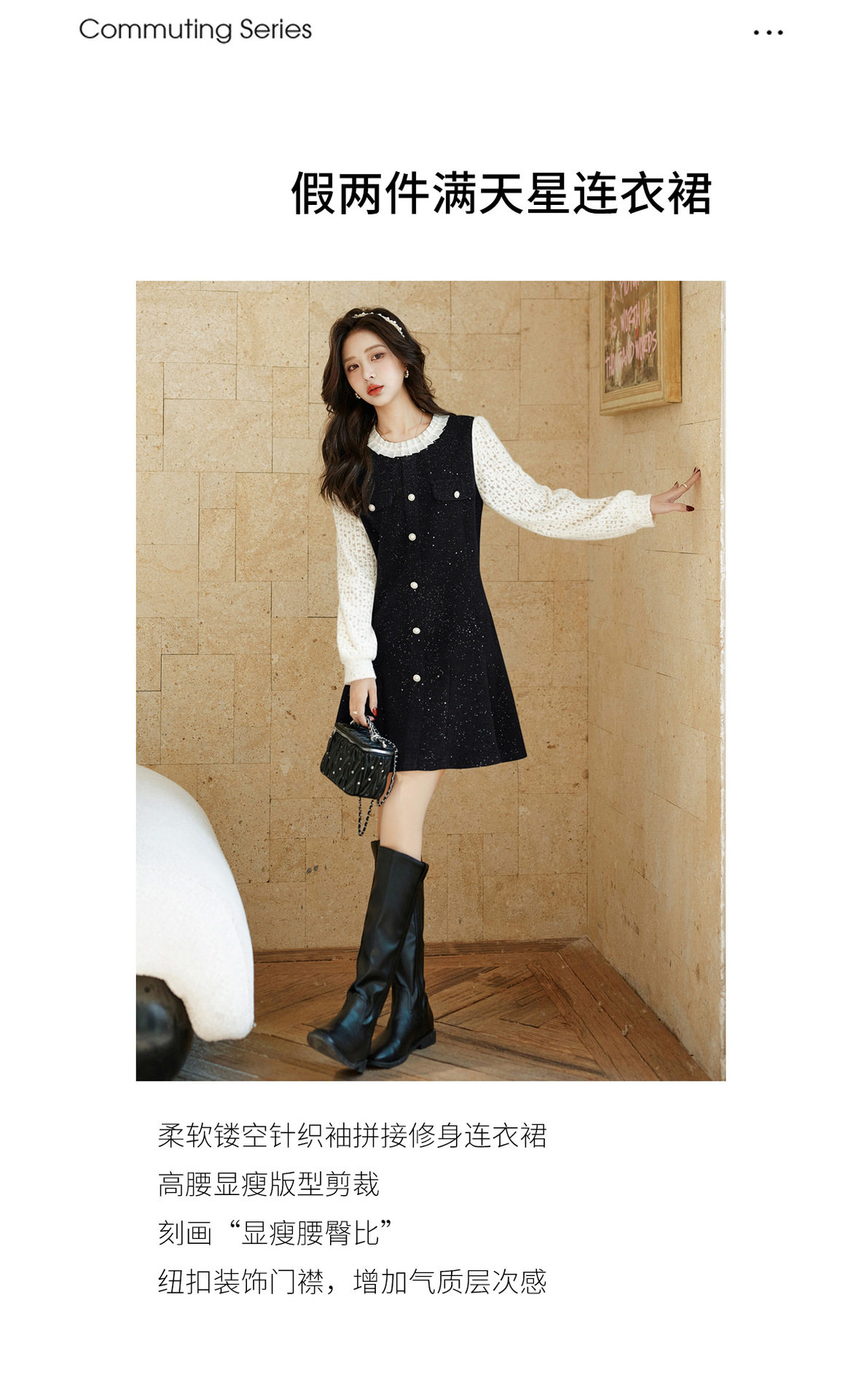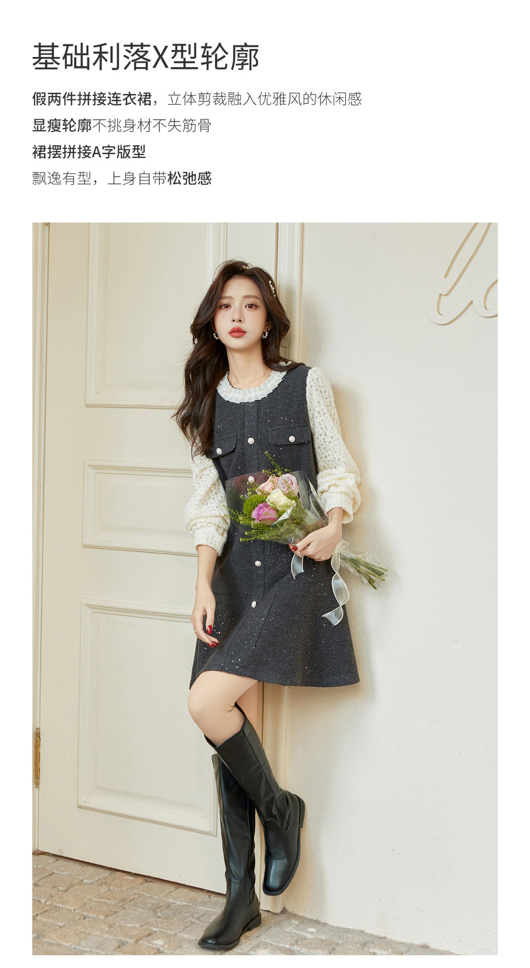 「自」全新升级【铂金会员293/天猫389/差价96】(50306)洛诗琳气质小香风拼接连衣裙2026春季新款中长款显瘦A字裙女