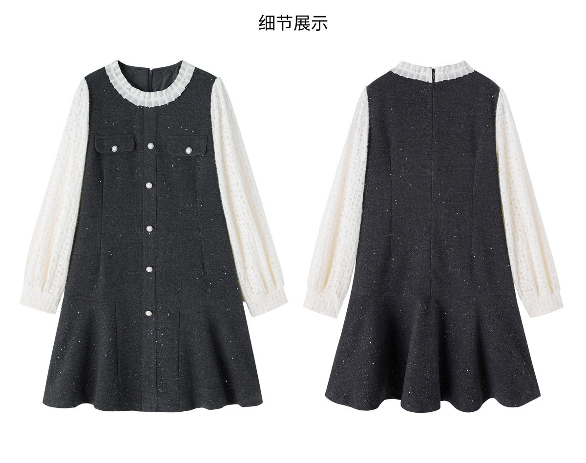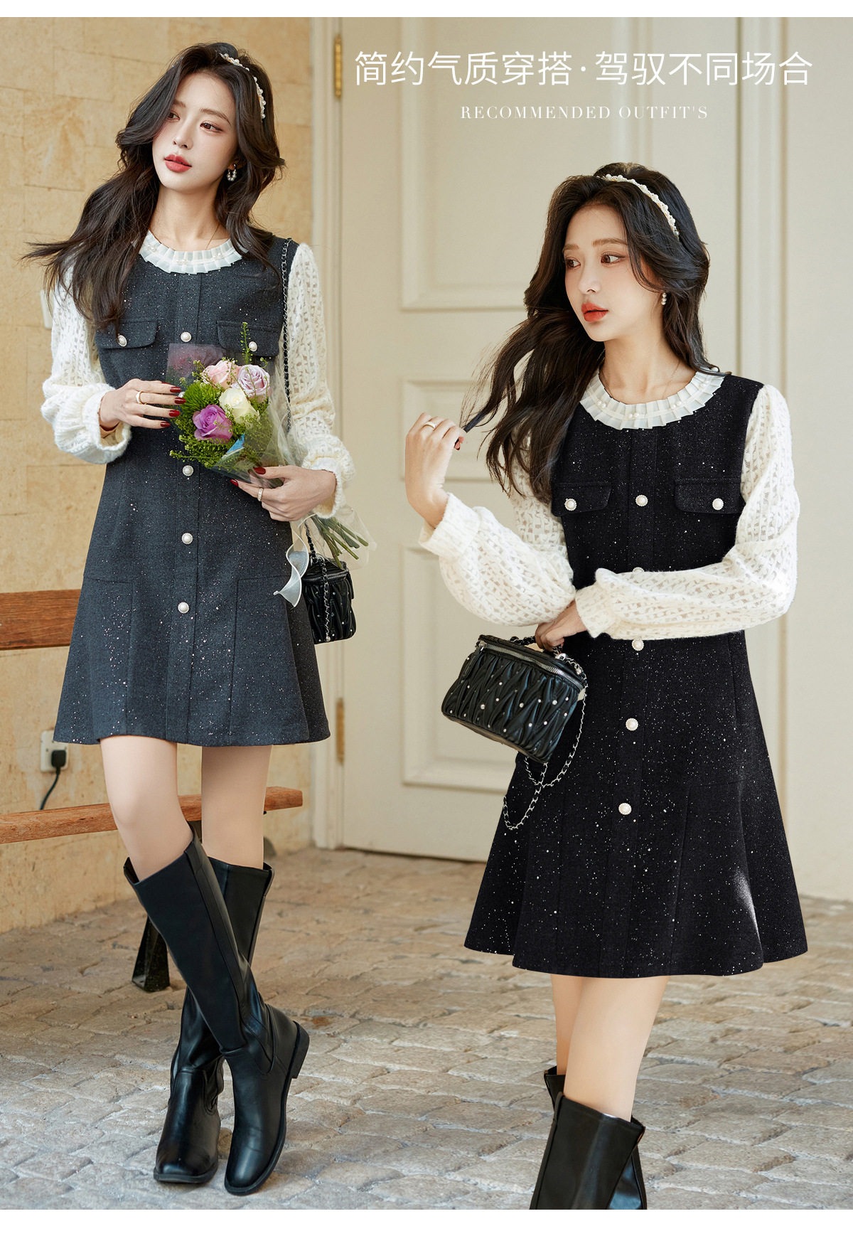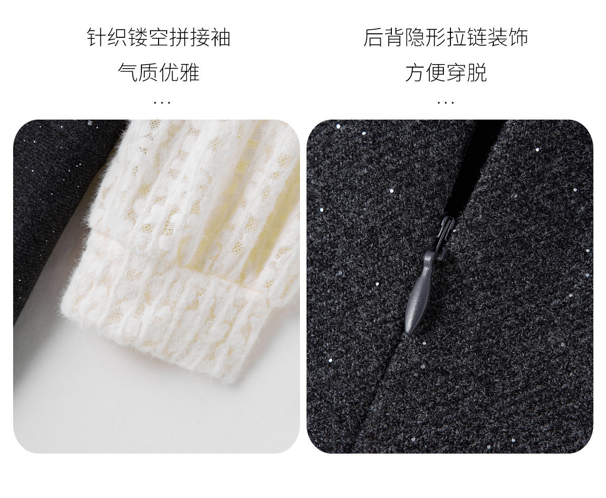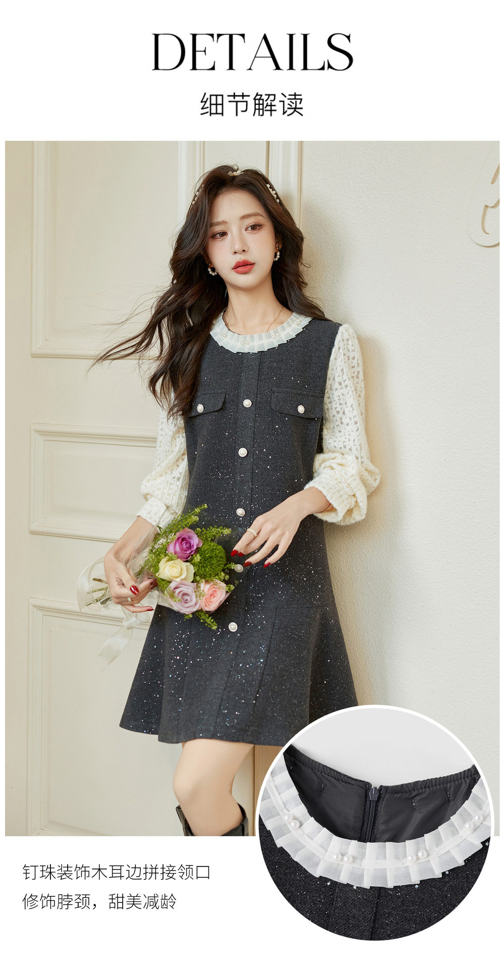 「自」全新升级【铂金会员293/天猫389/差价96】(50306)洛诗琳气质小香风拼接连衣裙2026春季新款中长款显瘦A字裙女