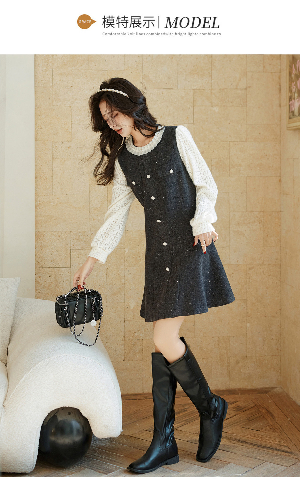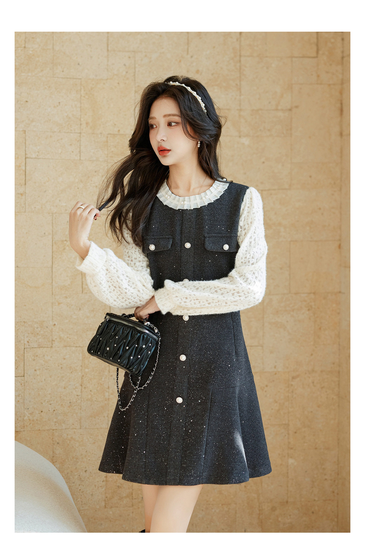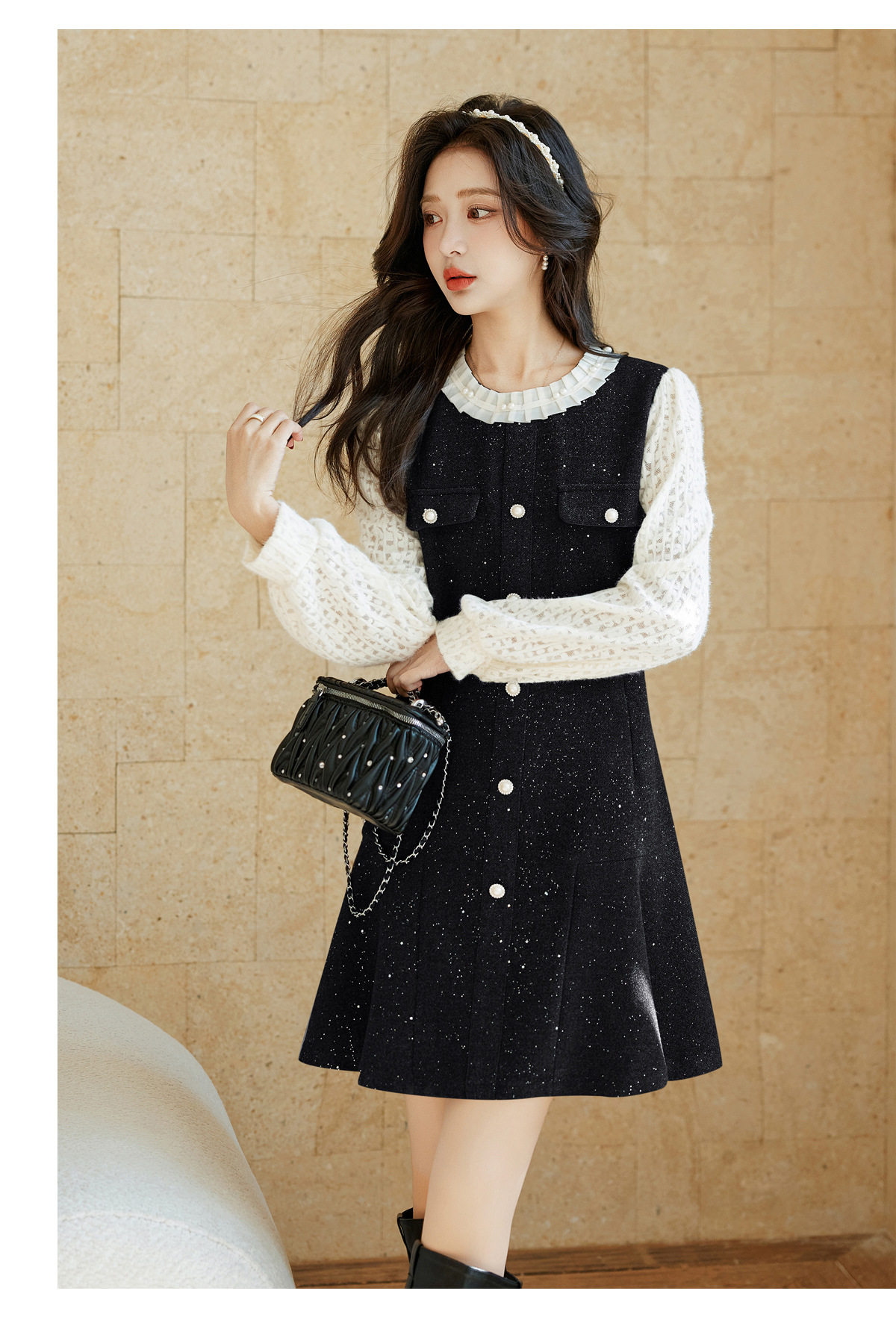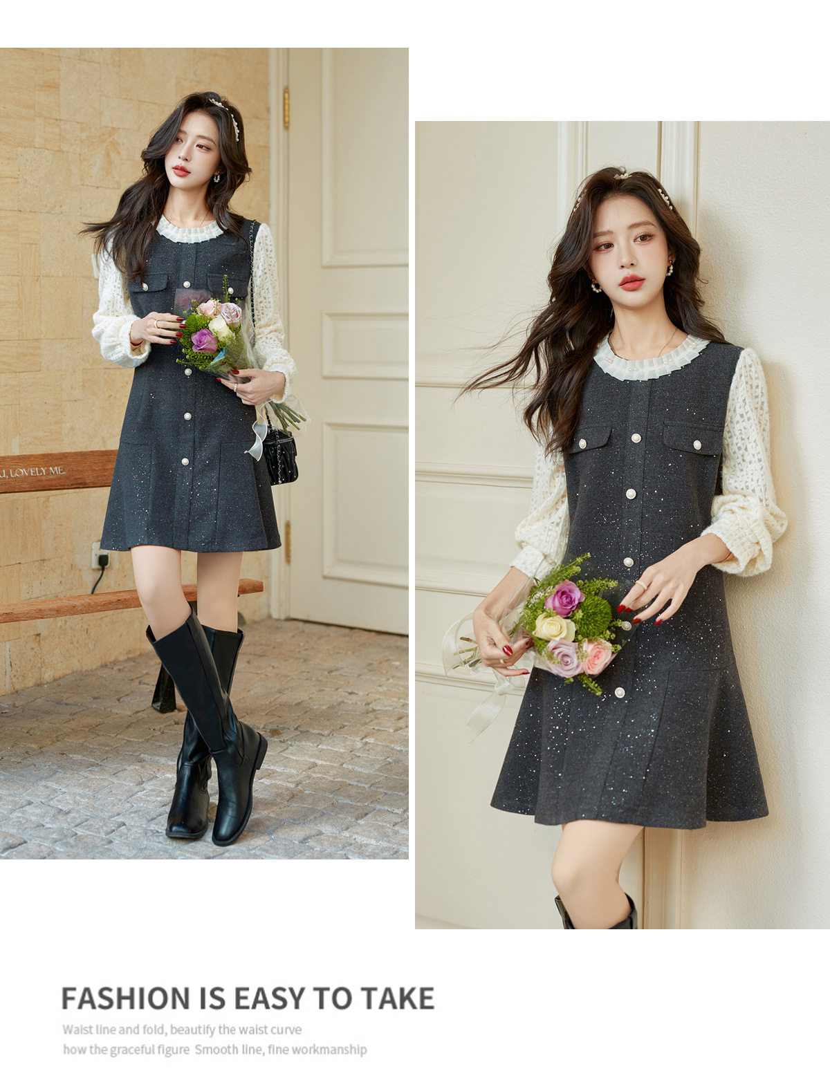 「自」全新升级【铂金会员293/天猫389/差价96】(50306)洛诗琳气质小香风拼接连衣裙2026春季新款中长款显瘦A字裙女