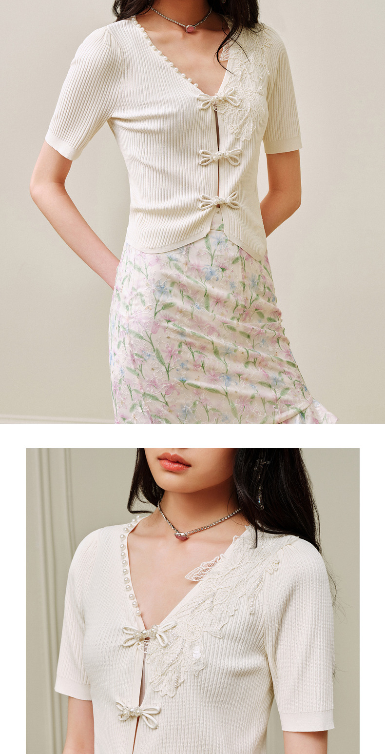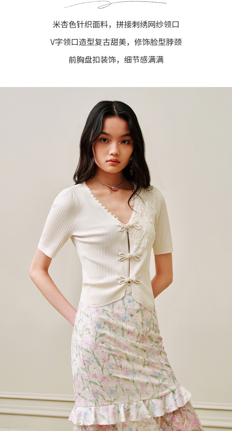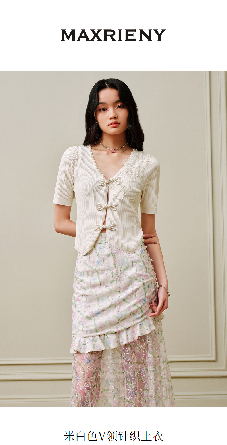 【商场同款】MAXRIENY摩登新中式盘扣套头针织衫V领开衫上衣小衫(货号:MC88JA263)