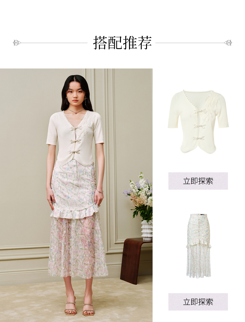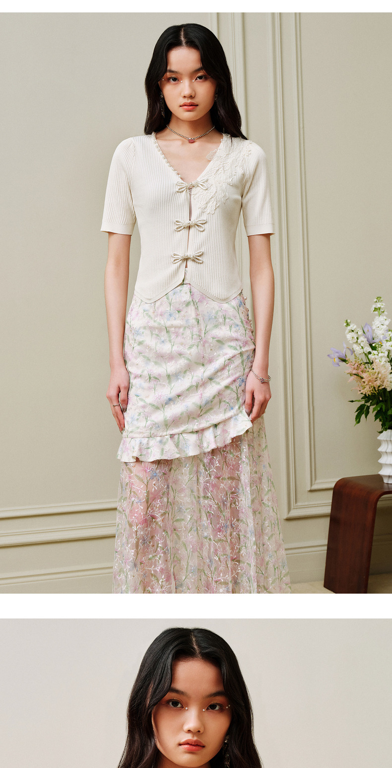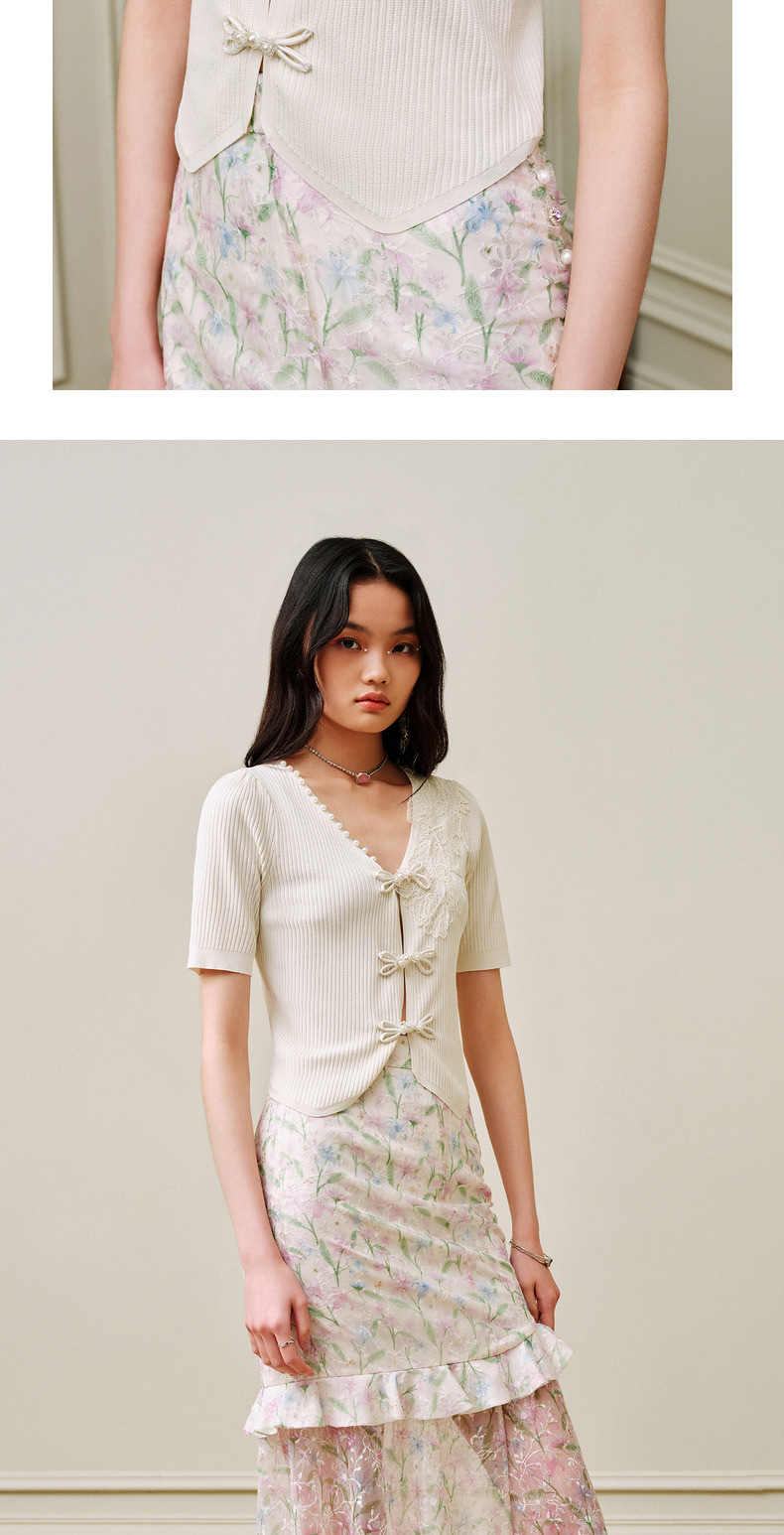 【商场同款】MAXRIENY摩登新中式盘扣套头针织衫V领开衫上衣小衫(货号:MC88JA263)