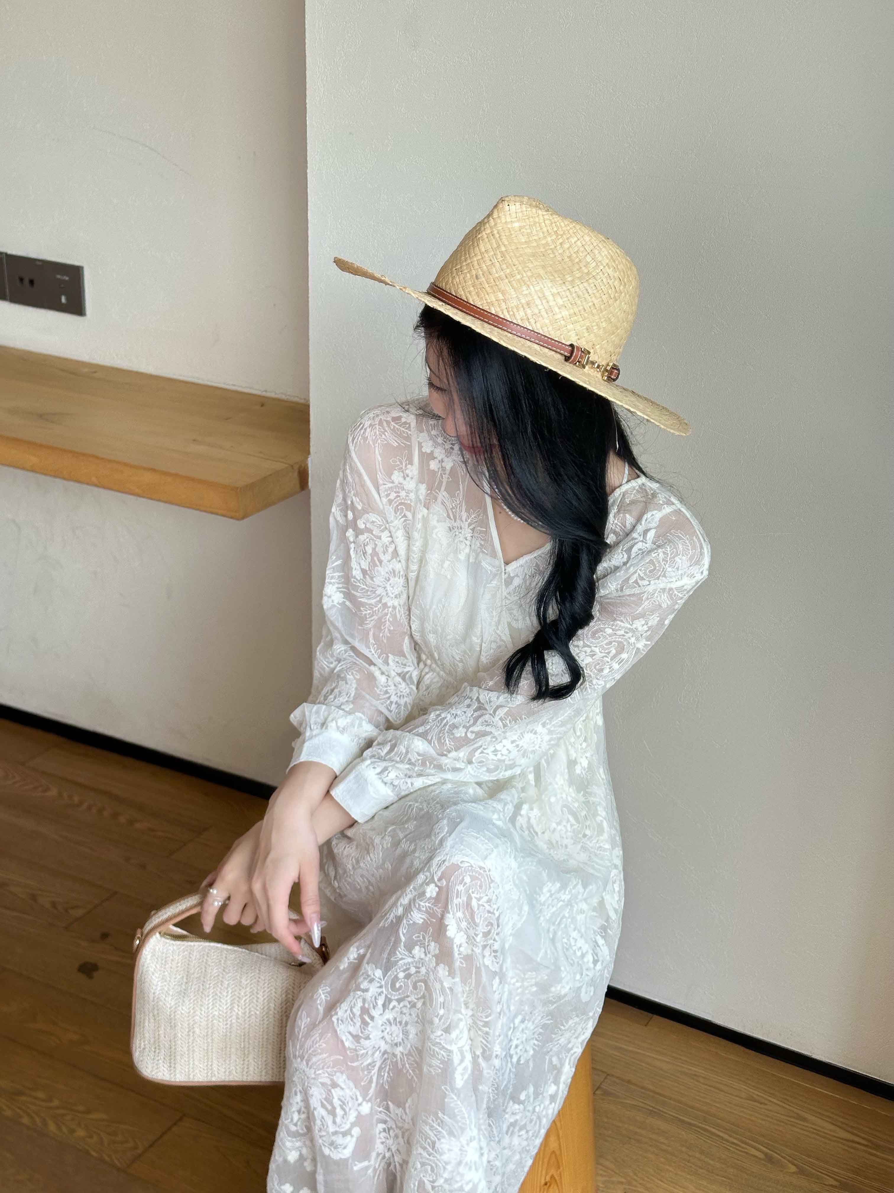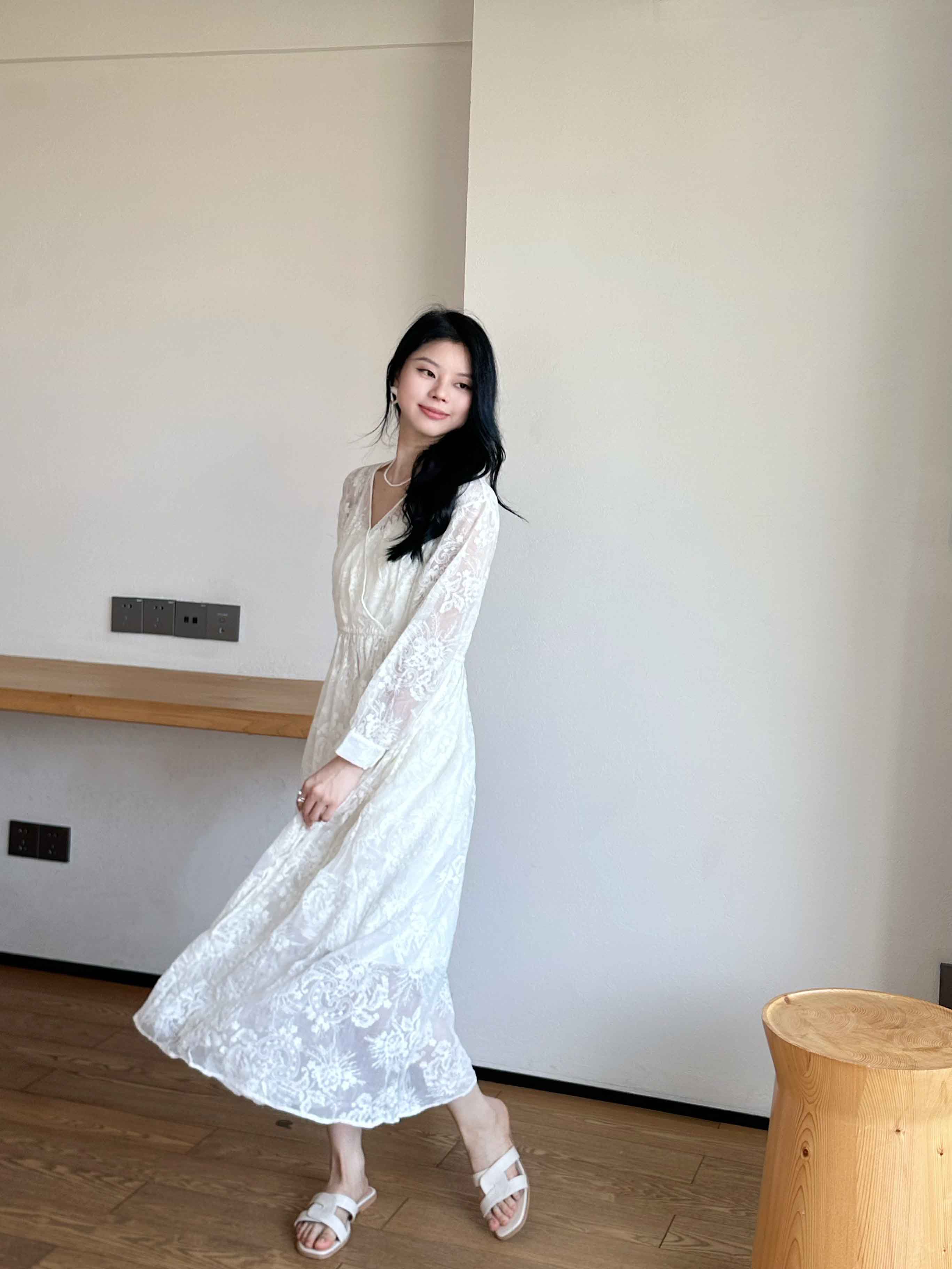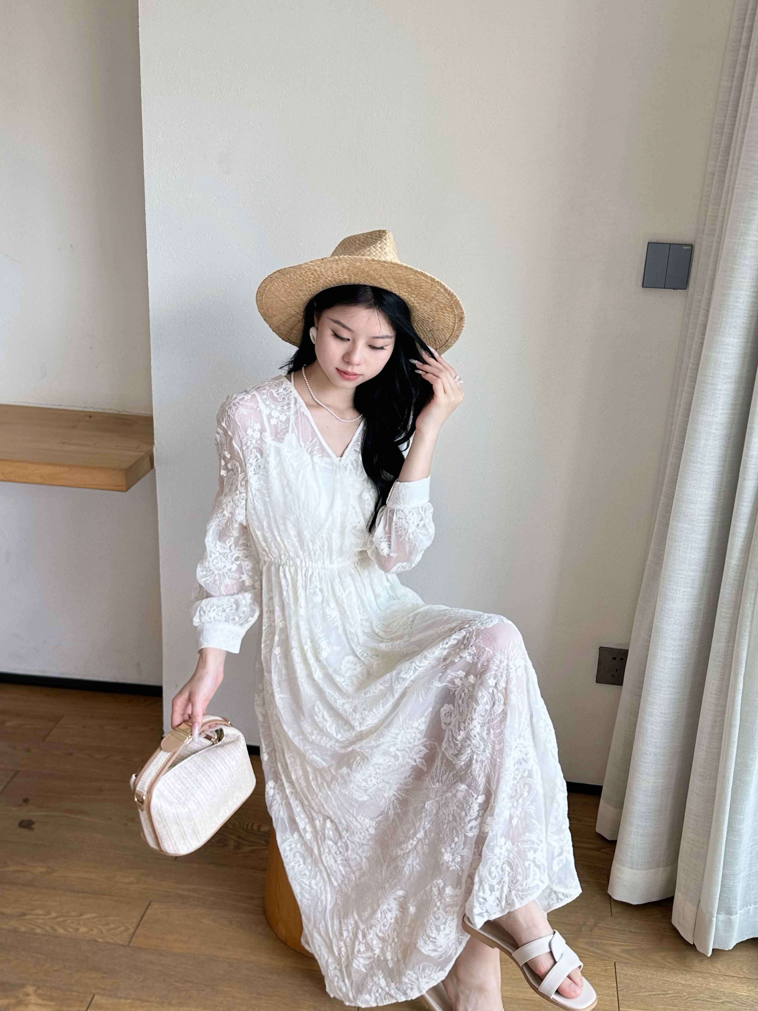 顺丰包邮03839洛诗琳春夏新款重工刺绣气质V领收腰真丝连衣裙0267