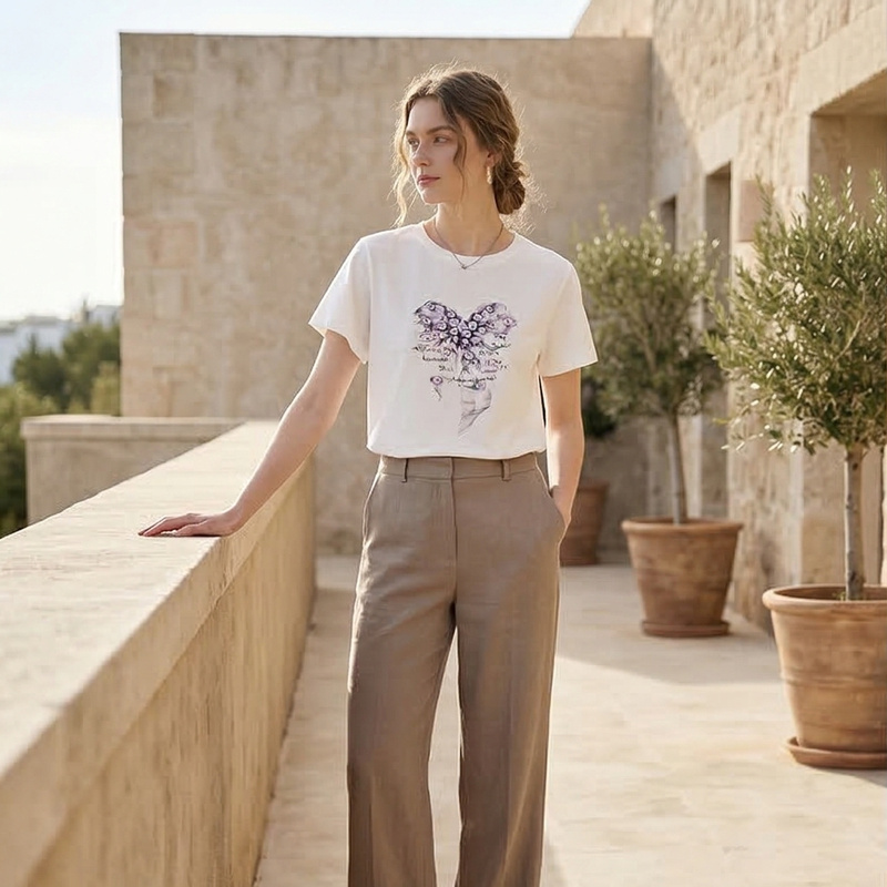 PALUOPO/PL基础百搭圆领日常简约含桑蚕丝短袖上衣女式T恤ES2F1202Z