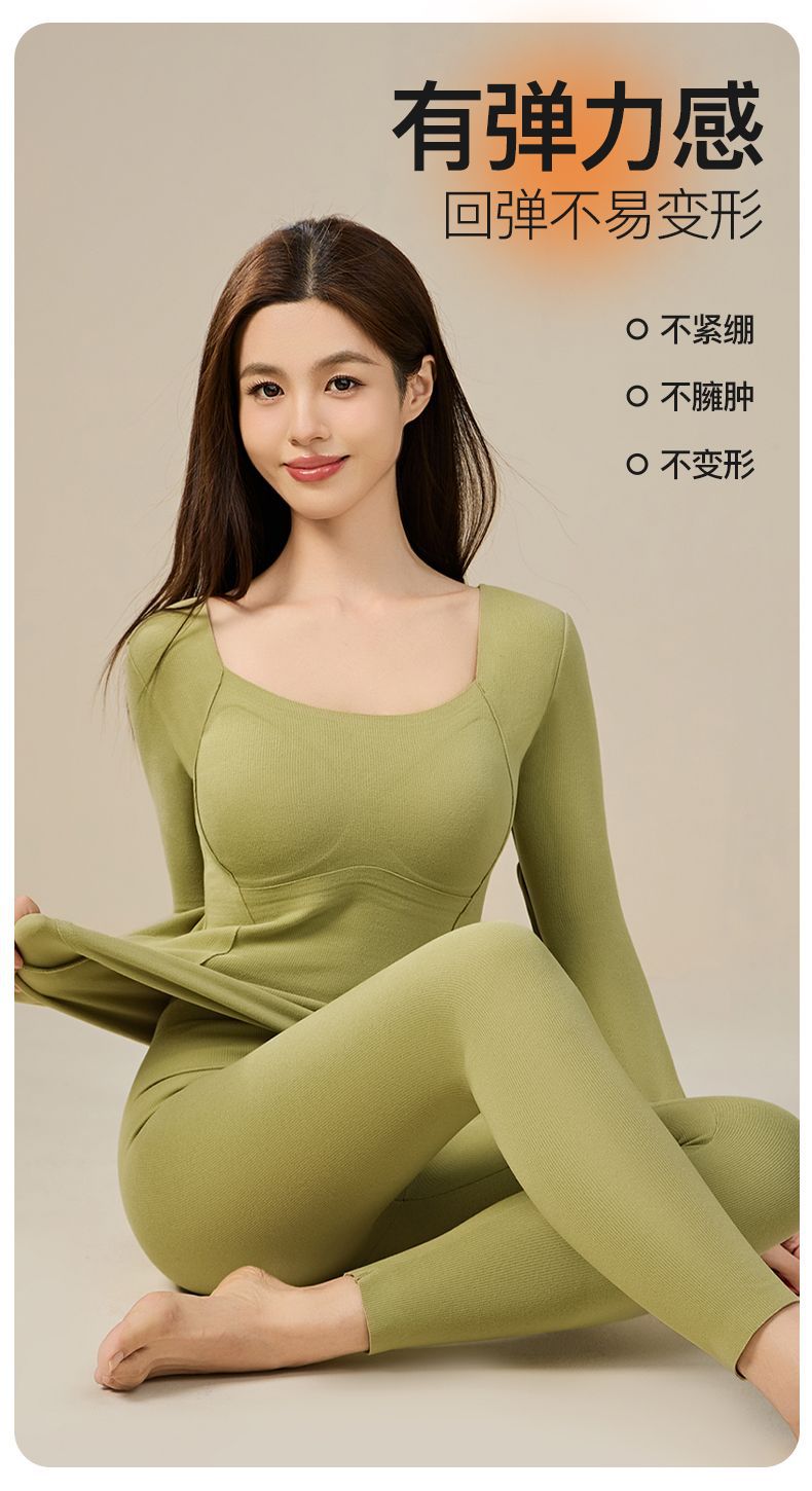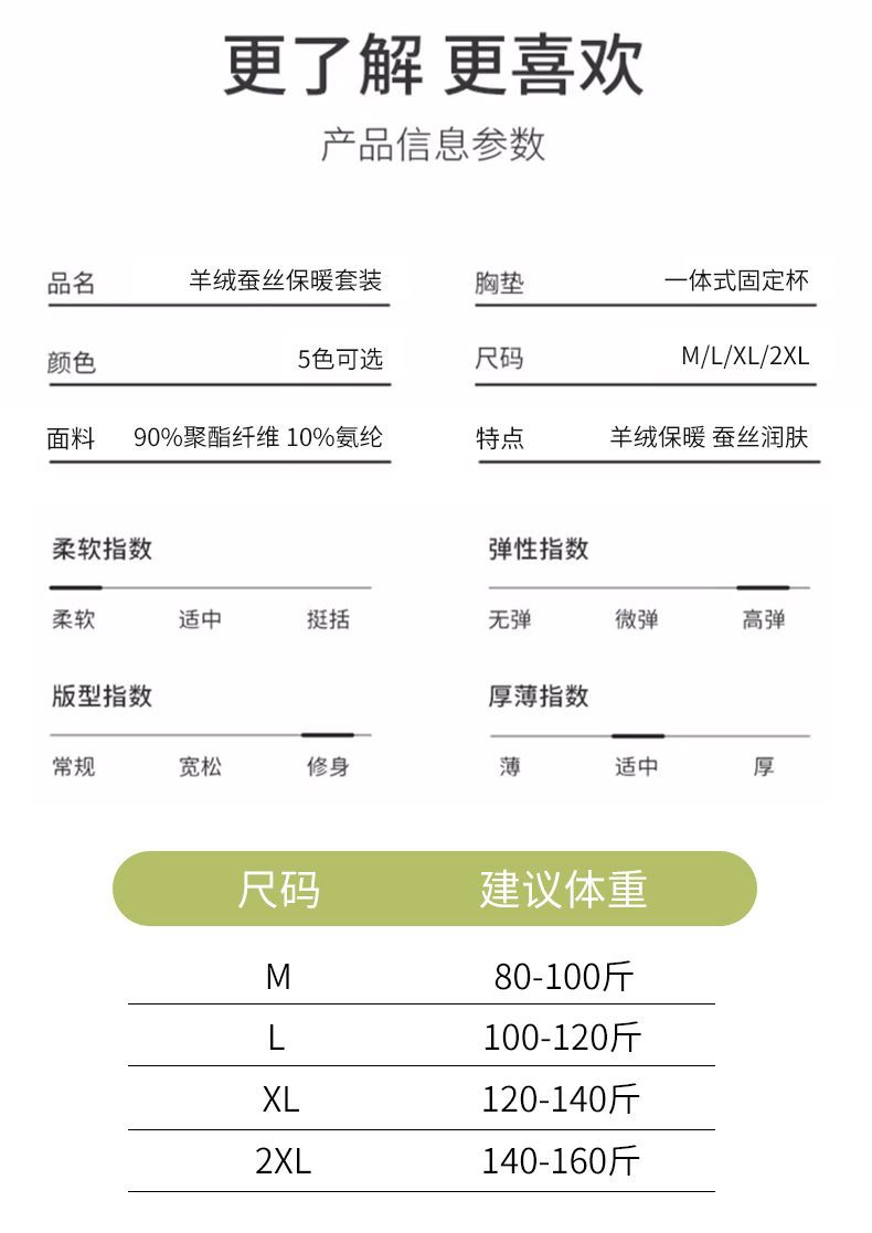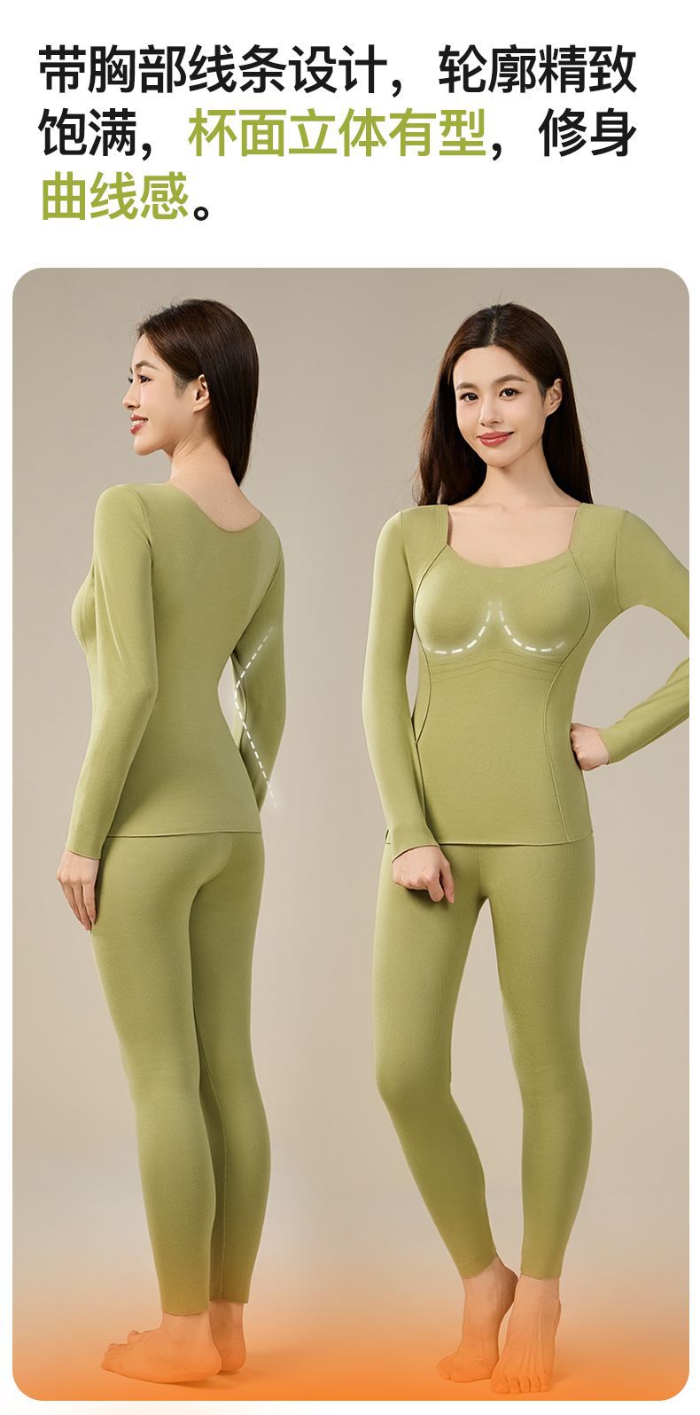 丁摩 羊毛蚕丝发热保暖内衣女士套装加绒加厚免穿文胸塑身打底秋衣秋裤5ZF-5270