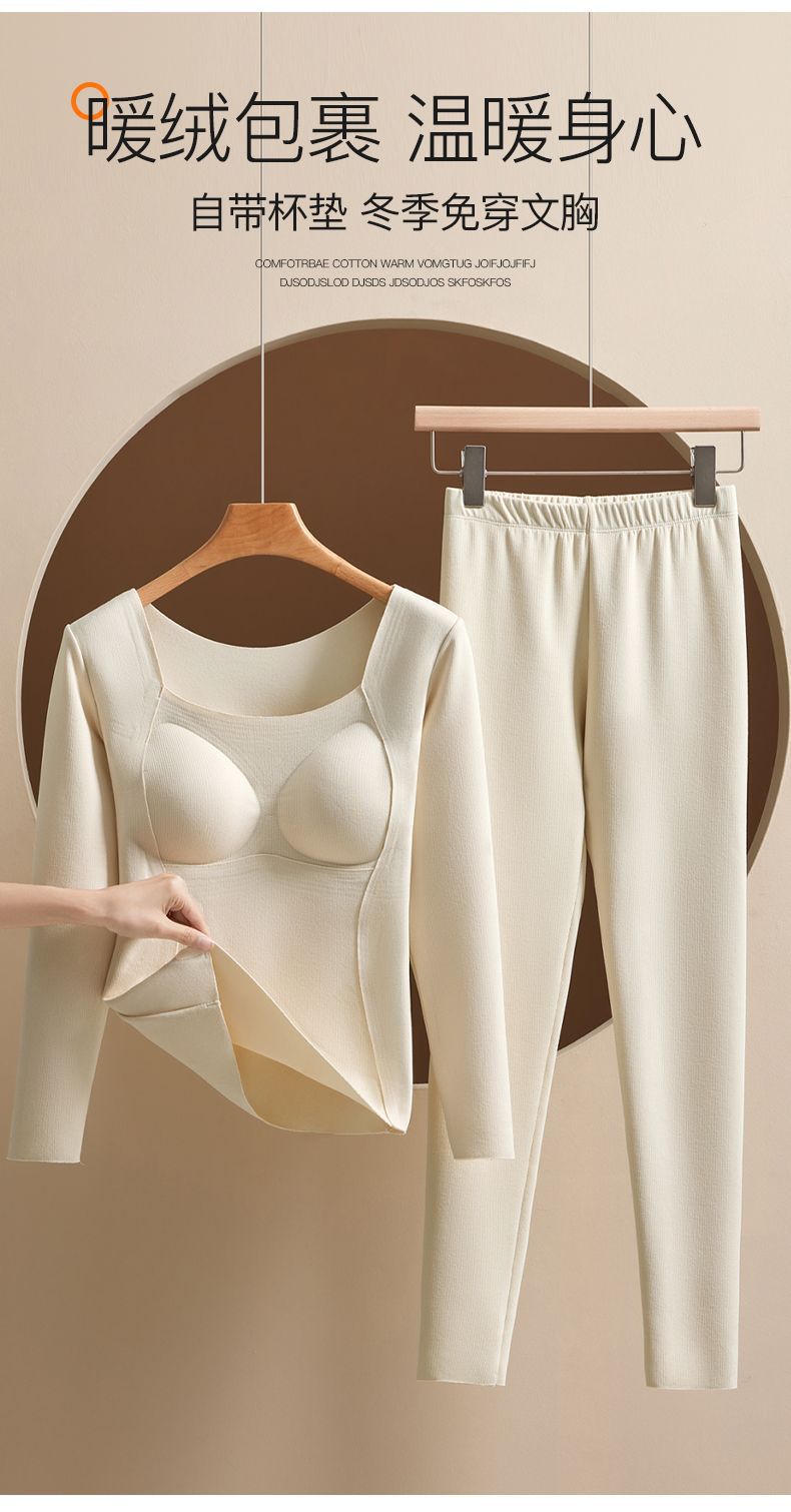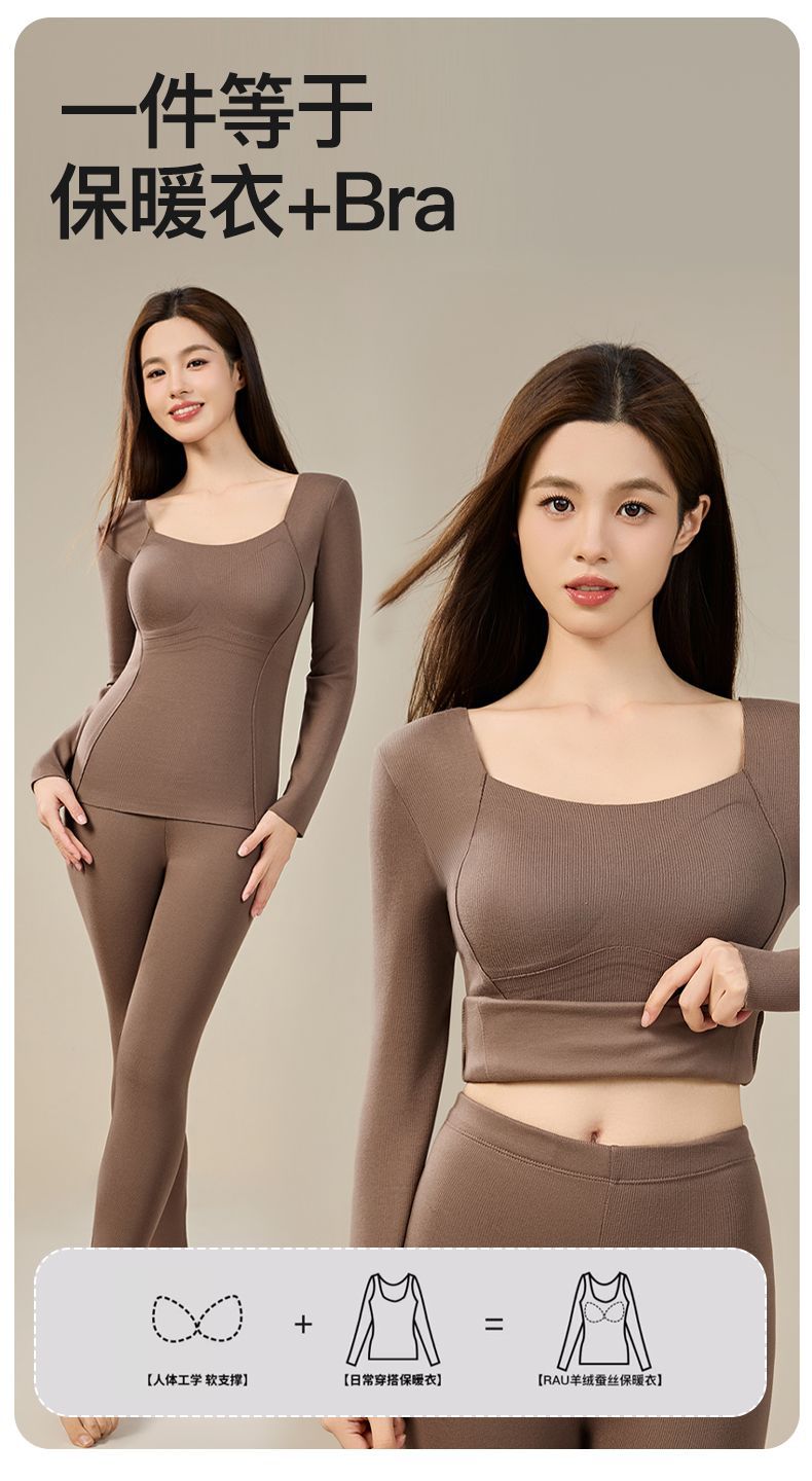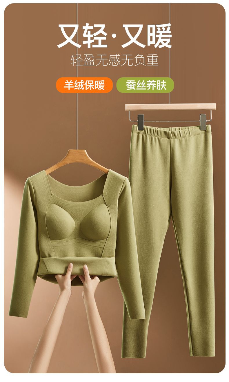丁摩 羊毛蚕丝发热保暖内衣女士套装加绒加厚免穿文胸塑身打底秋衣秋裤5ZF-5270