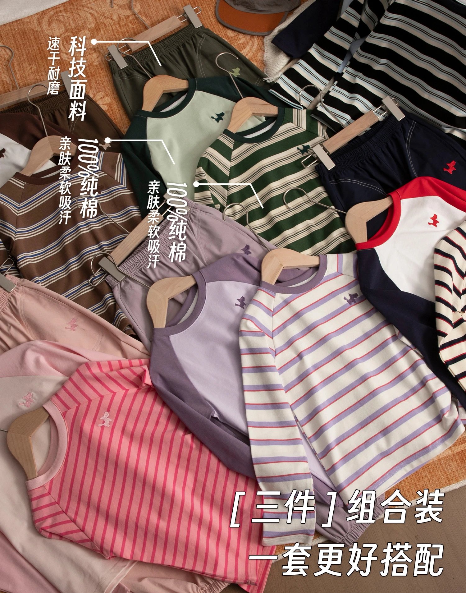 【秒杀】AIWAYYOYI联名韩国小狗品牌系列款 到手3件【儿童净版T恤+儿童条纹T恤 +儿童0压重长裤 】