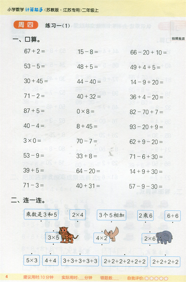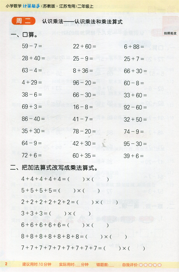 2025秋 小学数学计算能手2上 含答案 通城学典 小学二年级上册 口算估算笔算 苏教版 江苏专用 强化训练练习题