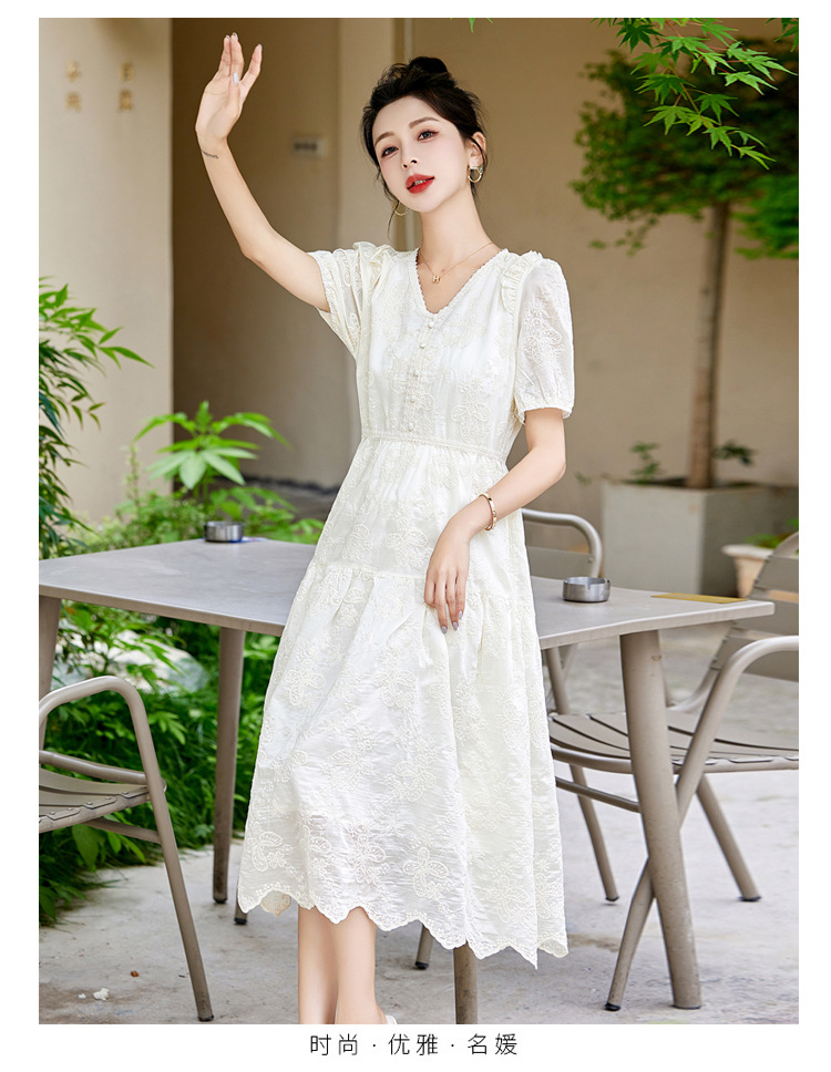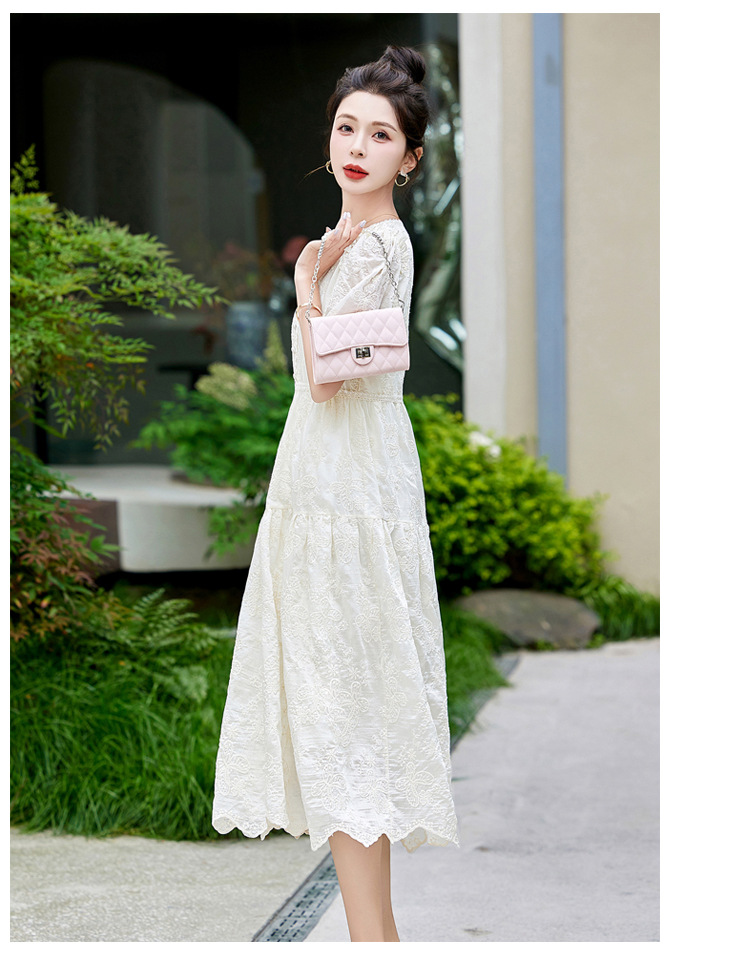 白色蕾丝连衣裙,复古气质温柔收腰长裙HR-QIXFS2429L