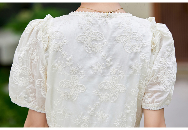新中式半高领短袖小衫,网纱提花T恤LA43907