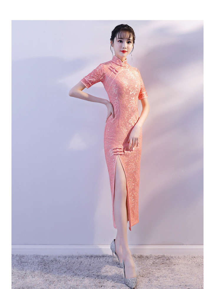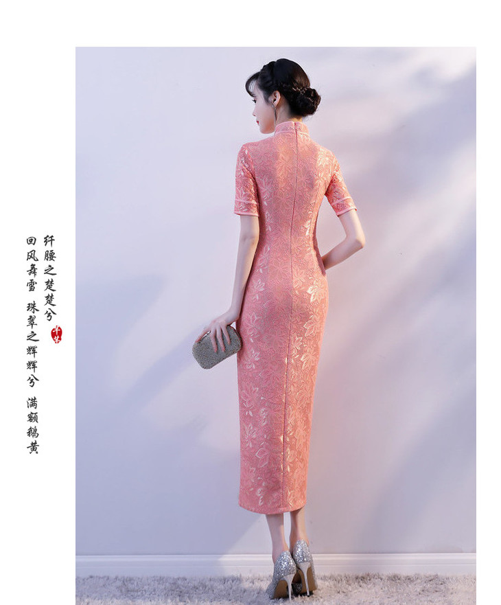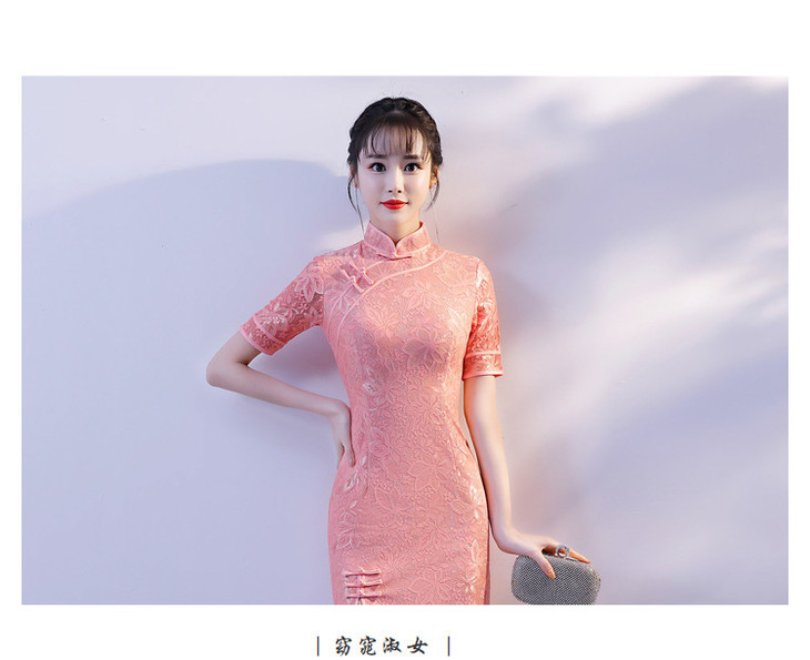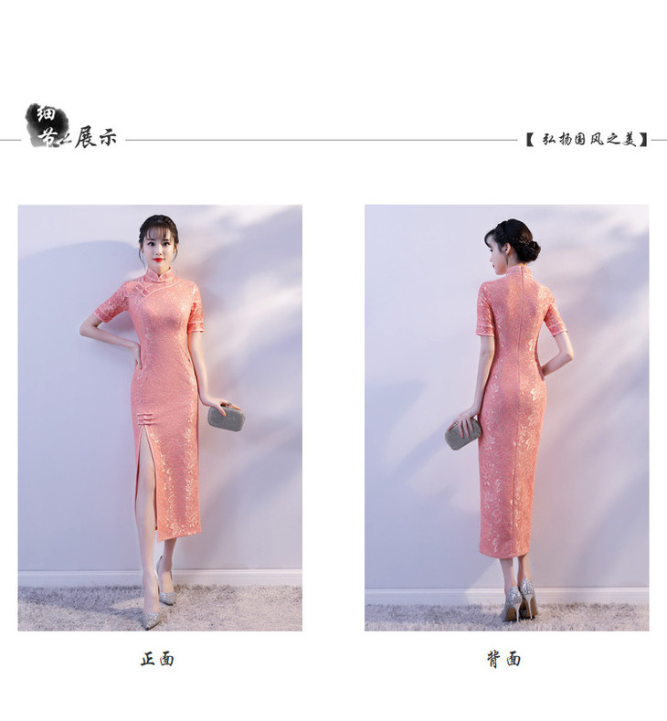 YM-83205改良时尚,蕾丝前开叉旗袍裙