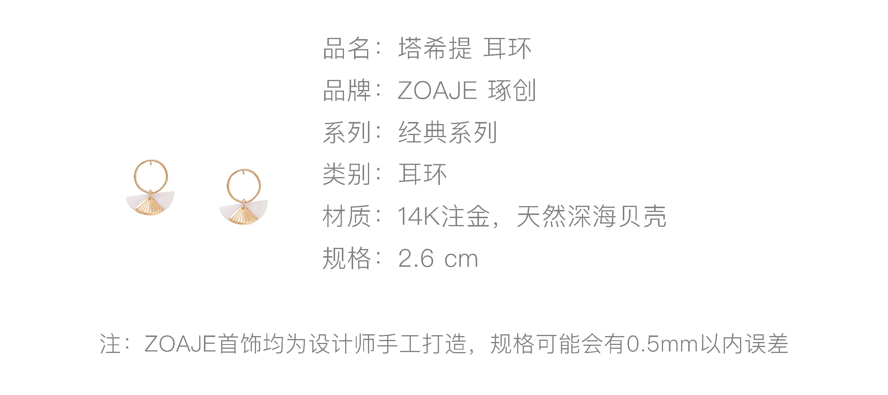 ZOAJE TIMELESS系列半月形珍珠母贝耳环/项链TAHITI
