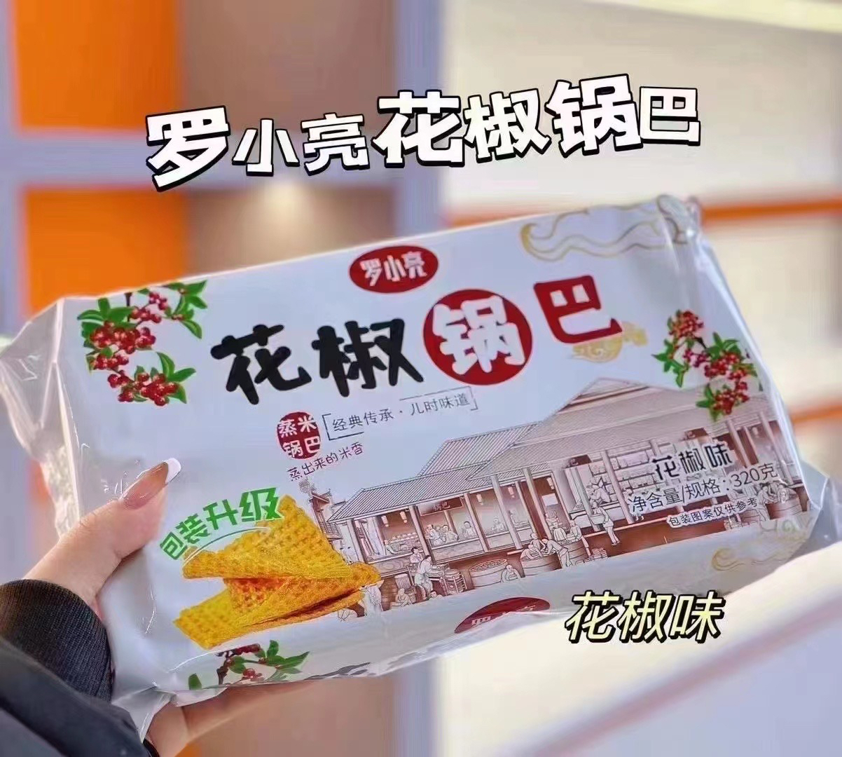 罗小亮辣条味锅巴!这是什么神仙小零食,锅巴是大片的还很脆,微微麻,非常香!难得的是不会过咸,满满当当一大盒,吃起来还一点不油腻[色]一盒 还有花椒,孜然口味【不好吃管退哈】