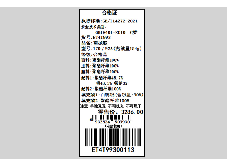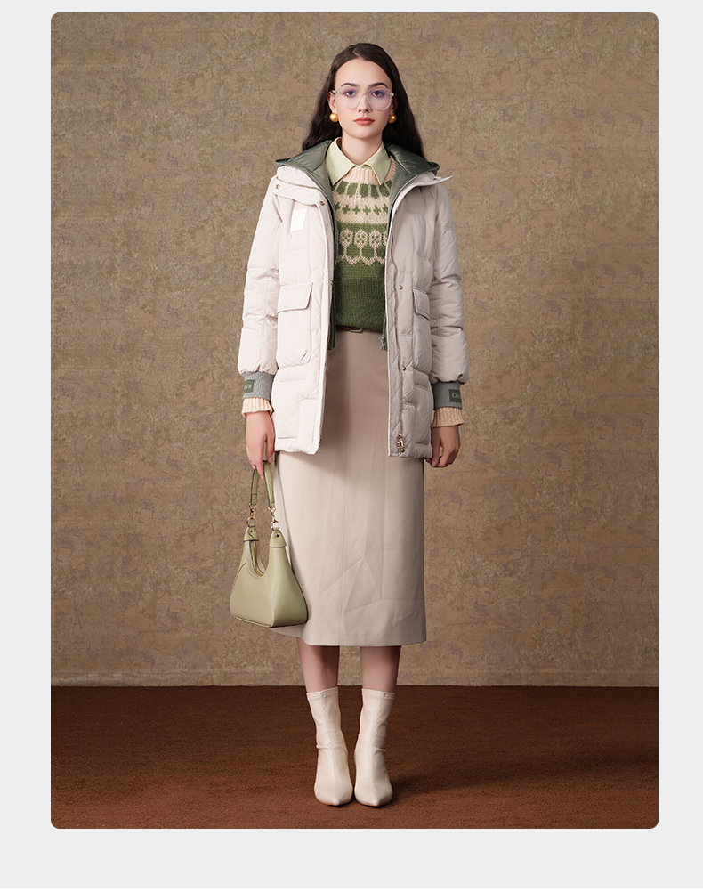 乔万尼白鸭绒羽绒服假两件撞色设计ET4T993
