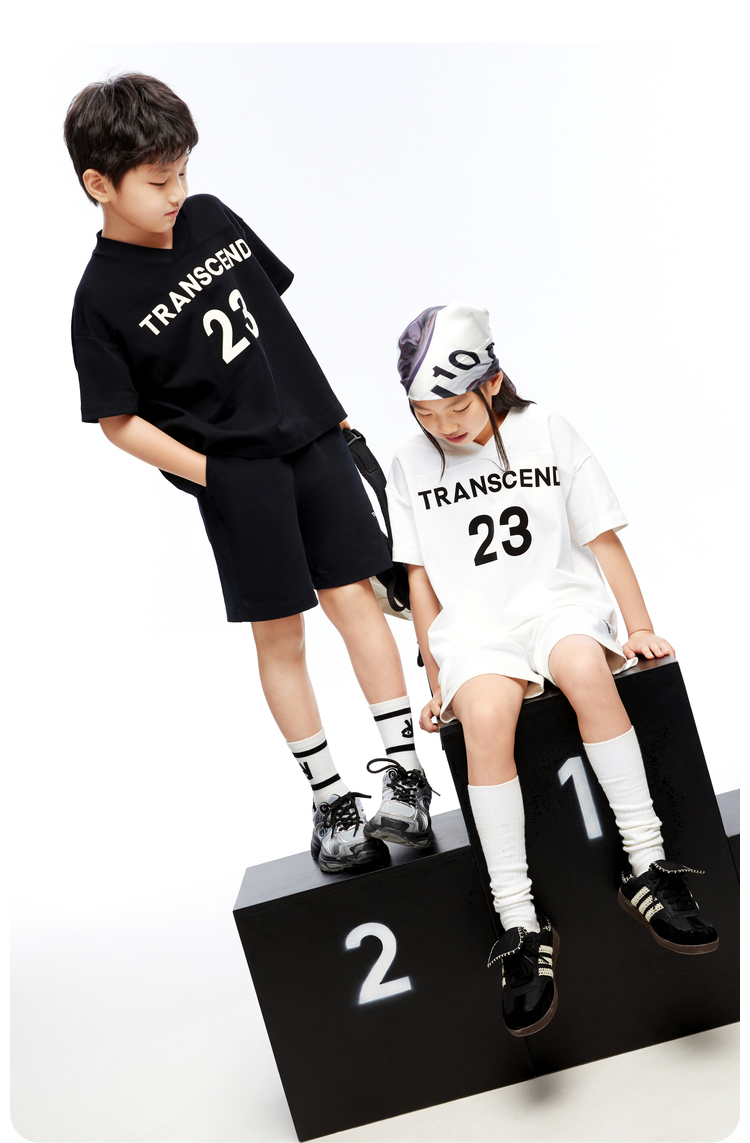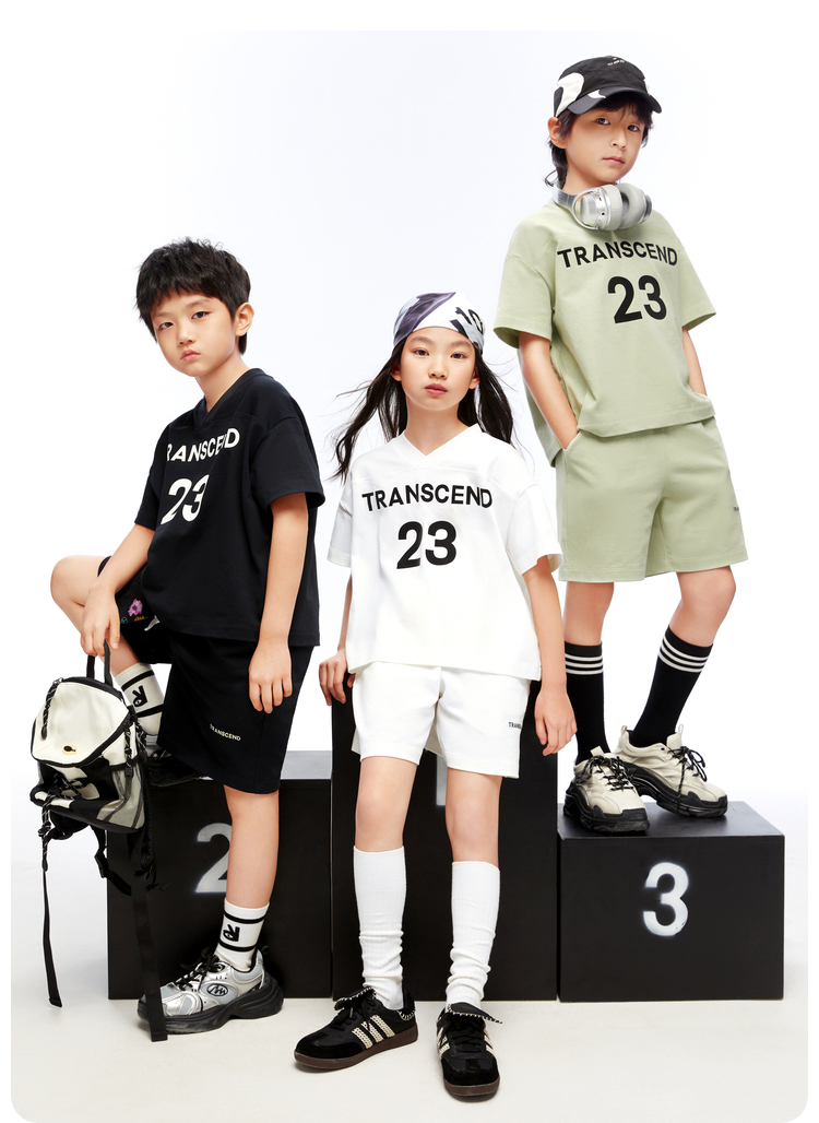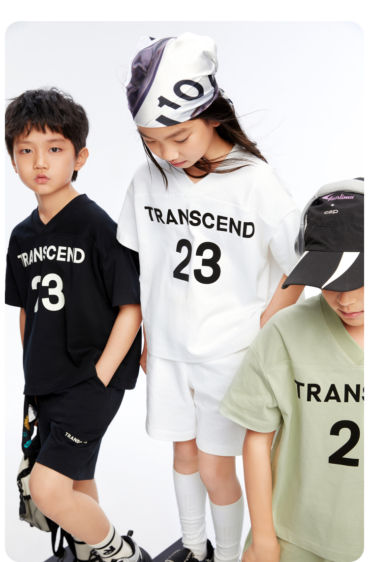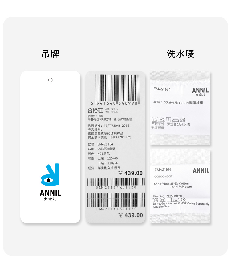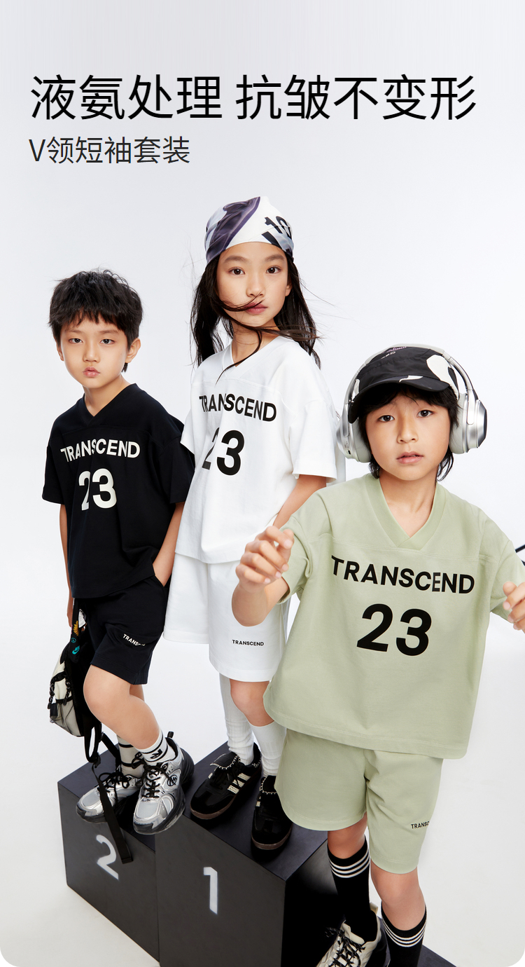 男女童光感液氨V领短袖套装夏季新款安奈儿童装EM421164