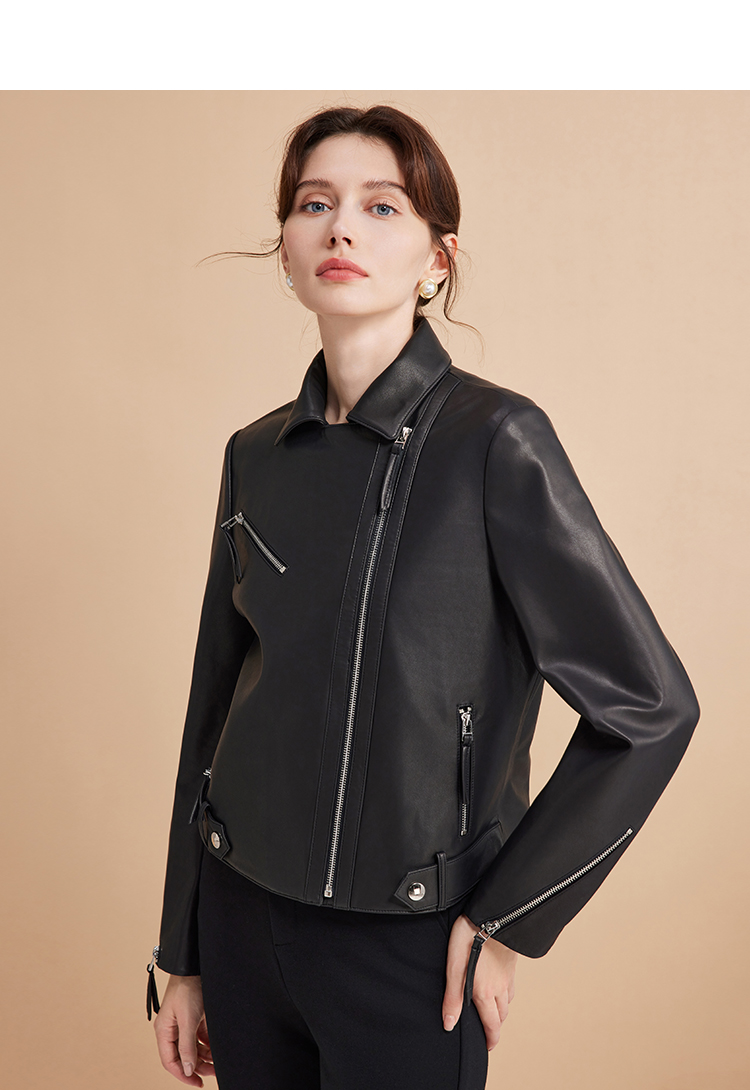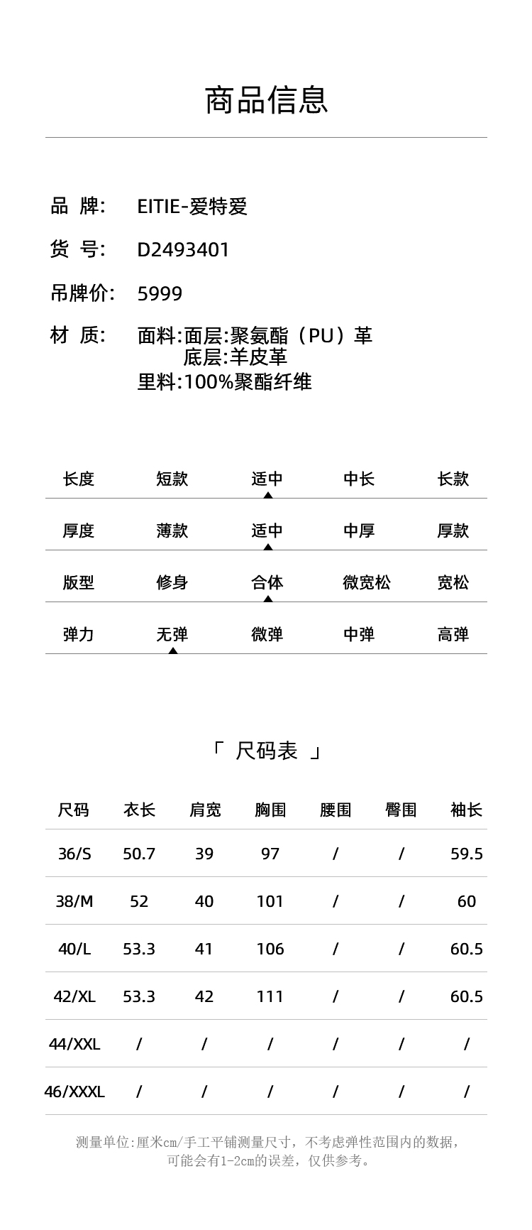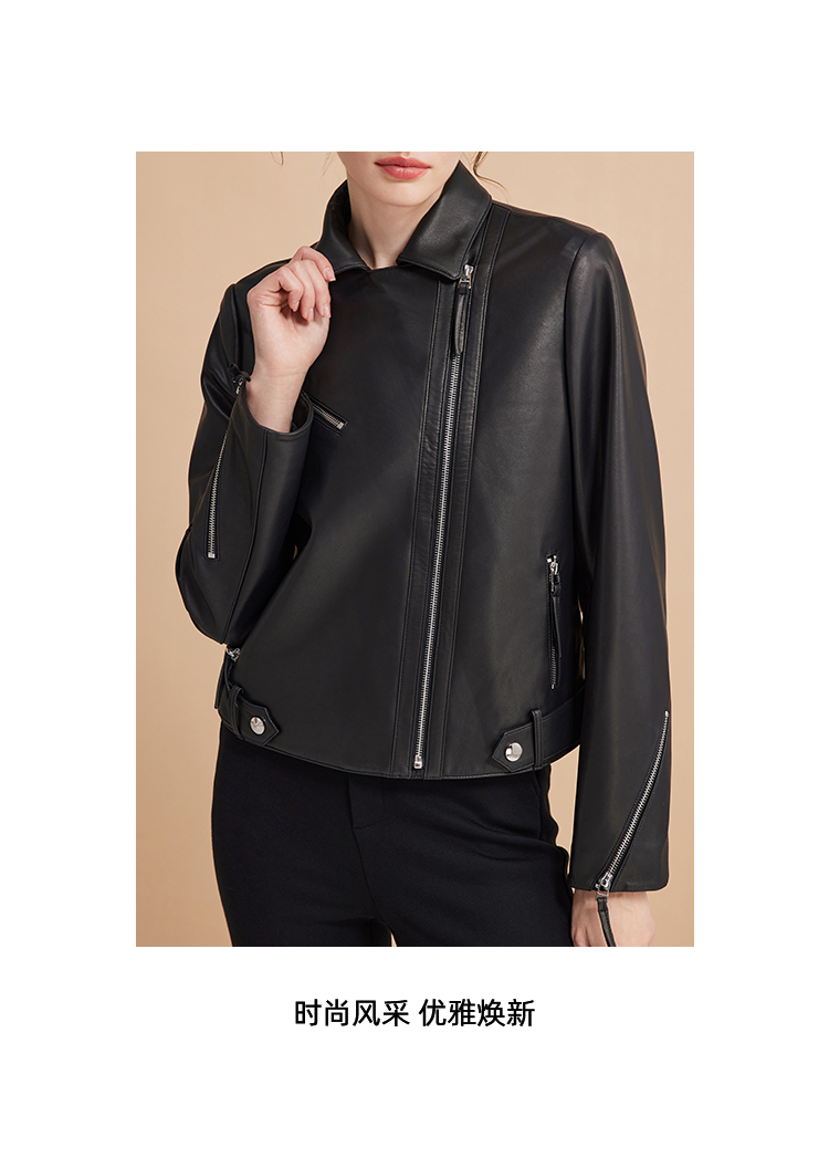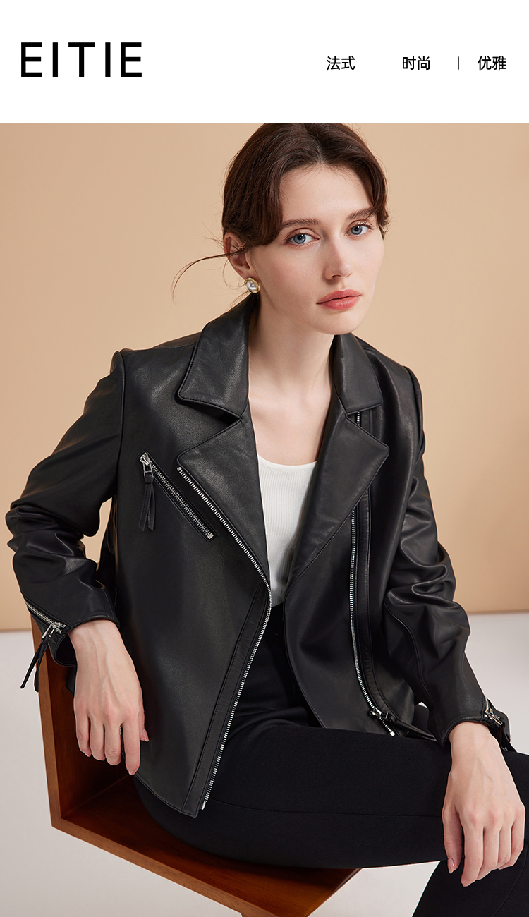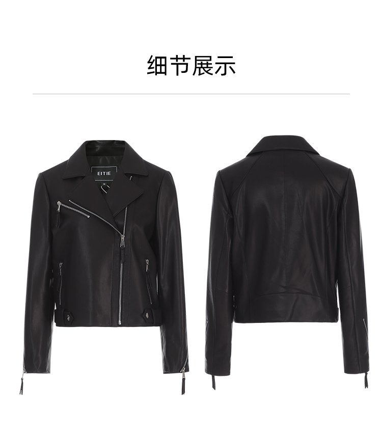 EITIE爱特爱冬季新款帅气翻领修身显瘦百搭短款纯色皮衣外套D2493401