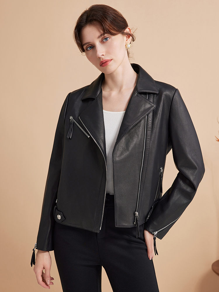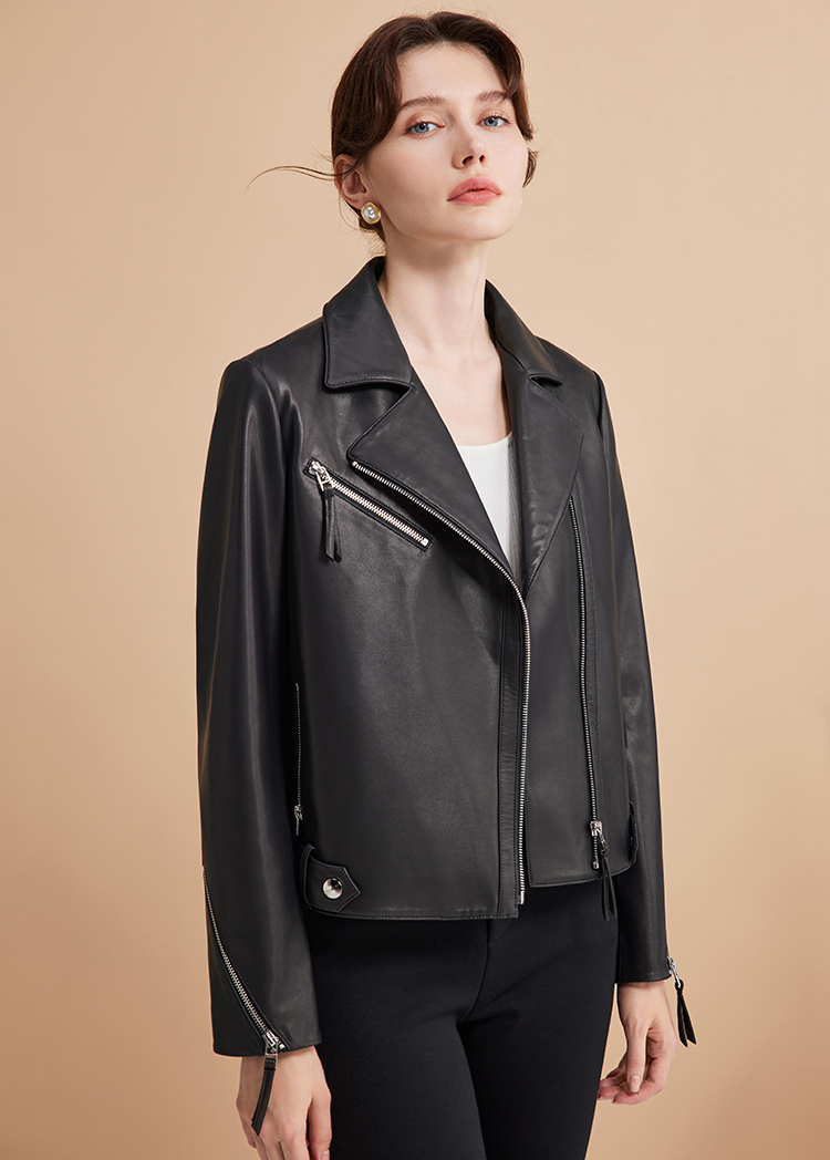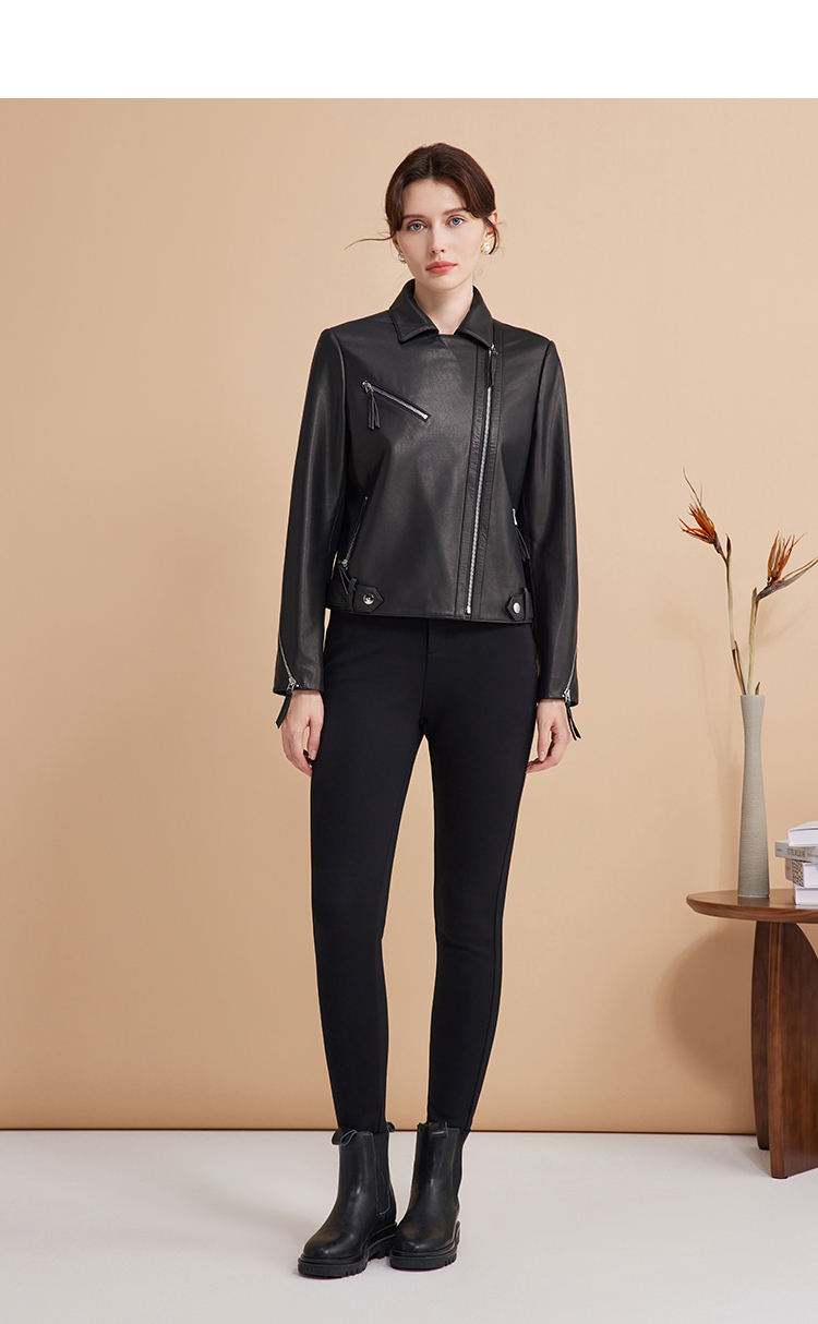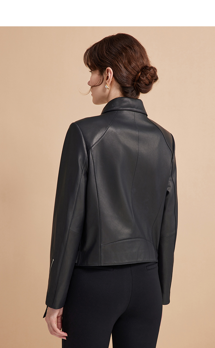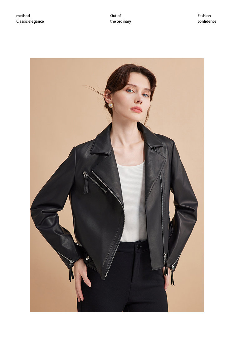 EITIE爱特爱冬季新款帅气翻领修身显瘦百搭短款纯色皮衣外套D2493401