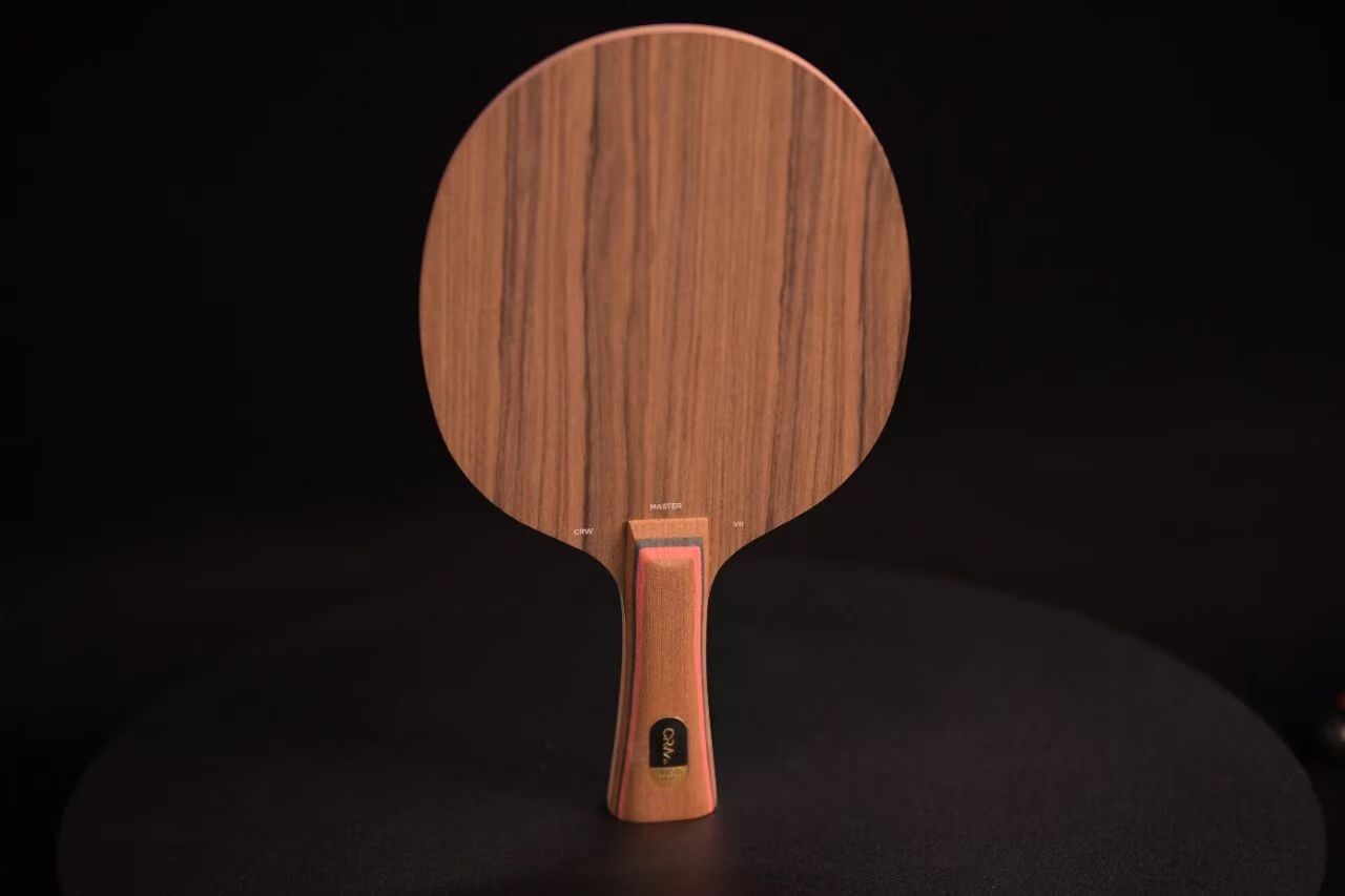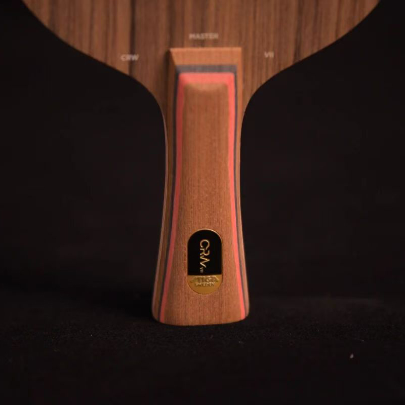 在经典的CL结构之上,将以柔软持球为特点的林巴面材改为坚硬的玫瑰木,同时面材上加入了STIGA近年来多次采用的科技涂层,这样的结构设计非常清晰的表明了STIGA CRW7在底板厚实稳定的基础上,希望大幅度提升一速的目的。