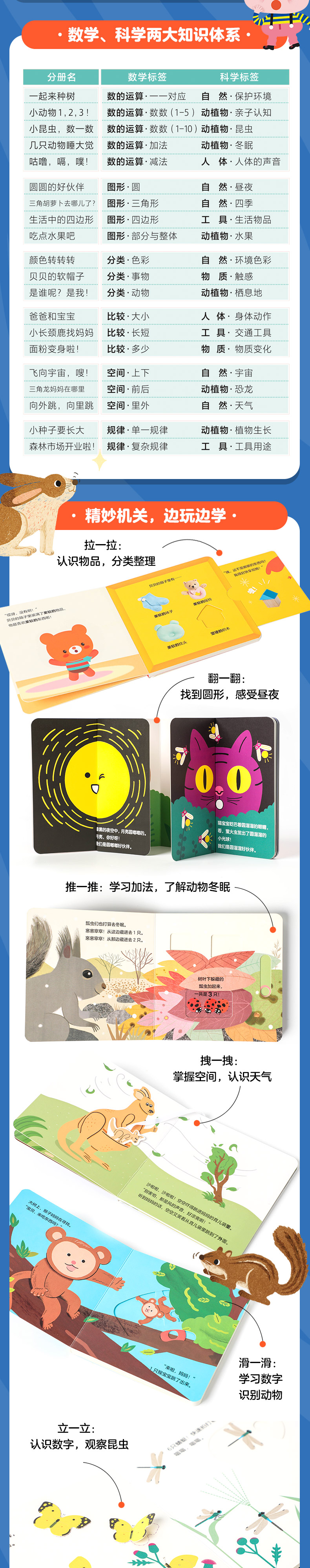 专为2-5岁幼儿打造的数学、科学一体化启蒙玩具书!