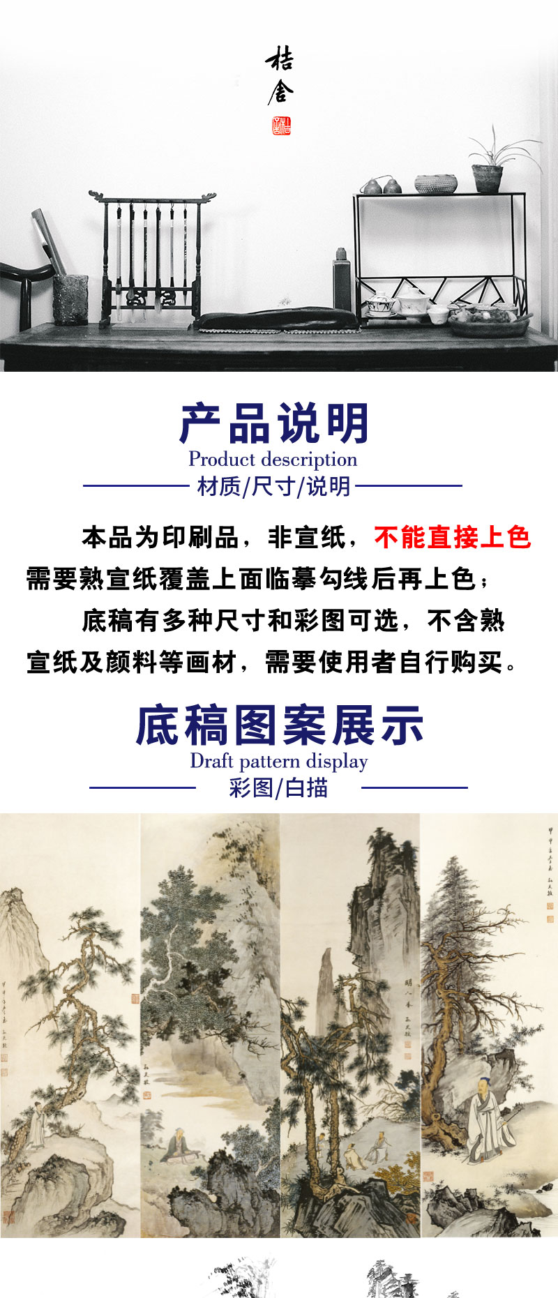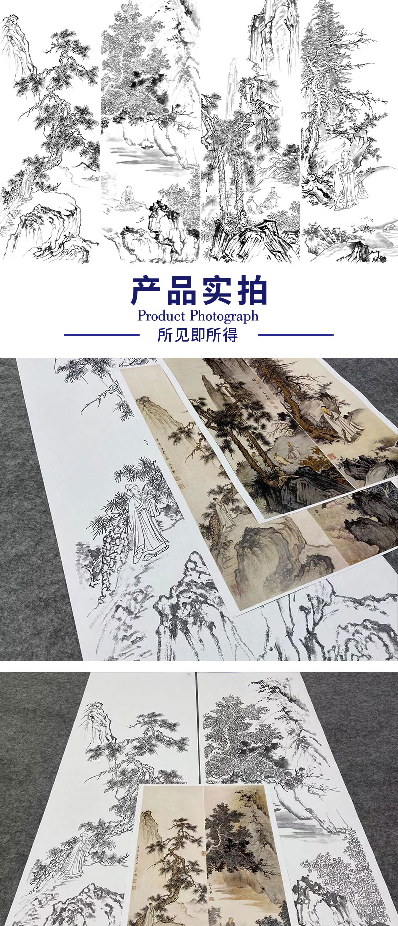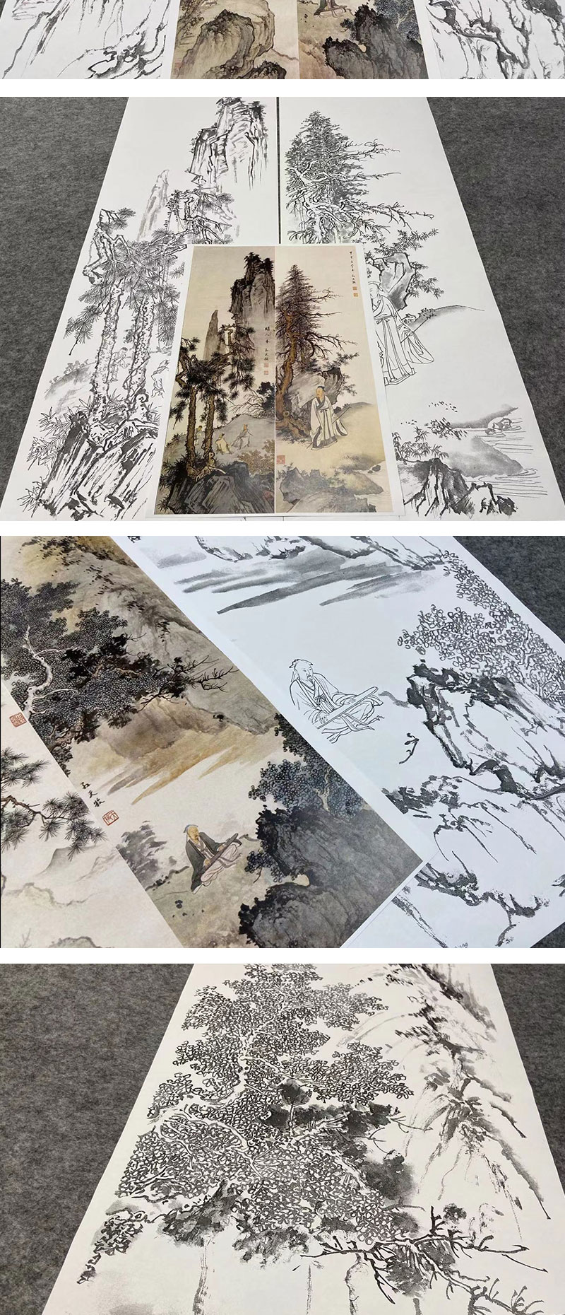 【四条屏】孙天牧工笔画白描底稿山水人物图临摹勾线高清打印稿ST44