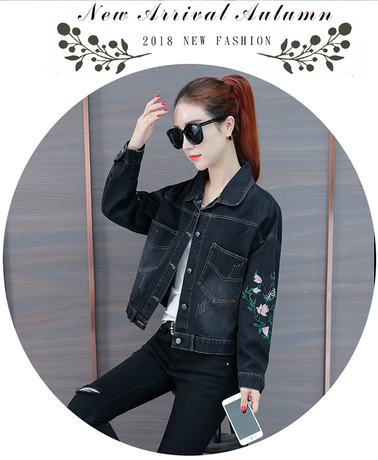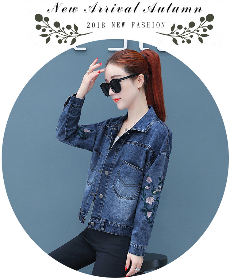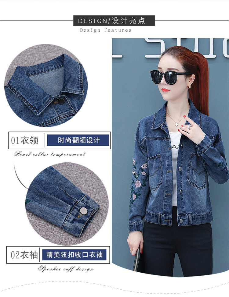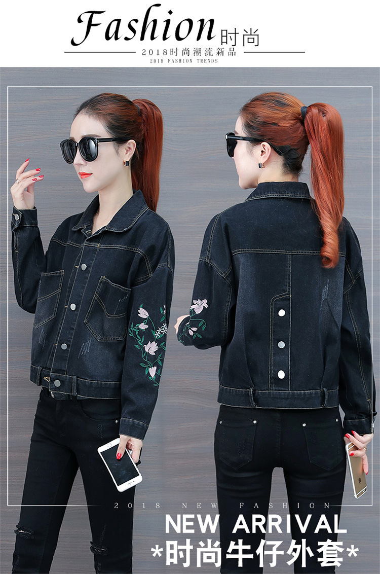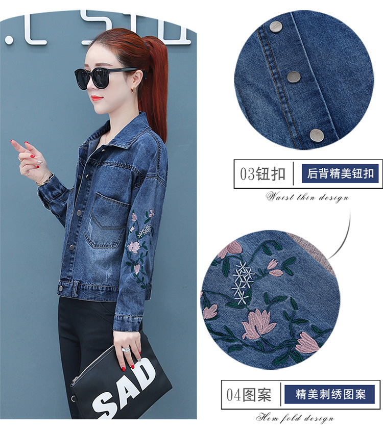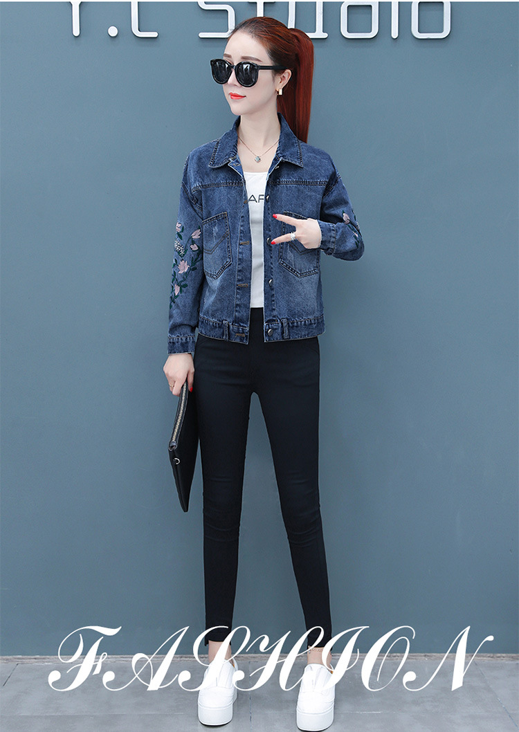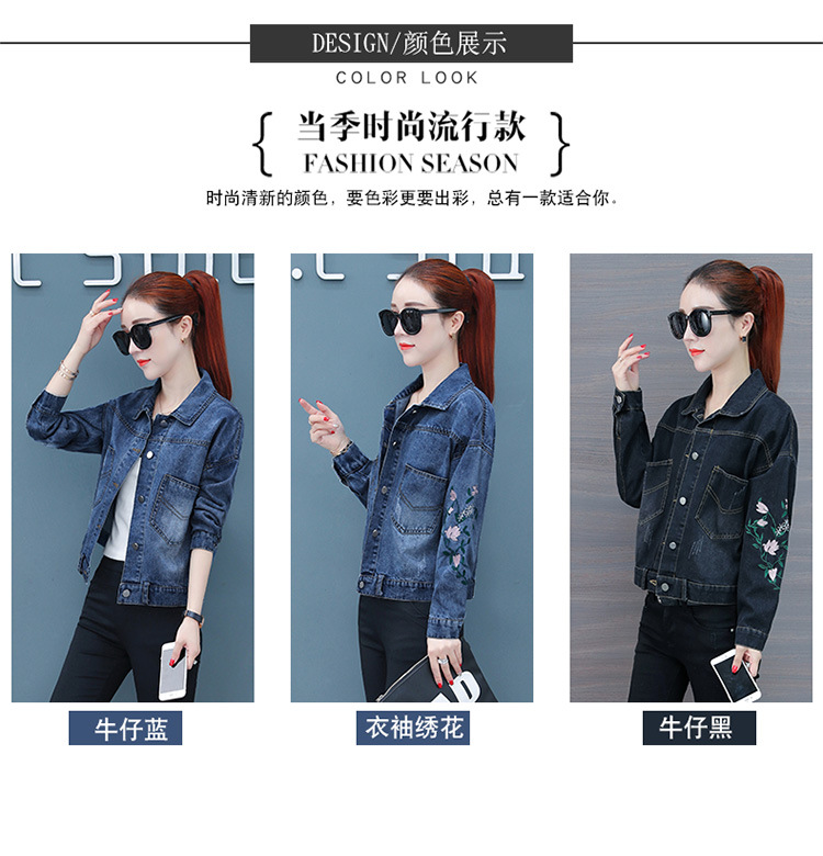 FFJR-外套 3刺绣牛仔外套女长袖新款韩版绣花宽松小夹克秋装短款外套大码
